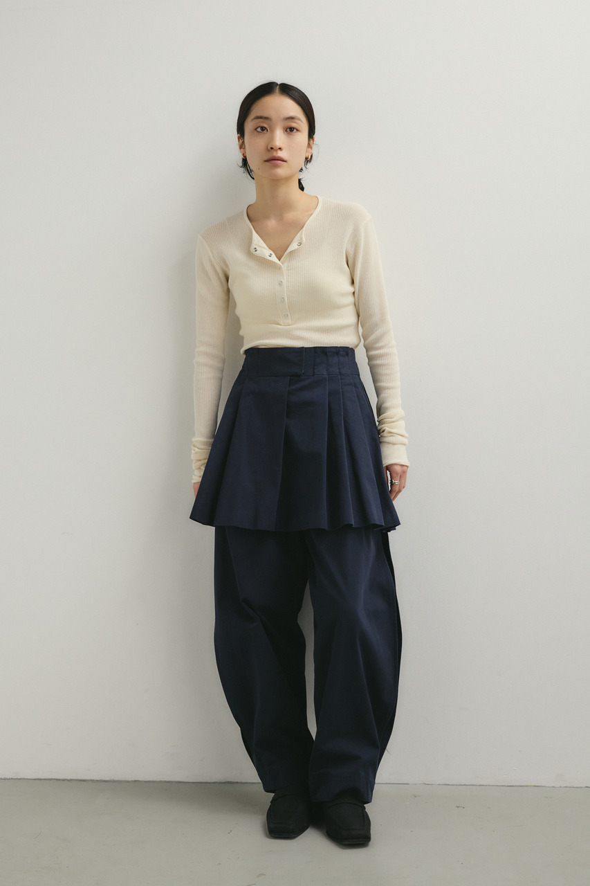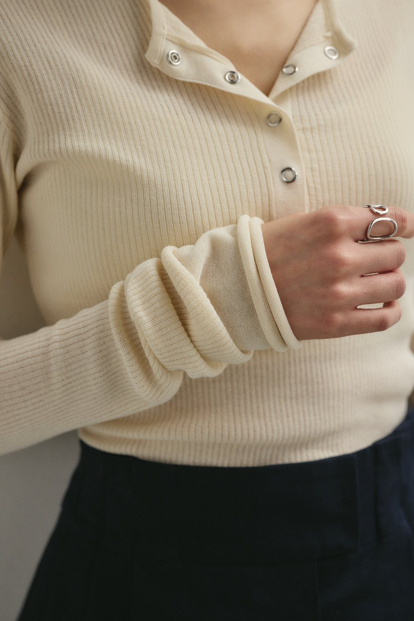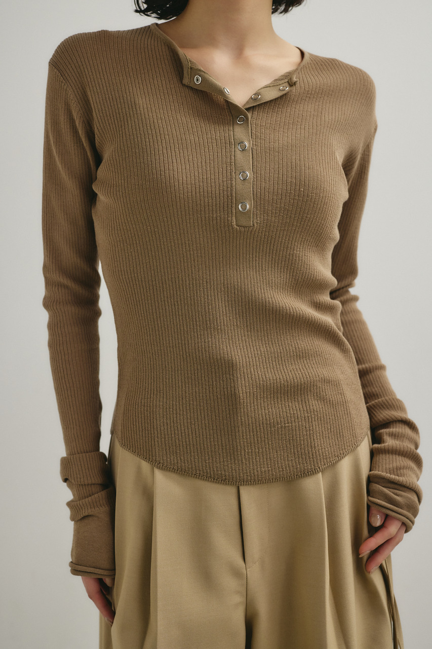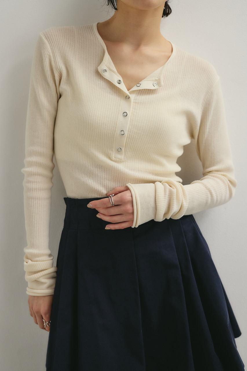 細番手のコットンナイロンの素材を使用したやわらかな風合いのシアートップス。ショルダーラインを後ろたおしたデザインで肩回りをすっきりと見せてくれます。1枚で着用するのはもちろん、重ねて着用いただくのもおすすめです。ストレッチあり、透け感あり。