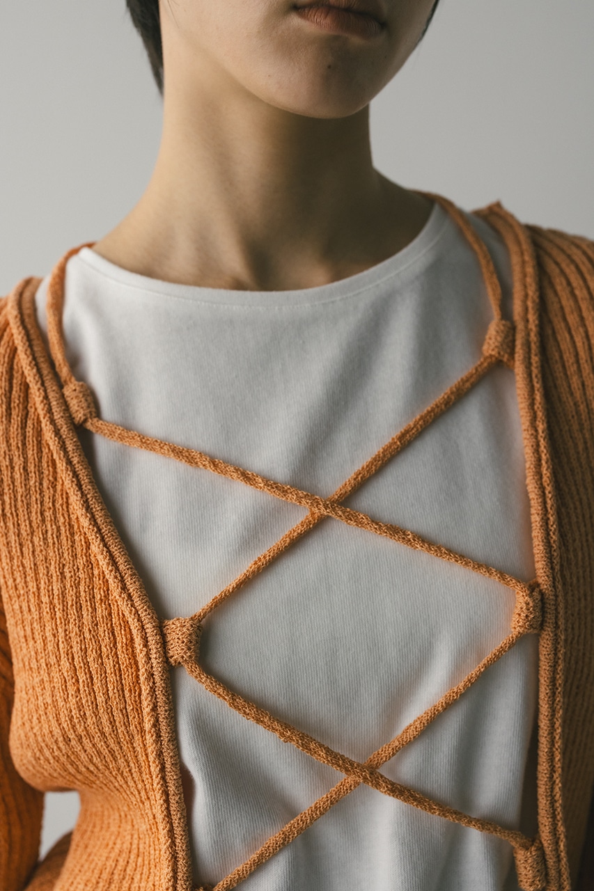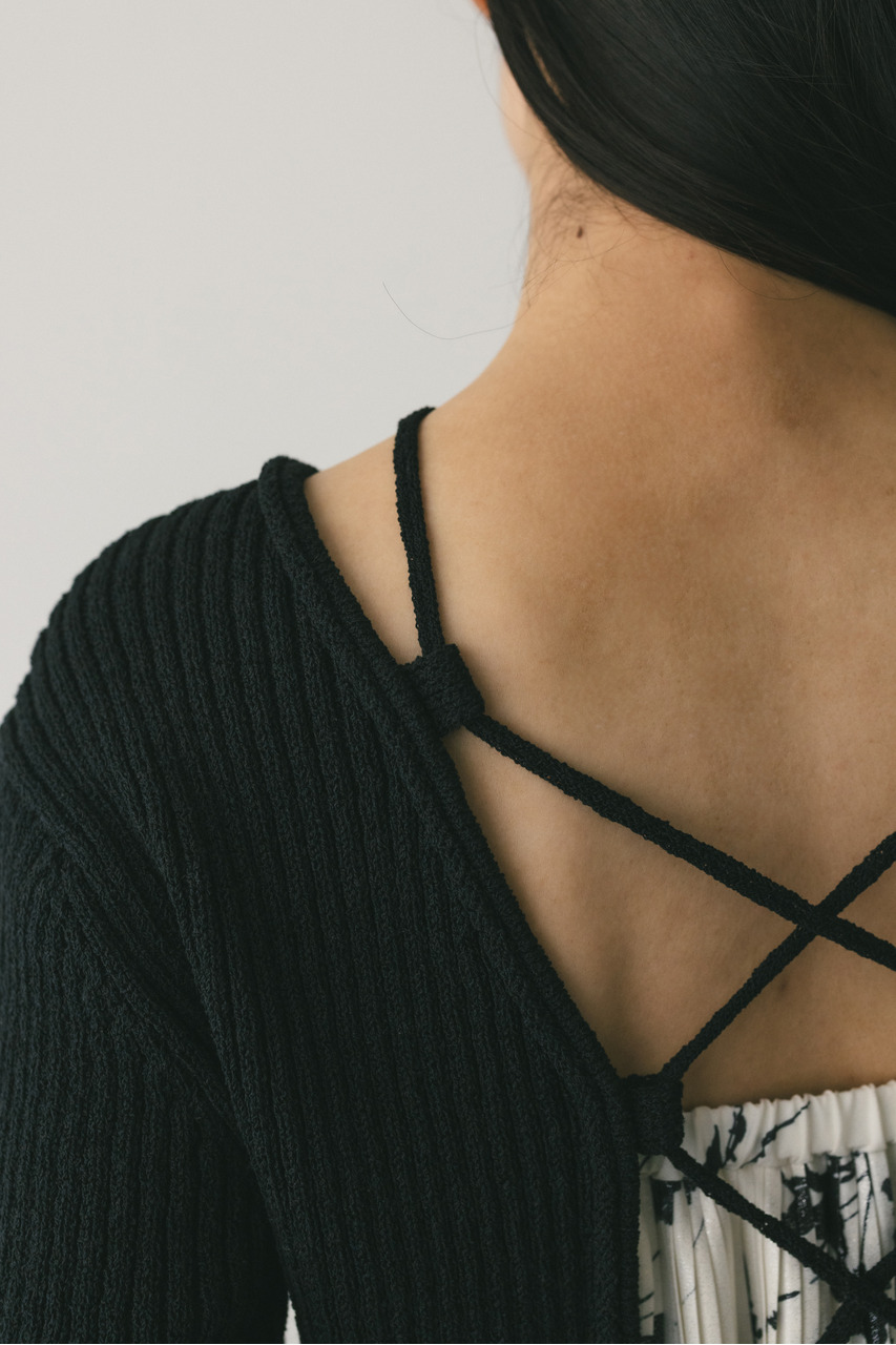 レースアップリブニットトップ