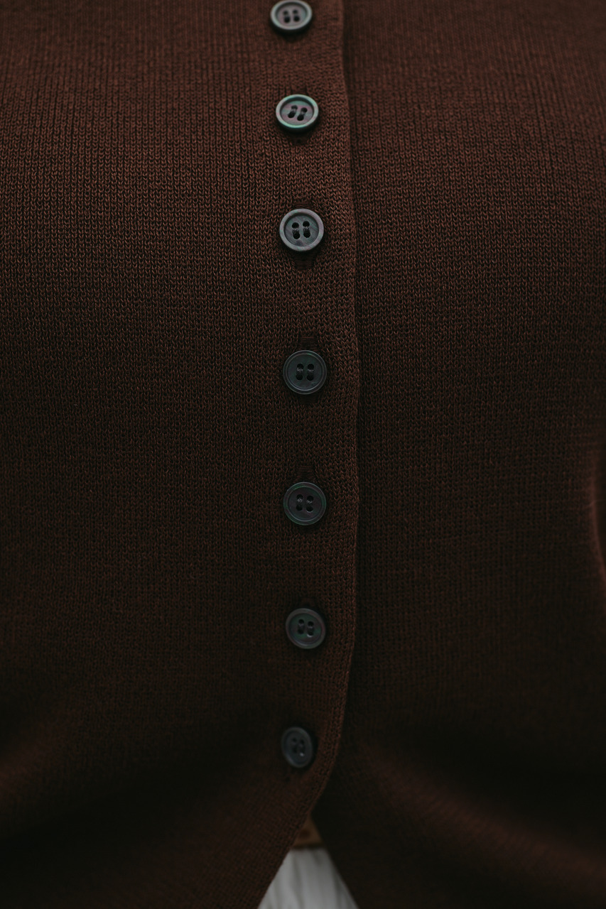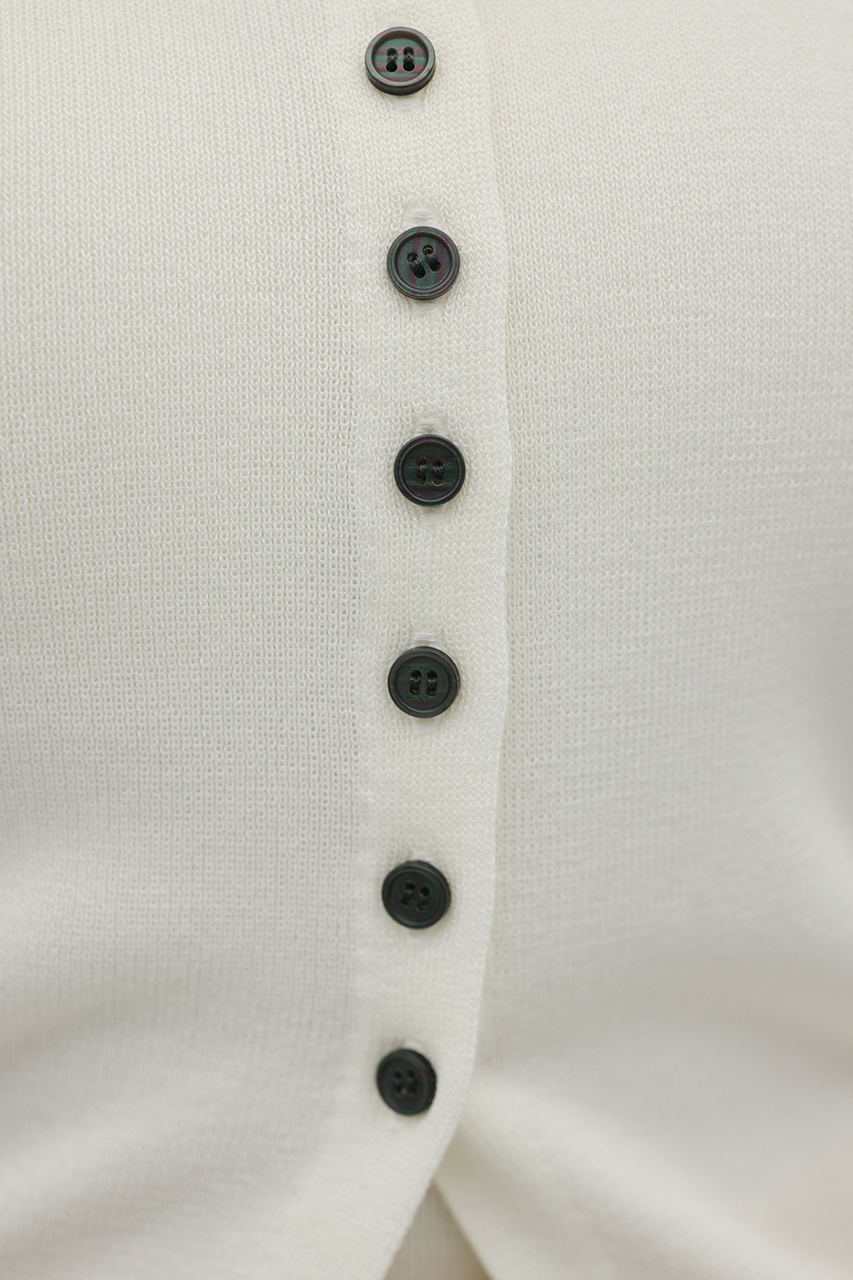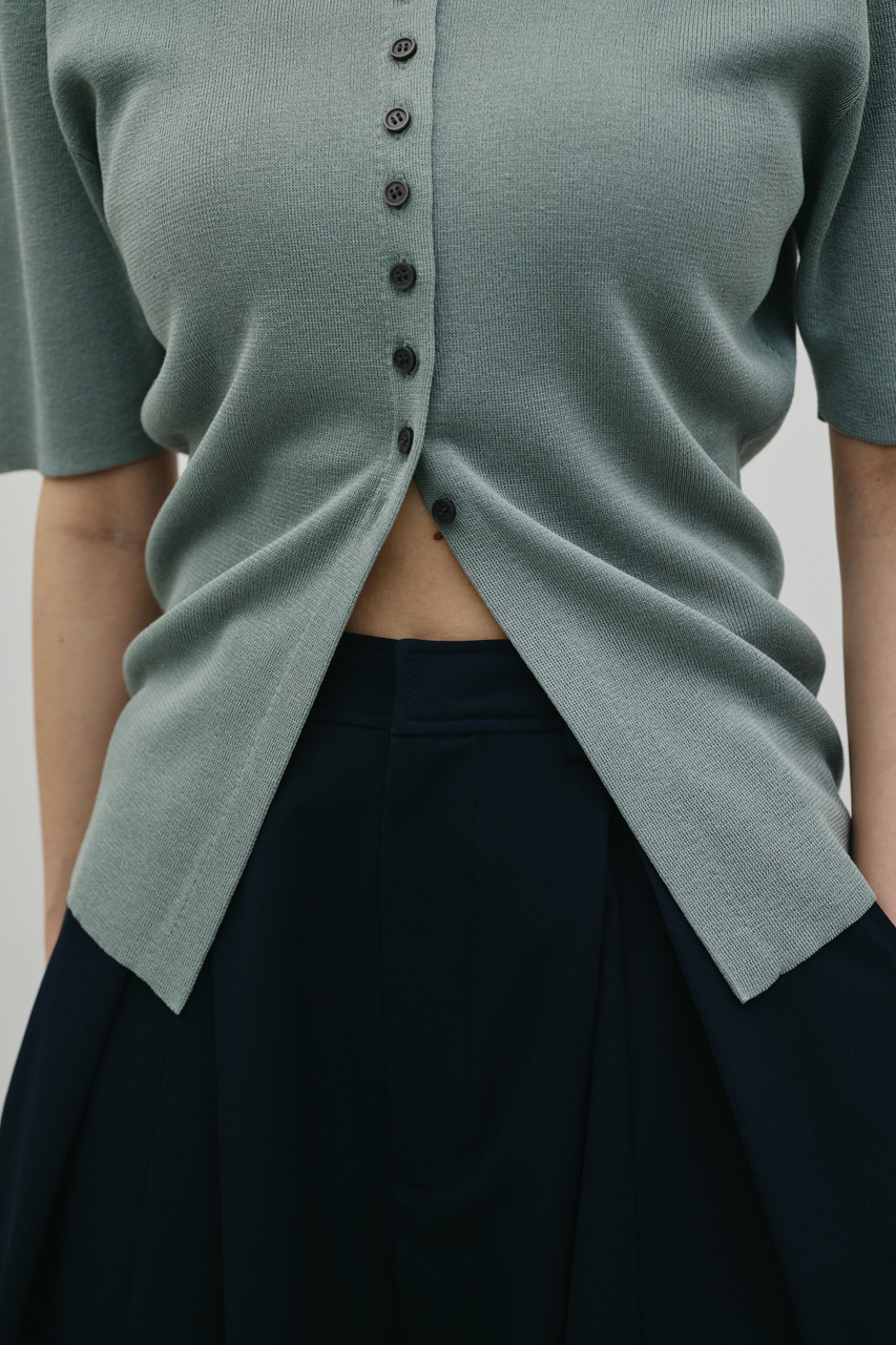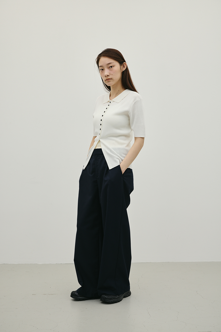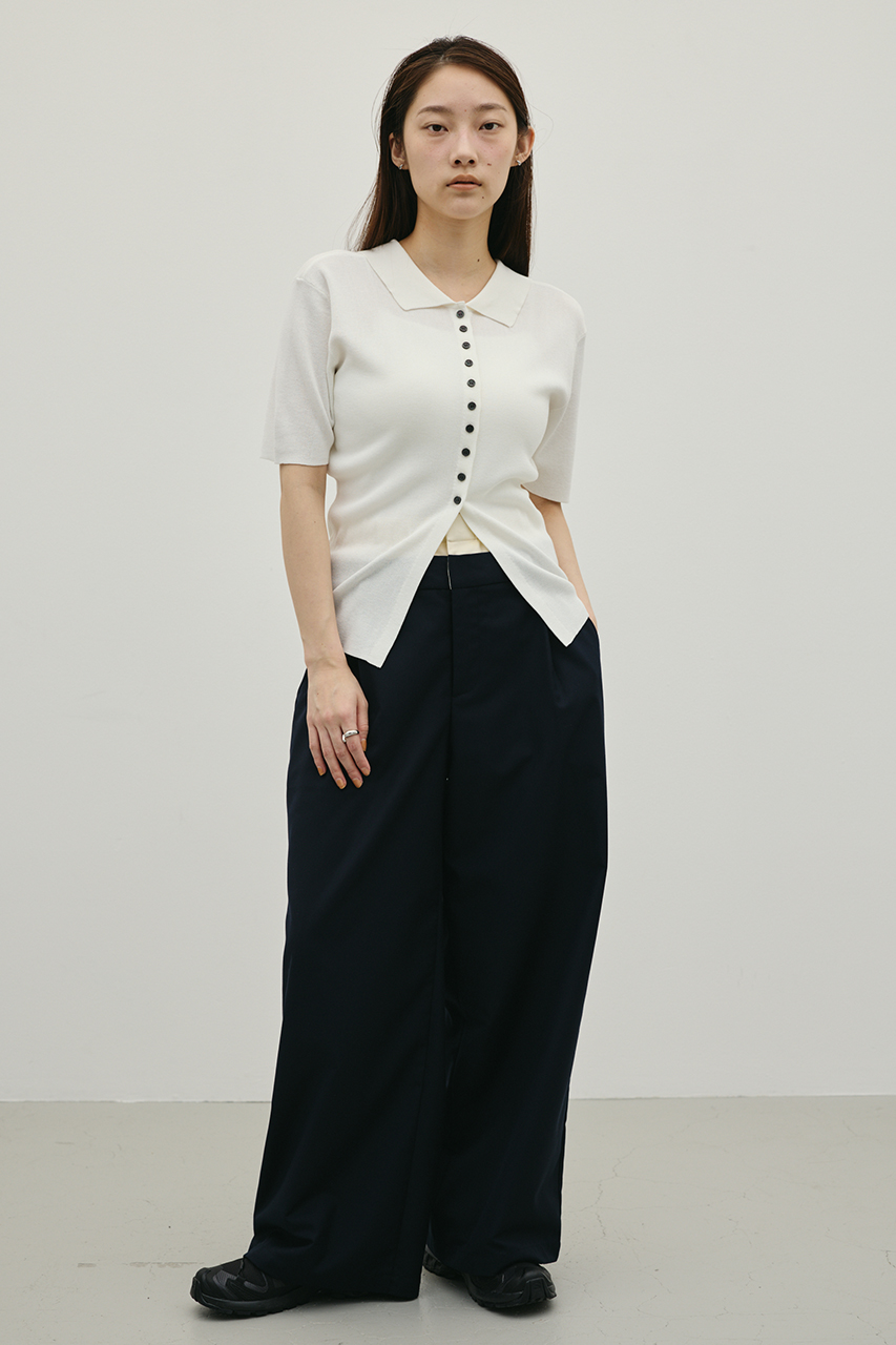 前後2WAYで着用可能なニットポロ。なめらかでさらりとした糸を使用。ビスコース混の微光沢が上品な印象に見せてくれます。総針に編み立てにしているのでボディーラインもひびきにくい一枚です。ストレッチあり、透け感なし。