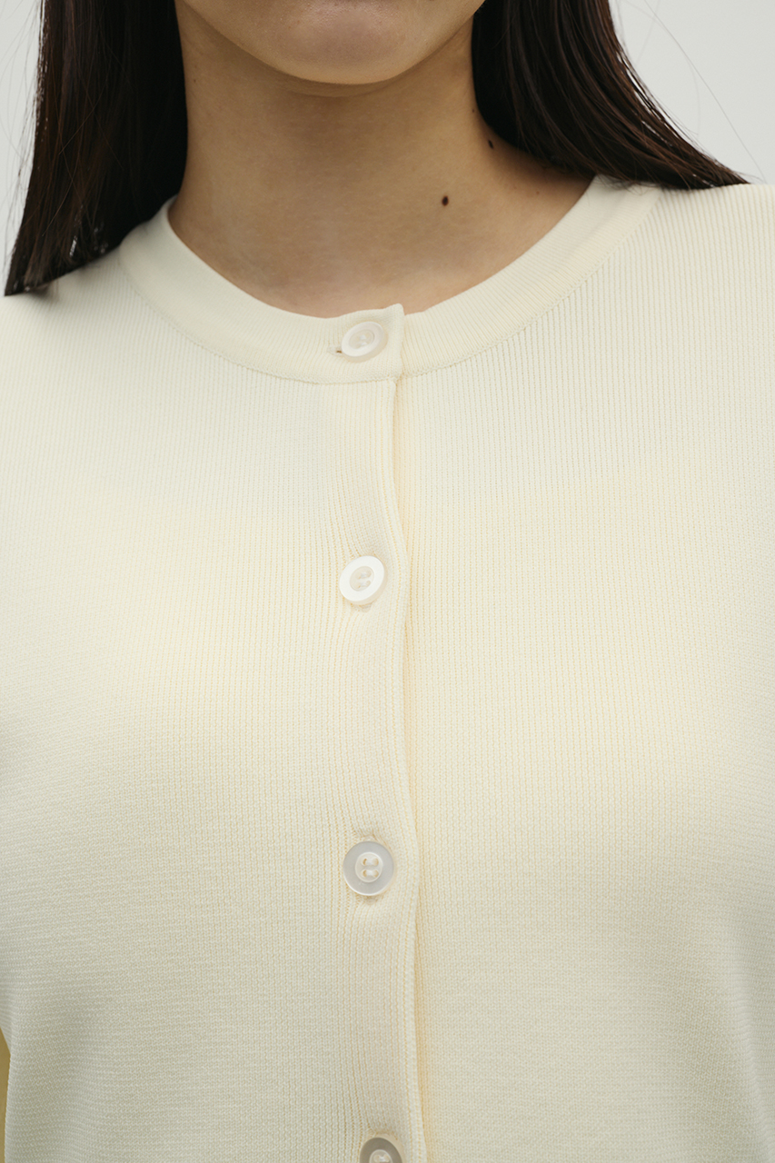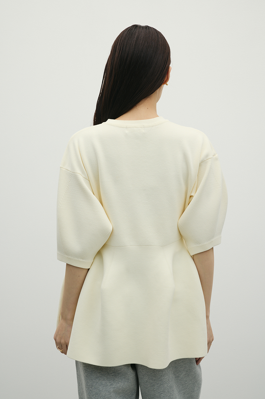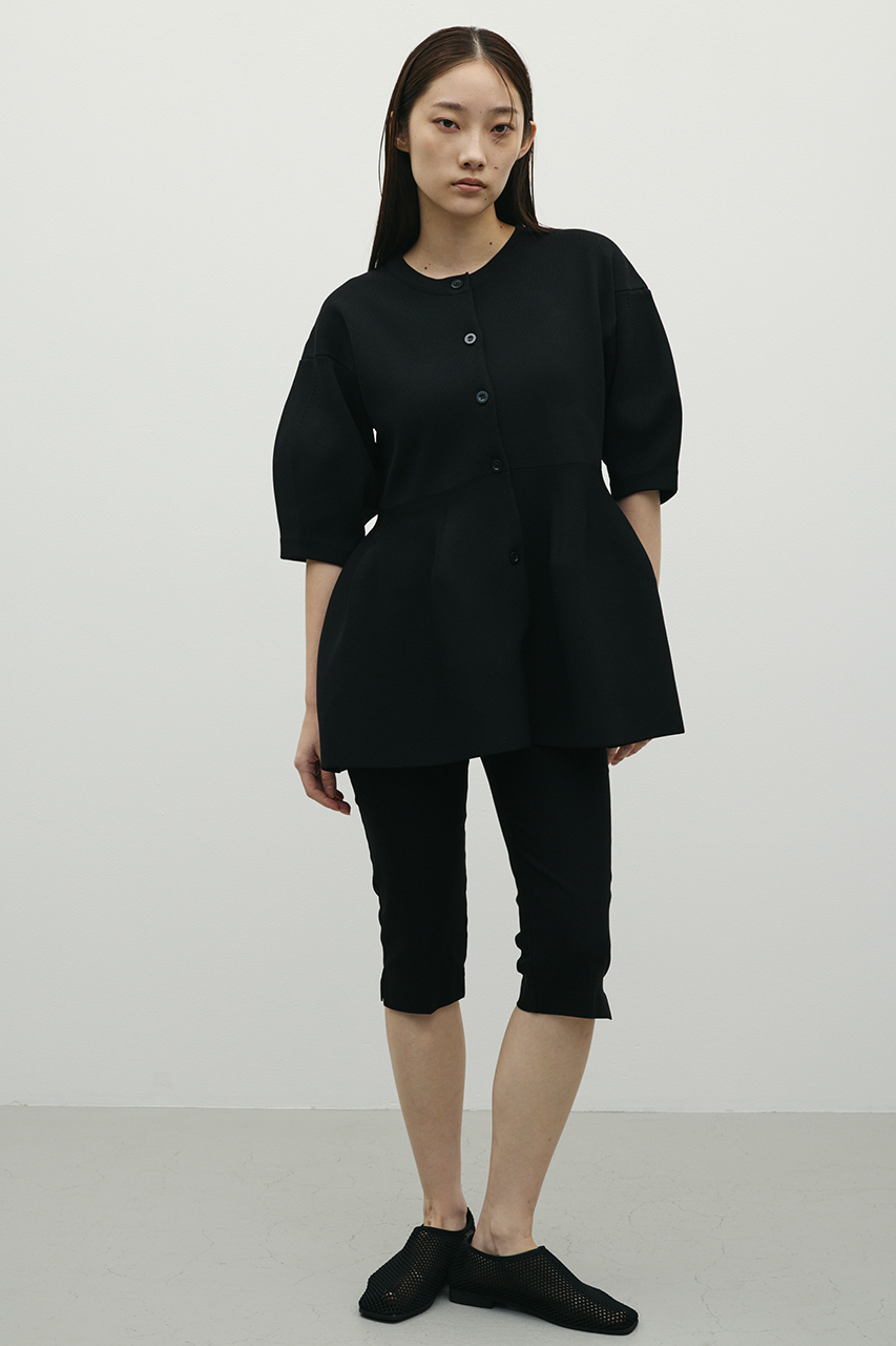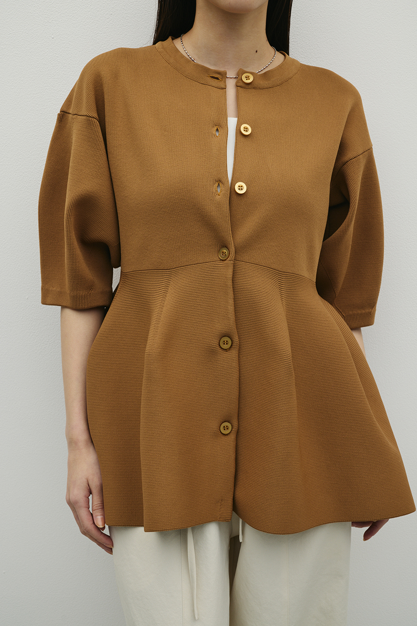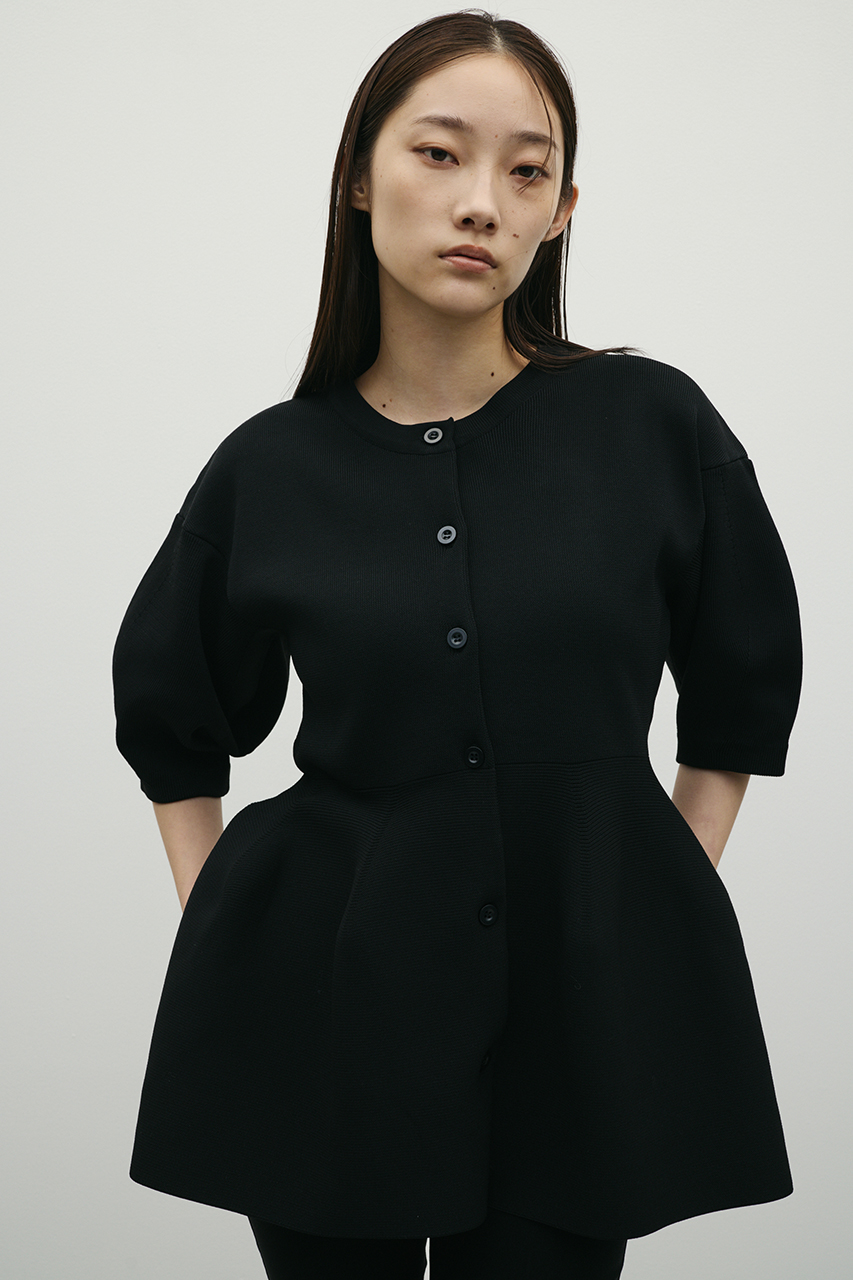 一枚で目を惹くトレンド感あふれるペプラムニットカーディガン。ウエスト位置をやや高めに設定しシェイプさせることで、ペプラムシルエットにメリハリを持たせ、スタイルアップを叶えてくれます。立体感のある5分丈フォルムスリーブが自然に二の腕をカバー。透け感なし、ストレッチあり。