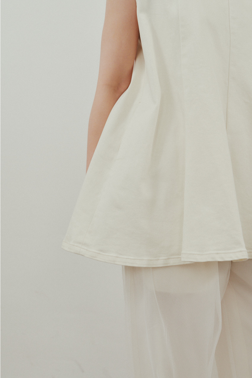 ストレッチ素材を使用したパネルフレアデニムチュニック。パネル切り替えとフレアシルエットで動きやすく、立体感のあるデザインがポイント。軽やかで快適な着心地ながら、デニムならではのカジュアル感を楽しめる一着です。ストレッチあり、透け感なし。