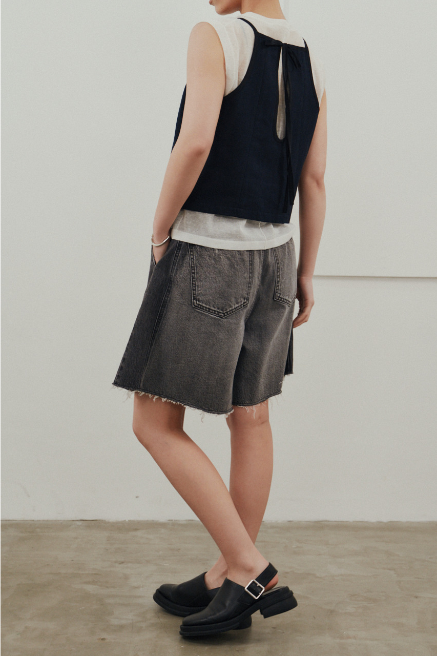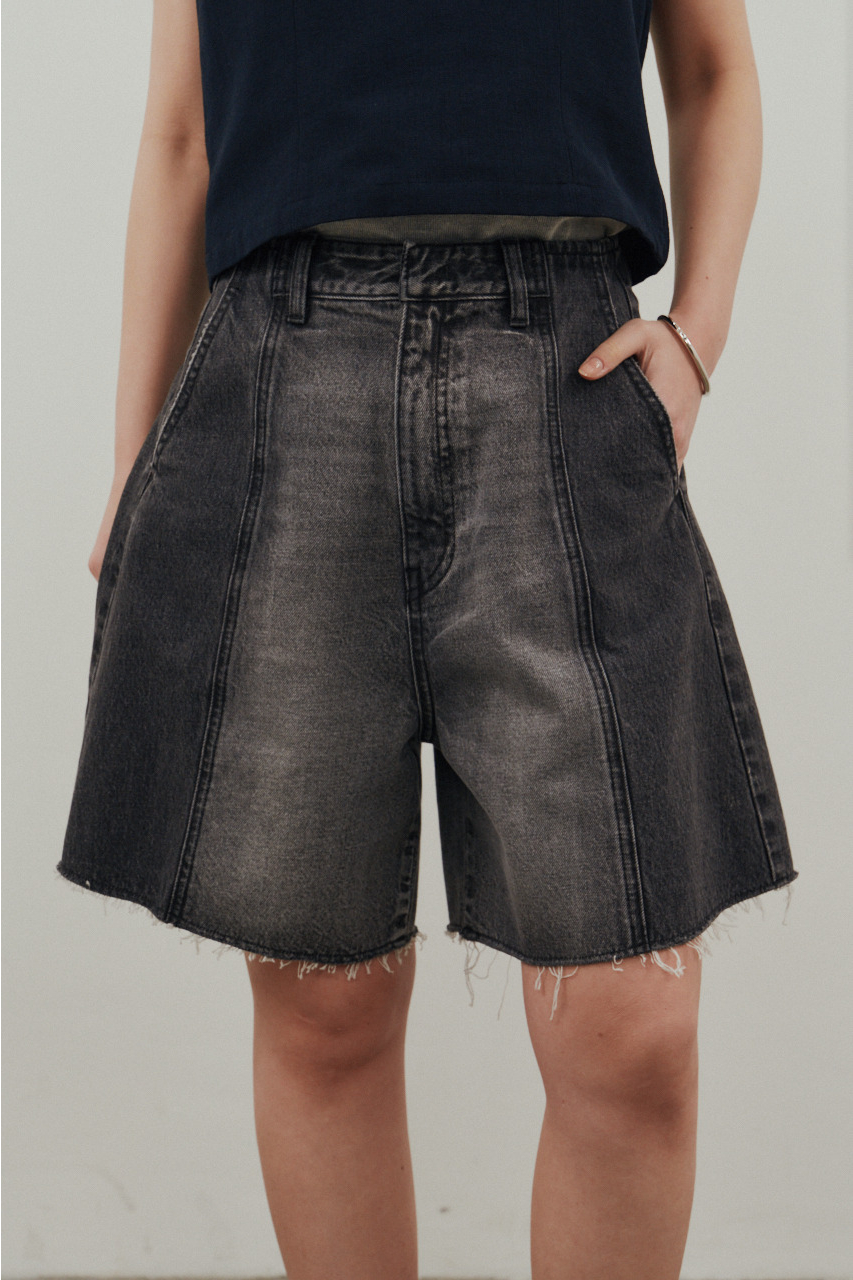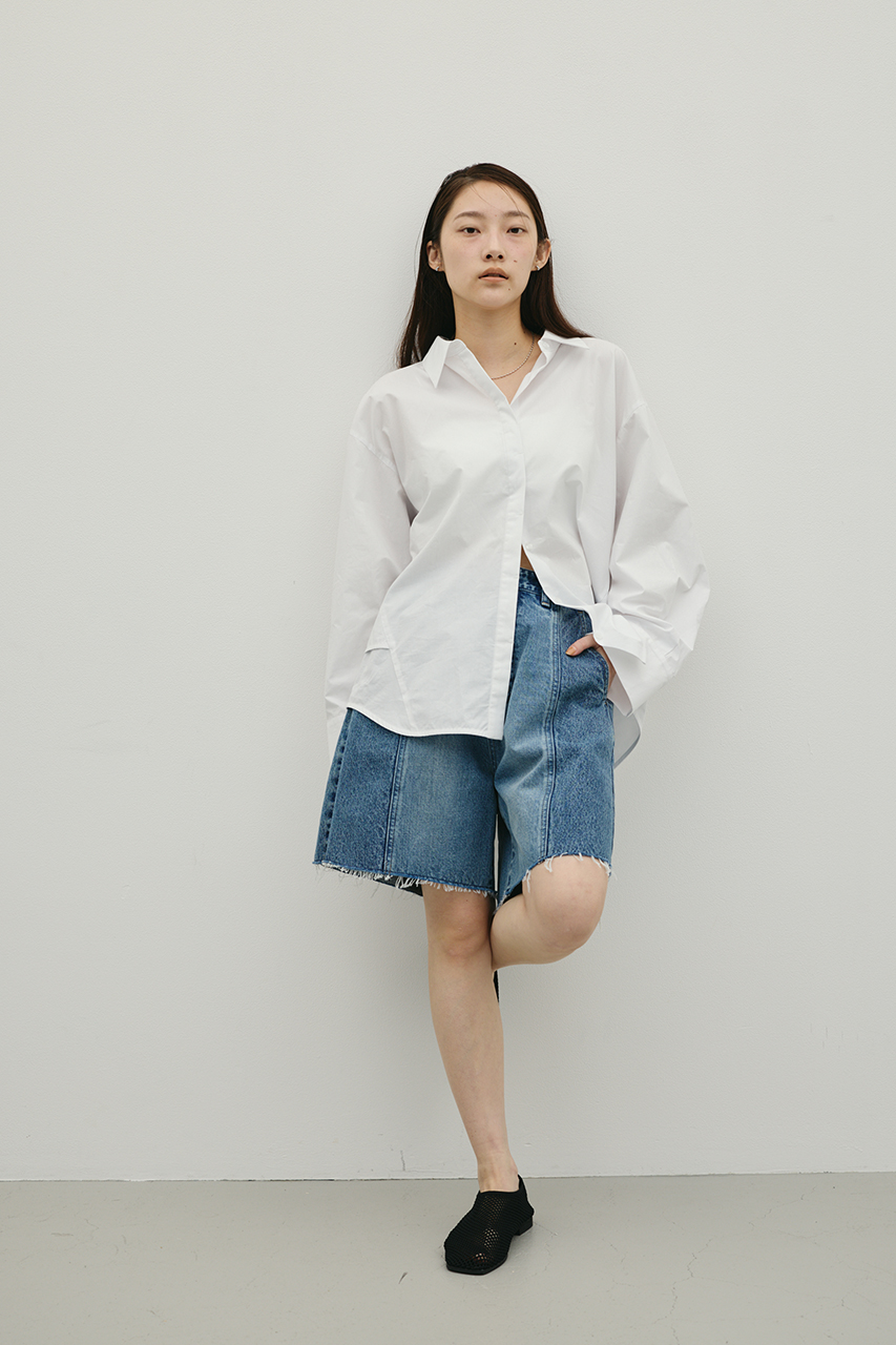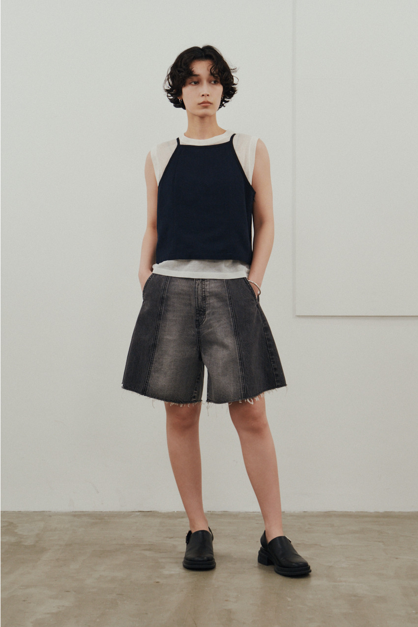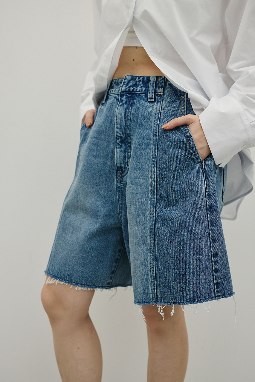 パネルごとにカラー差をつけた立体感のあるリメイク風デザインが魅力のハーフデニム。異なるトーンを組み合わせることで奥行きが生まれ、履くだけでこなれた印象に導きます。シンプルなTシャツと合わせるだけでコーディネートが完成する主役級アイテムで、コンパクトなトップスやショート丈アイテムと合わせるとよりバランスよく着こなせます。ストレッチなし、透け感なし。