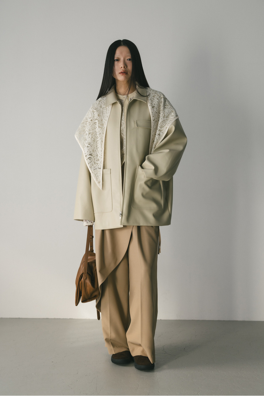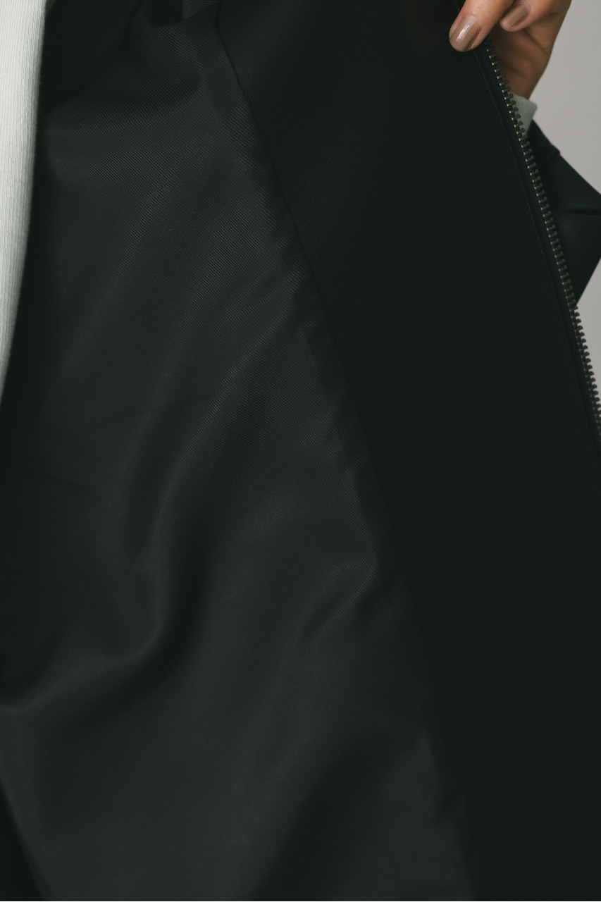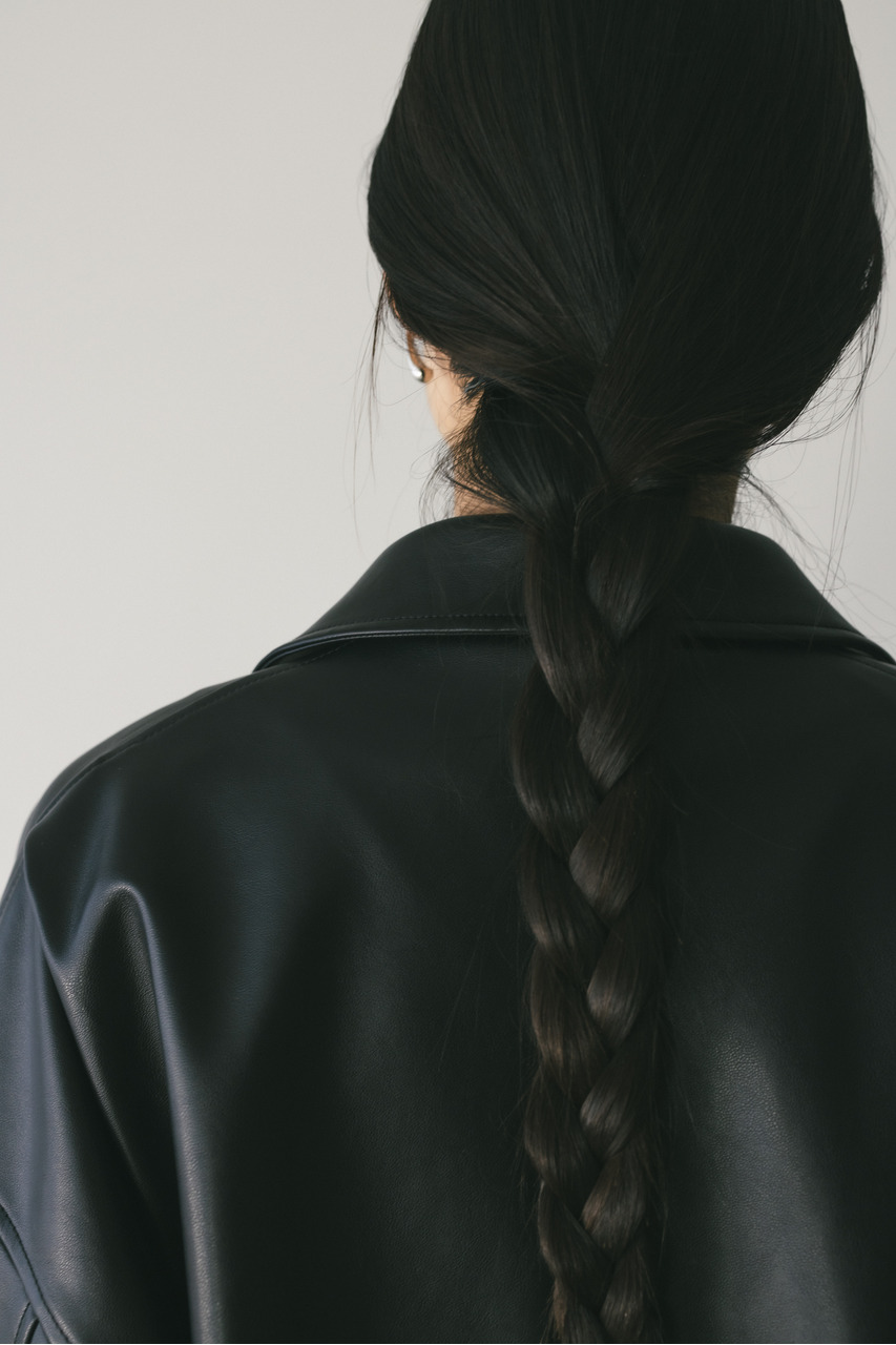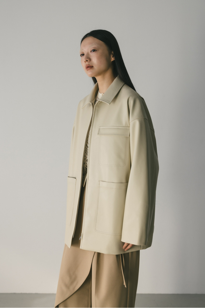 すっきりとした襟とオーバーなサイズ感がポイントのレザージャケット。タックを施した丸みのある背中のシルエットとボリューム感のある袖が可愛いアウター。ビッグポケットがデザインポイント。シンプルながらも存在感のあるシルエットが、洗練された印象を与えます。柔らかなフェイクレザー素材は馴染みやすく、重ねても羽織りやすい一枚。ヒップラインが隠れる長め丈で、気になる腰回りもカバーしてくれます。ストレッチ無し、透け感なし。