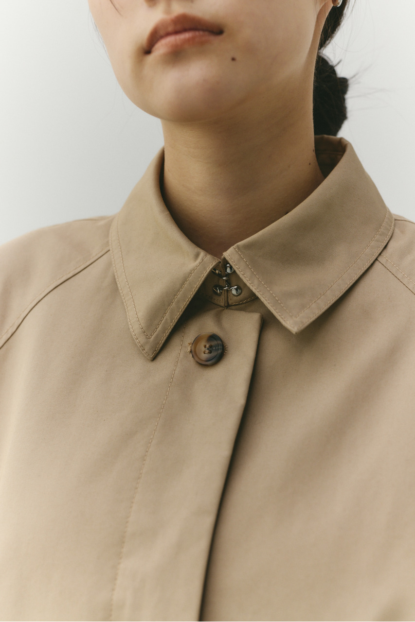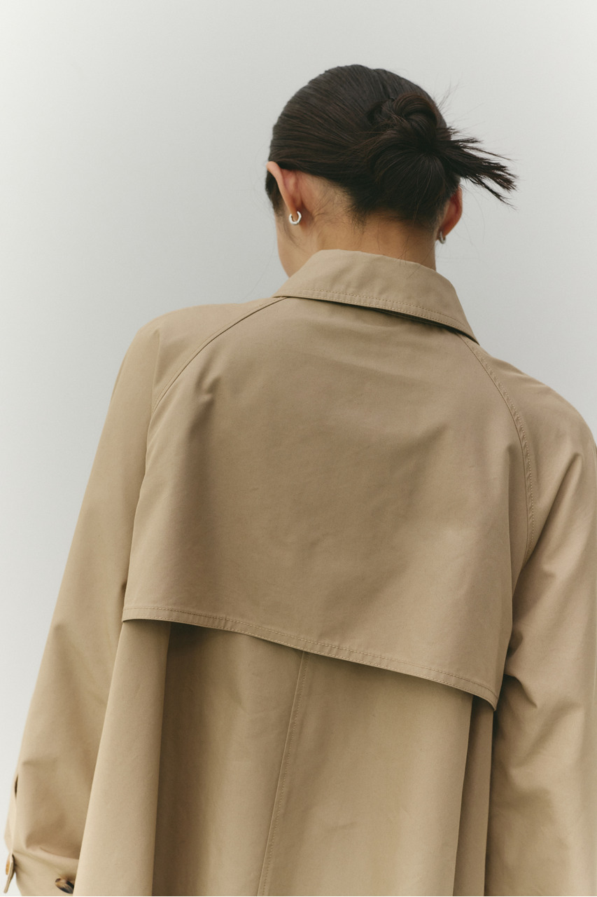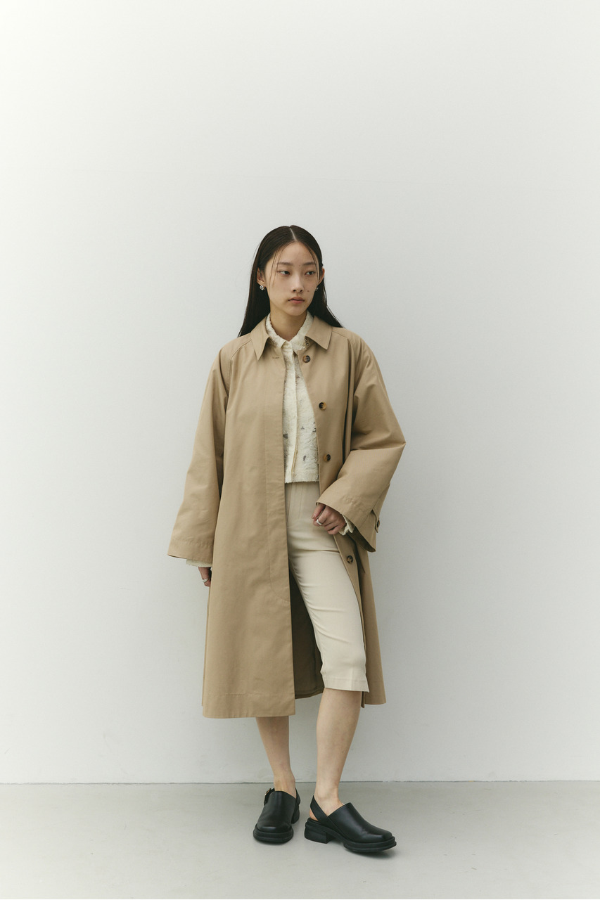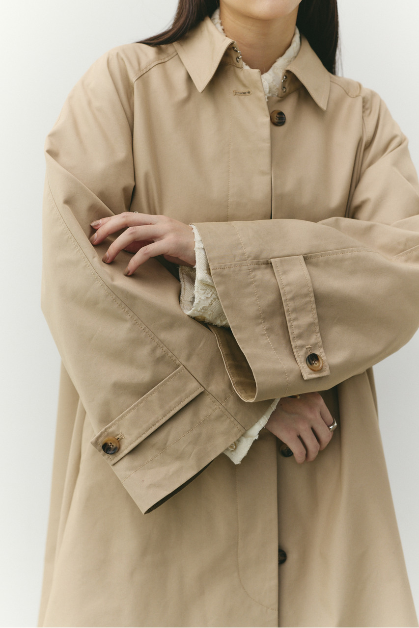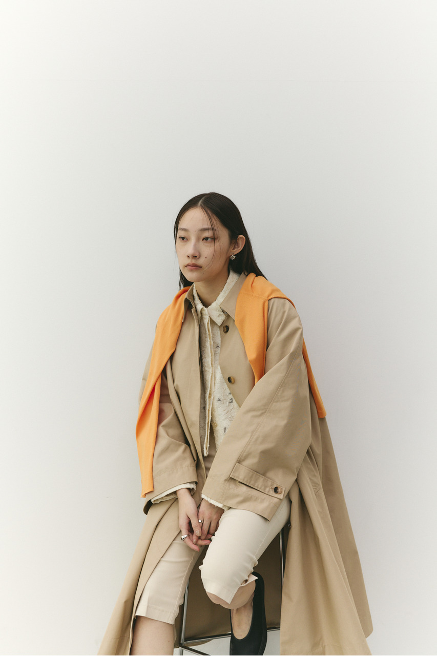 トラッドなディテールがポイントのトレンチコート。さっと羽織れるオーバーサイズで仕上げているのでインナーも選ばず着用いただけます。ストレッチなし、透け感なし。