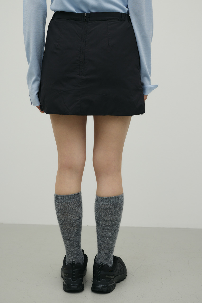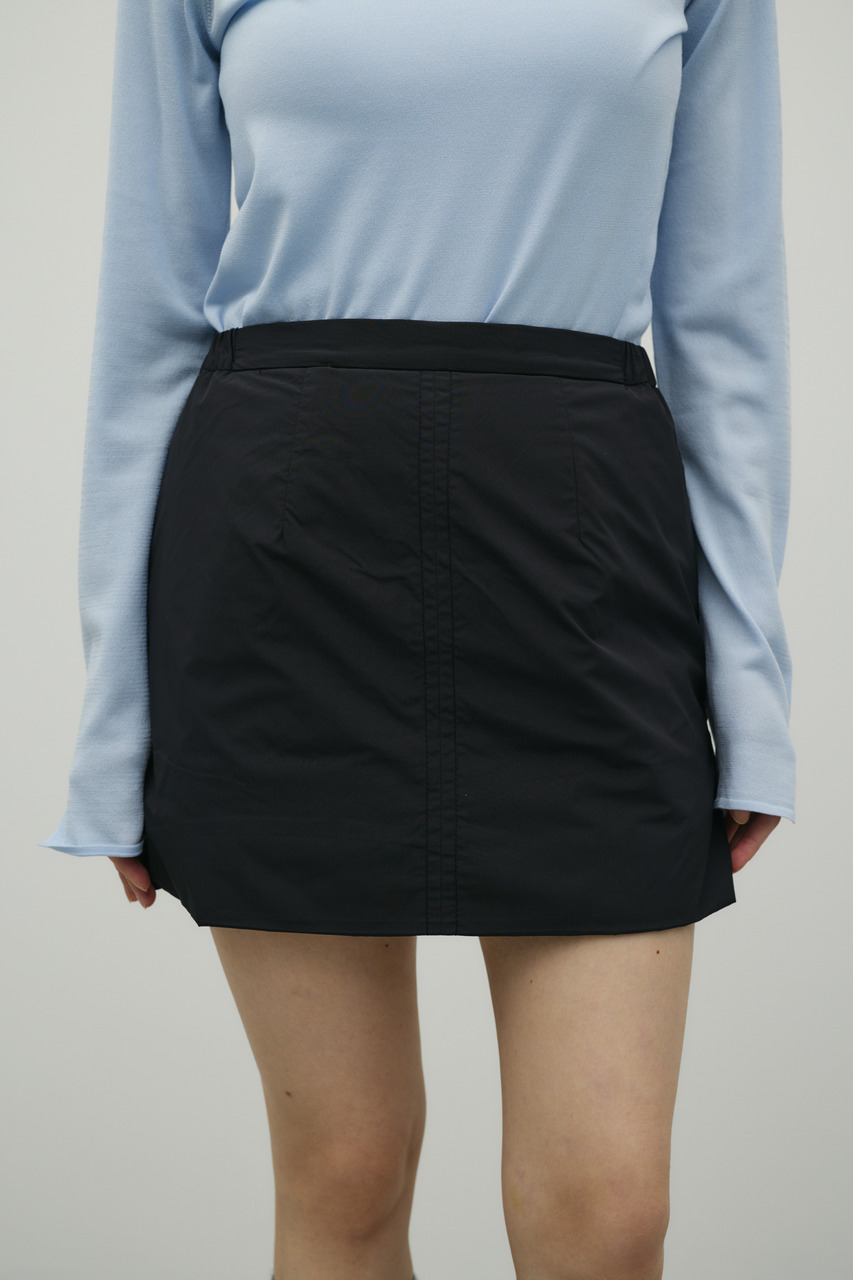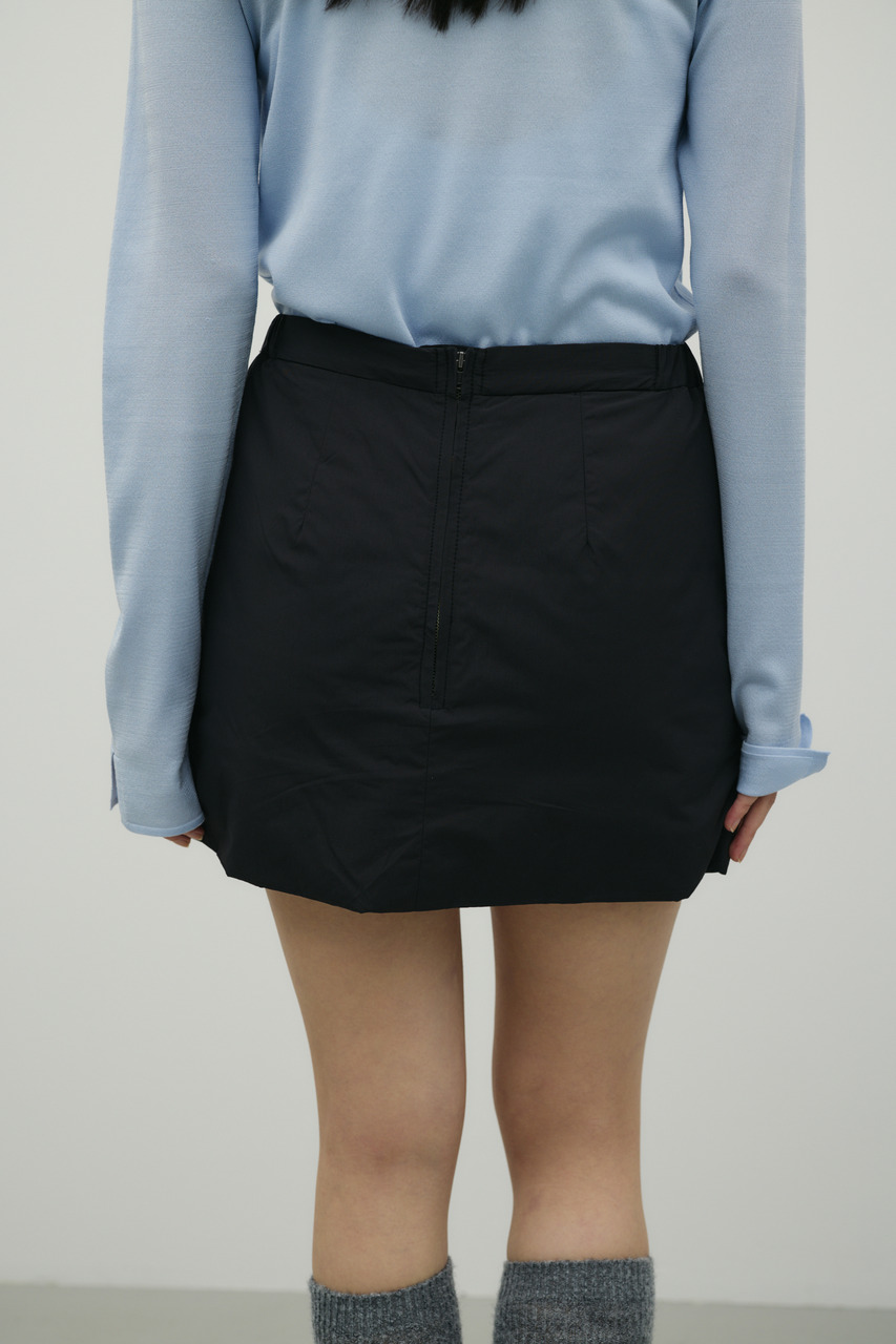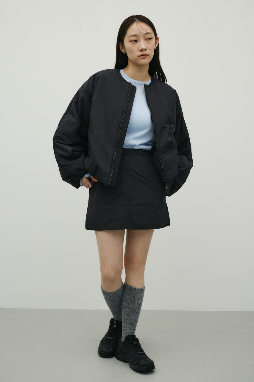 ステッチレスで仕上げた中綿ミニスカート。ポリエステルの中綿を使用しているので軽やかさと着心地の両方を叶えた一枚。バルーン裾でトレンド感のあるデザインに仕上げました。500JSB30-0351(パディングブルゾン)とセットアップ着用可能。裏地付き。ストレッチなし、透け感なし。