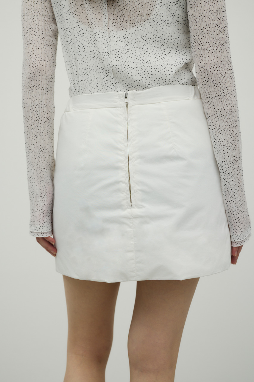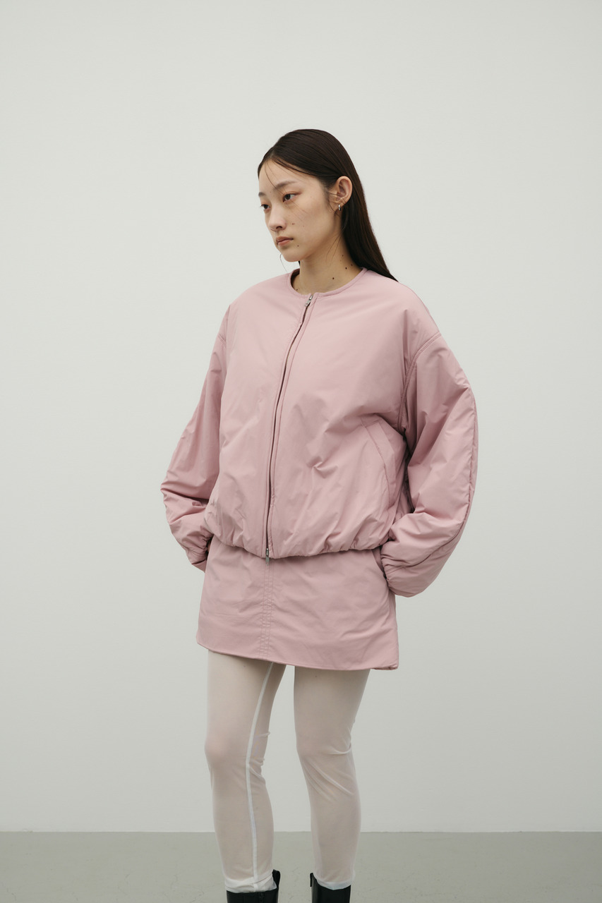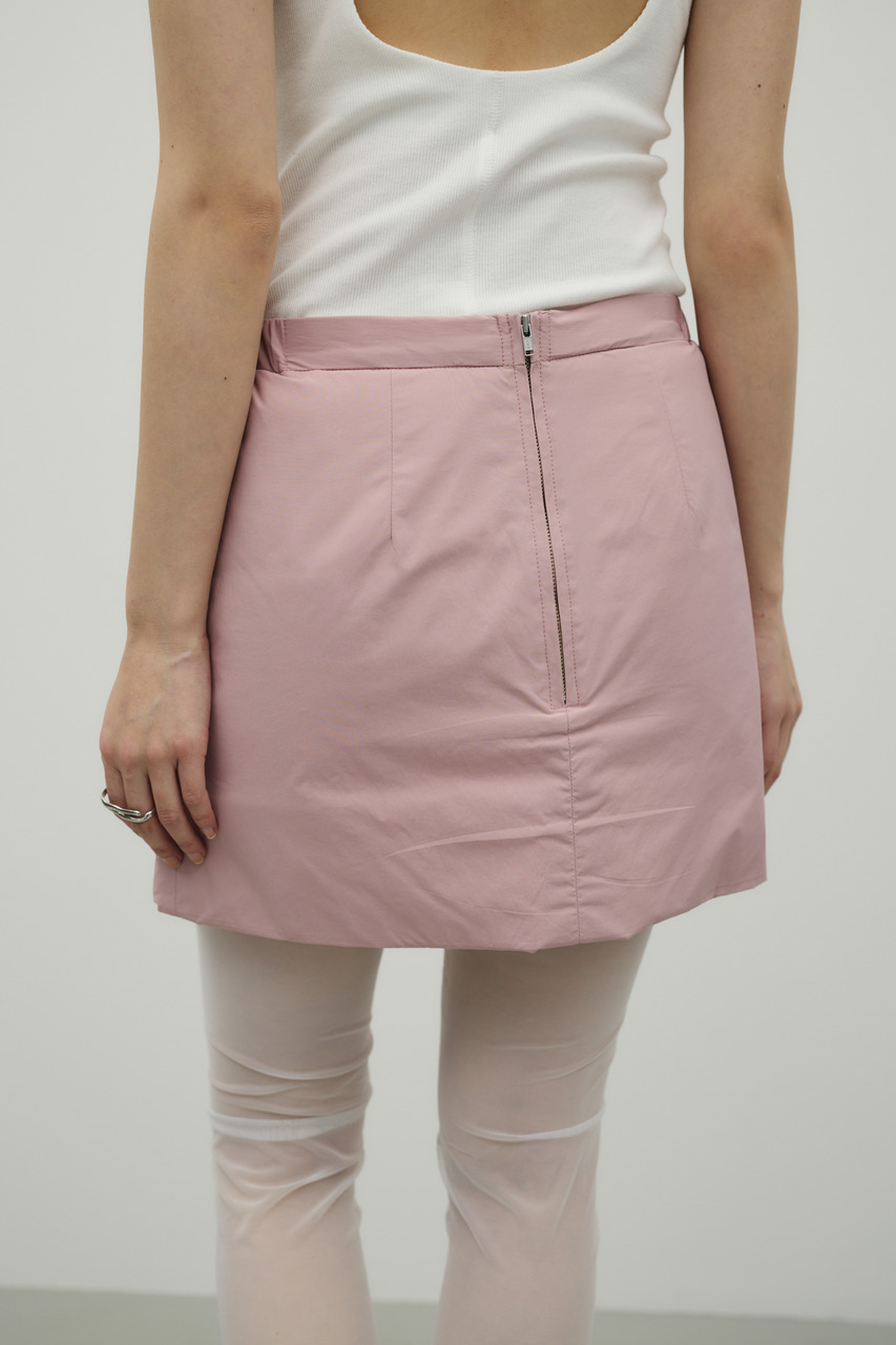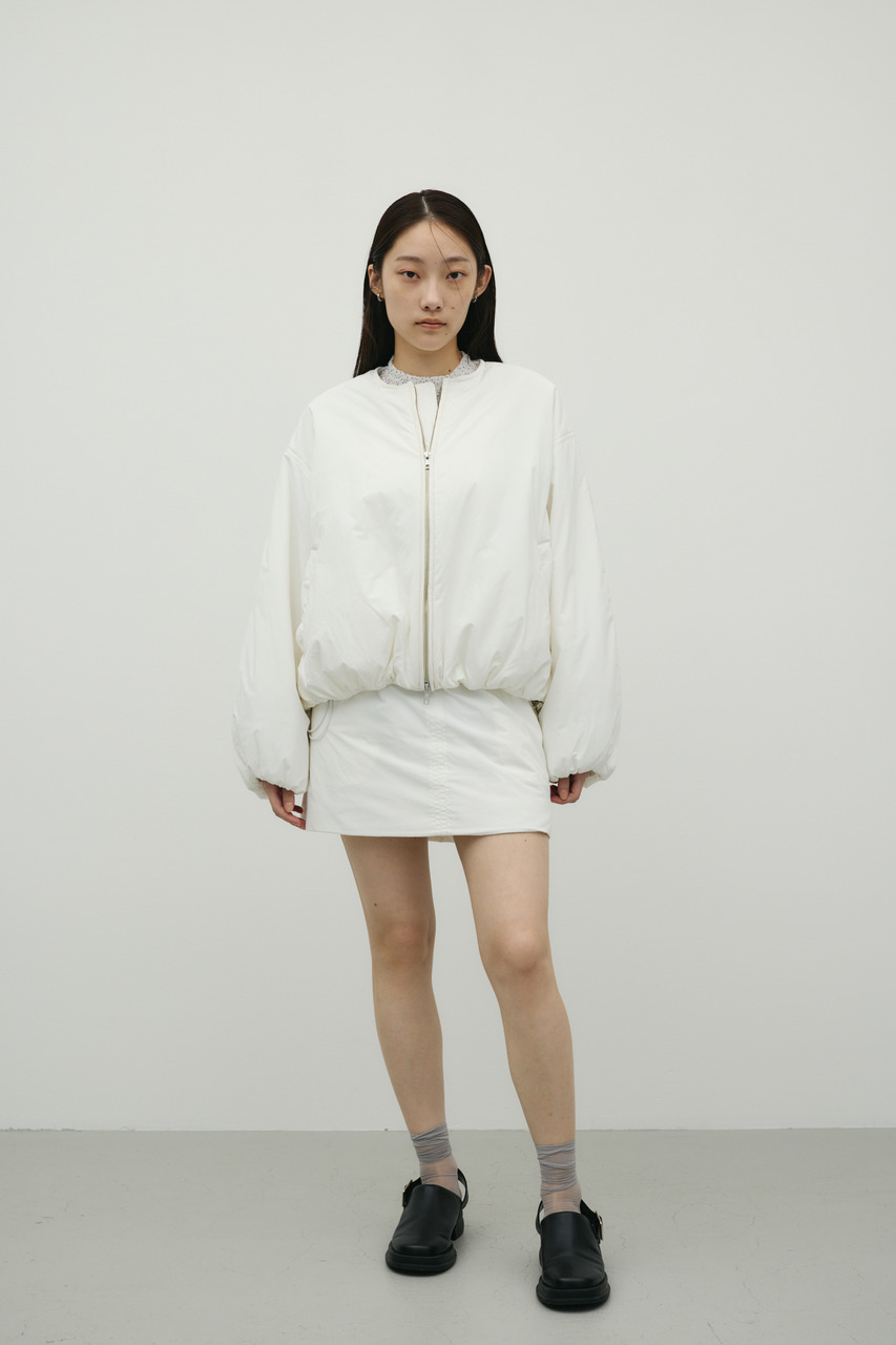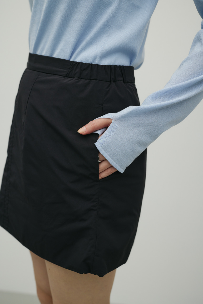ステッチレスで仕上げた中綿ミニスカート。ポリエステルの中綿を使用しているので軽やかさと着心地の両方を叶えた一枚。バルーン裾でトレンド感のあるデザインに仕上げました。500JSB30-0351(パディングブルゾン)とセットアップ着用可能。裏地付き。ストレッチなし、透け感なし。