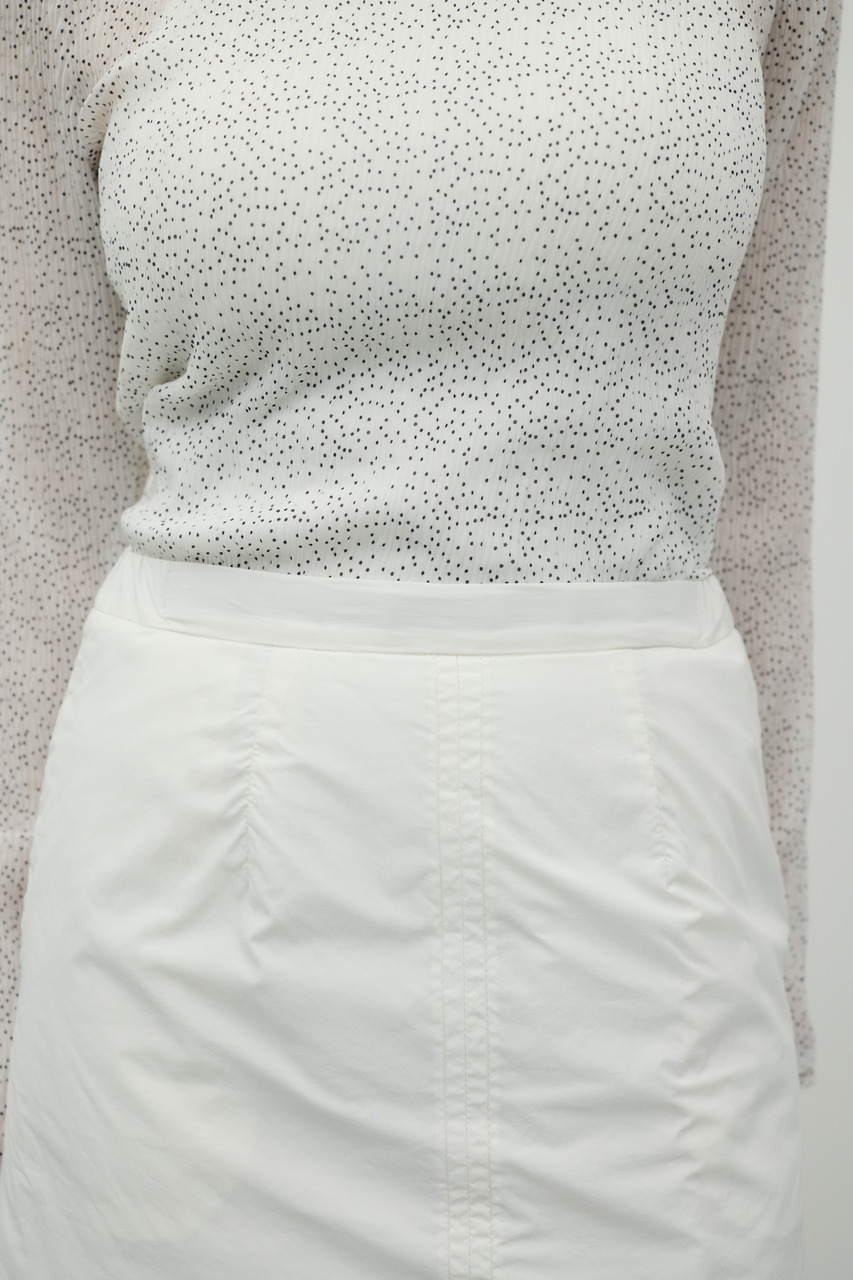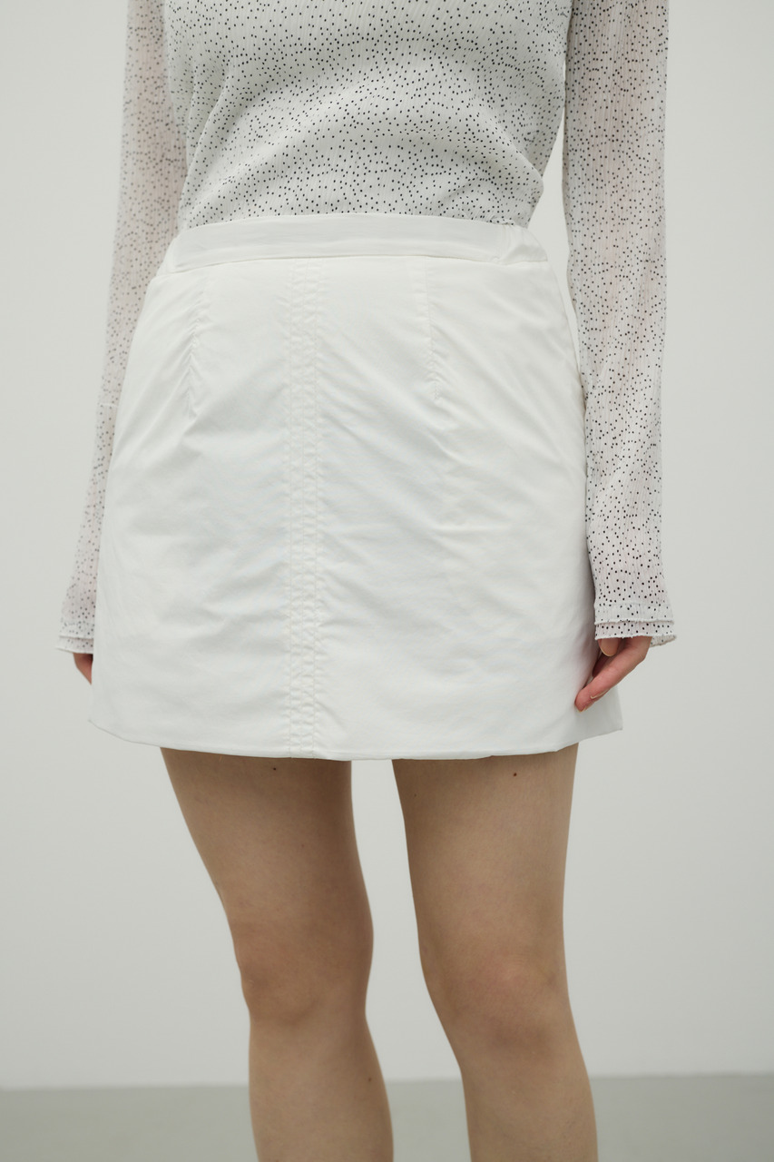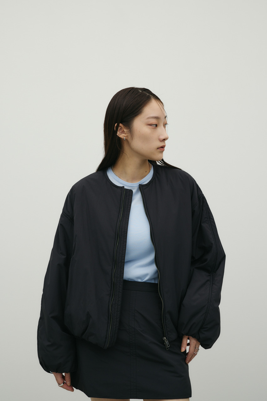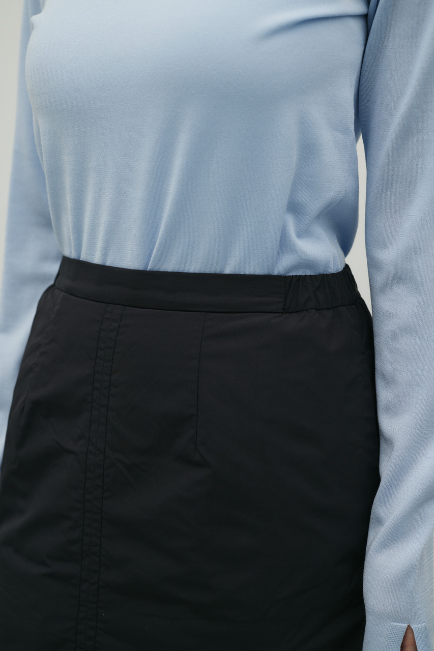 ステッチレスで仕上げた中綿ミニスカート。ポリエステルの中綿を使用しているので軽やかさと着心地の両方を叶えた一枚。バルーン裾でトレンド感のあるデザインに仕上げました。500JSB30-0351(パディングブルゾン)とセットアップ着用可能。裏地付き。ストレッチなし、透け感なし。
