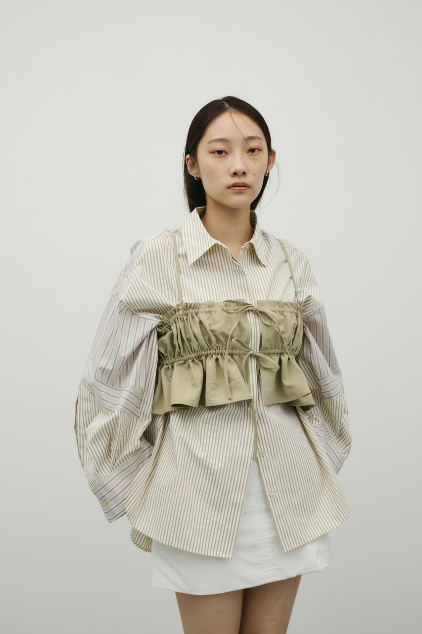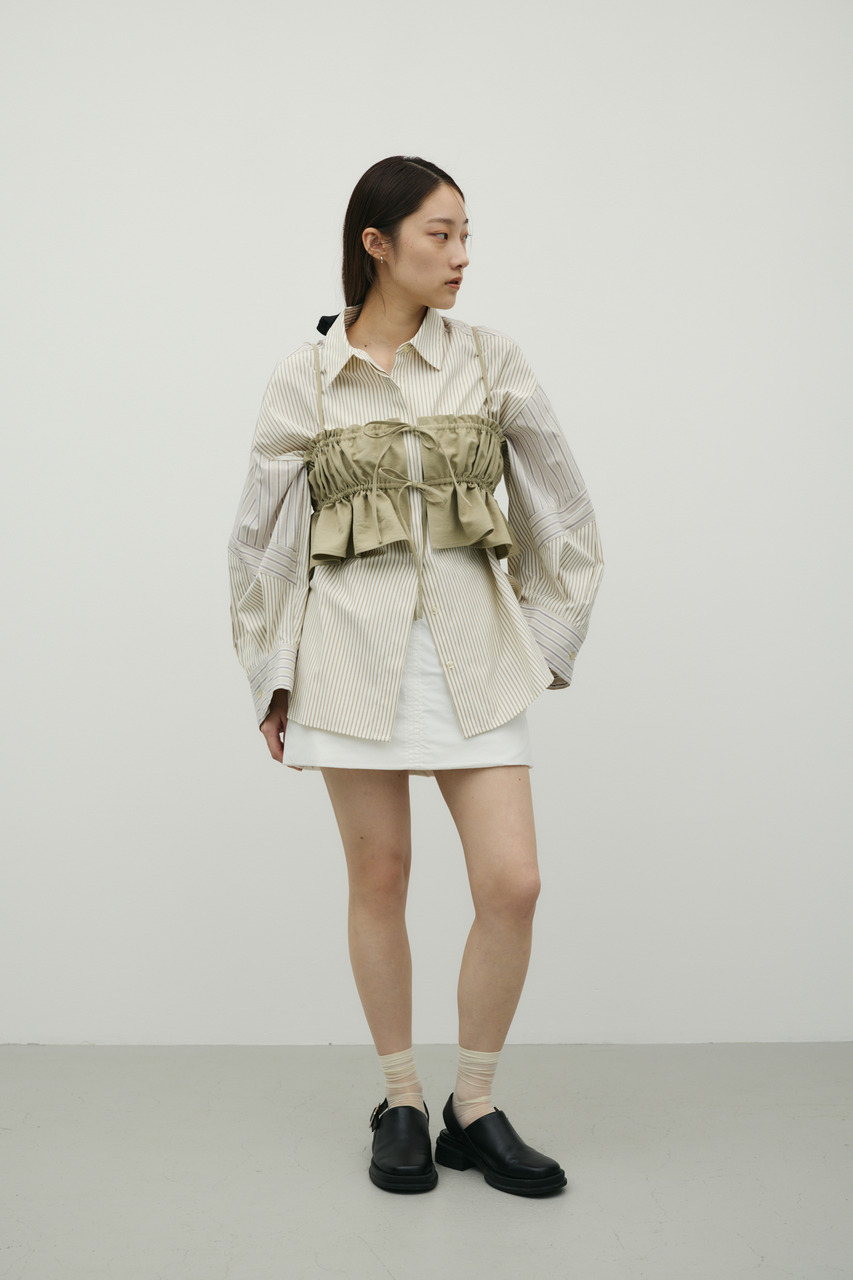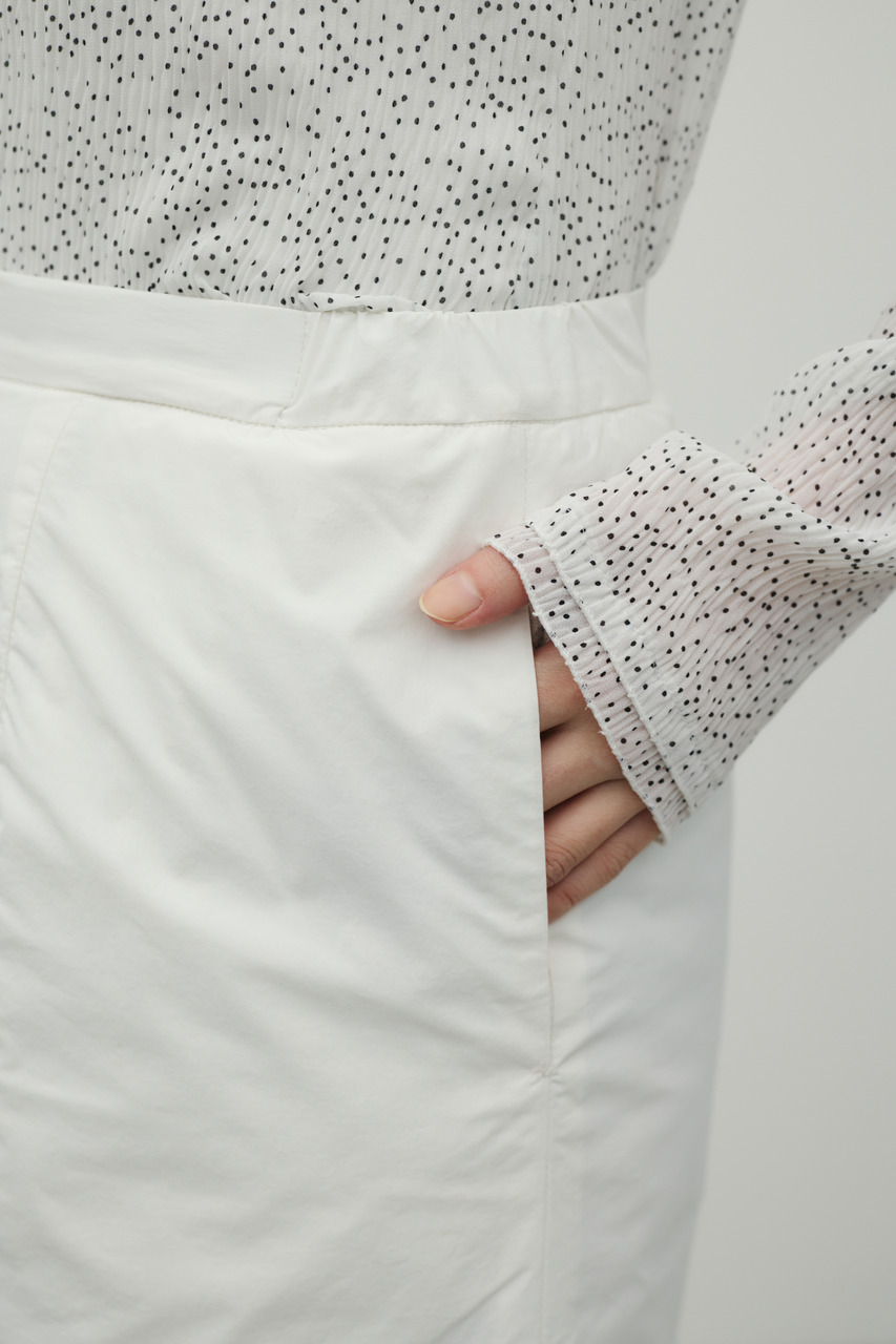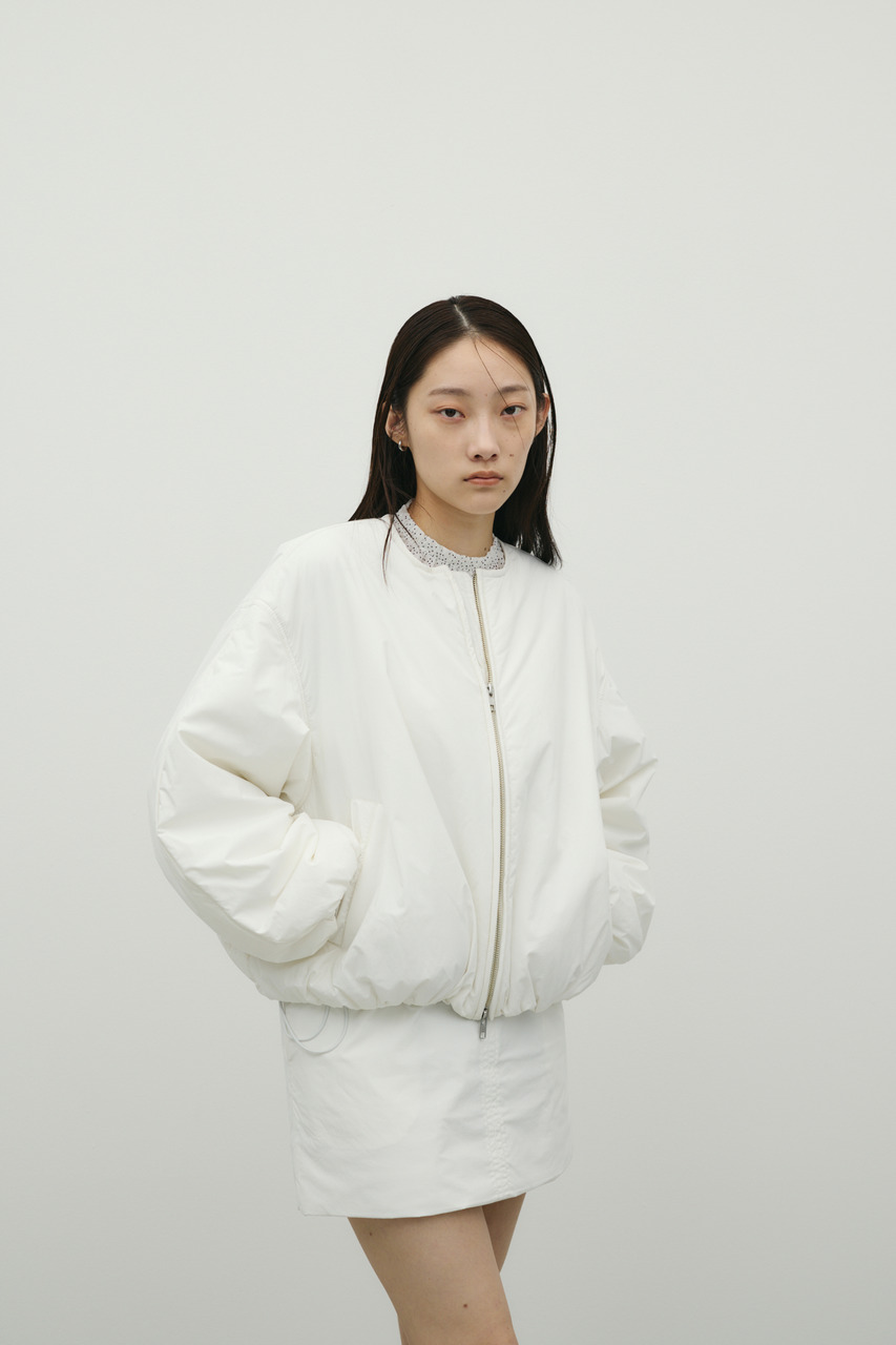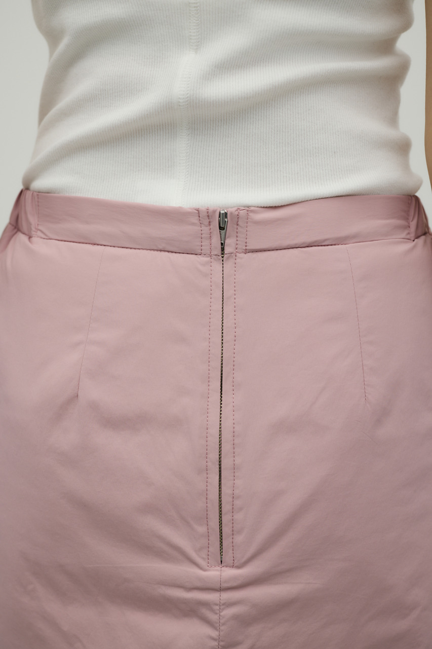ステッチレスで仕上げた中綿ミニスカート。ポリエステルの中綿を使用しているので軽やかさと着心地の両方を叶えた一枚。バルーン裾でトレンド感のあるデザインに仕上げました。500JSB30-0351(パディングブルゾン)とセットアップ着用可能。裏地付き。ストレッチなし、透け感なし。