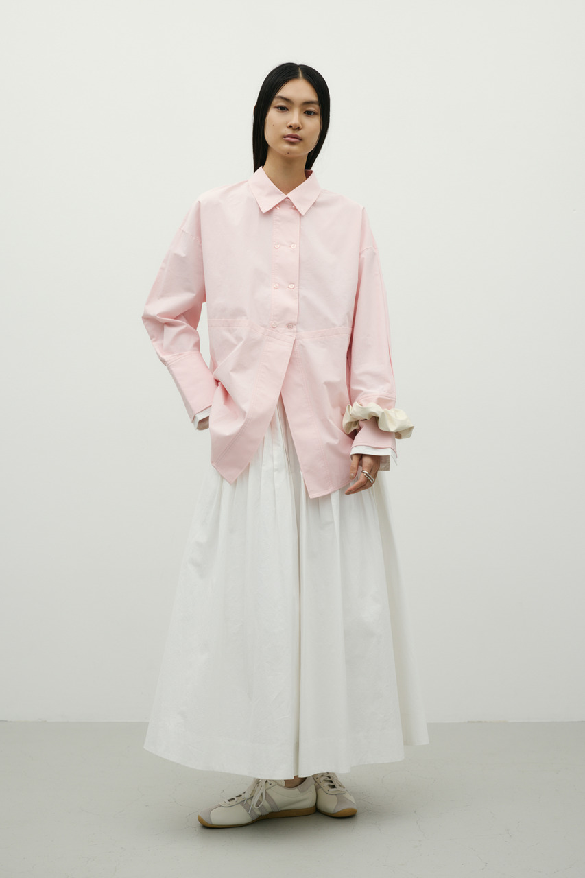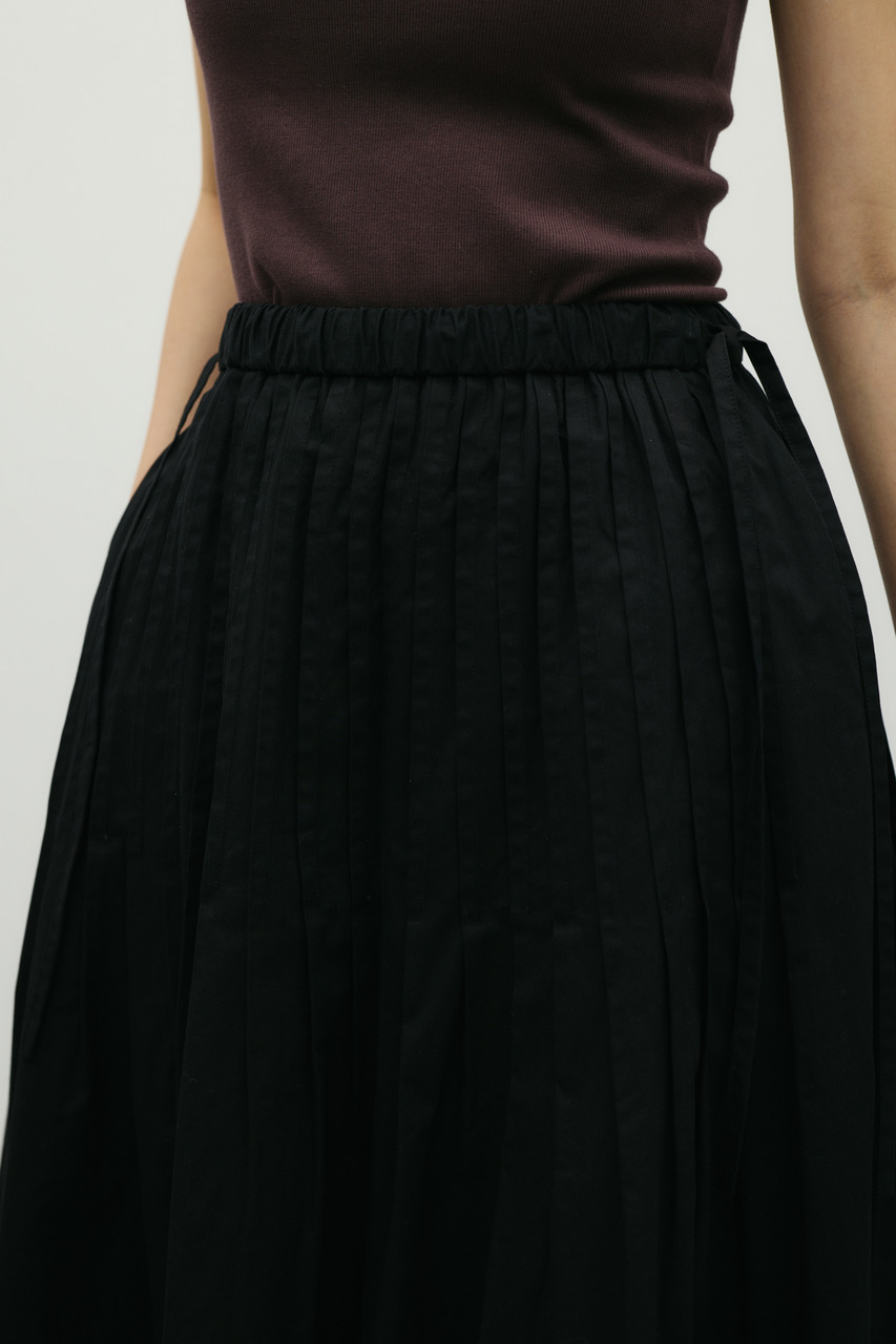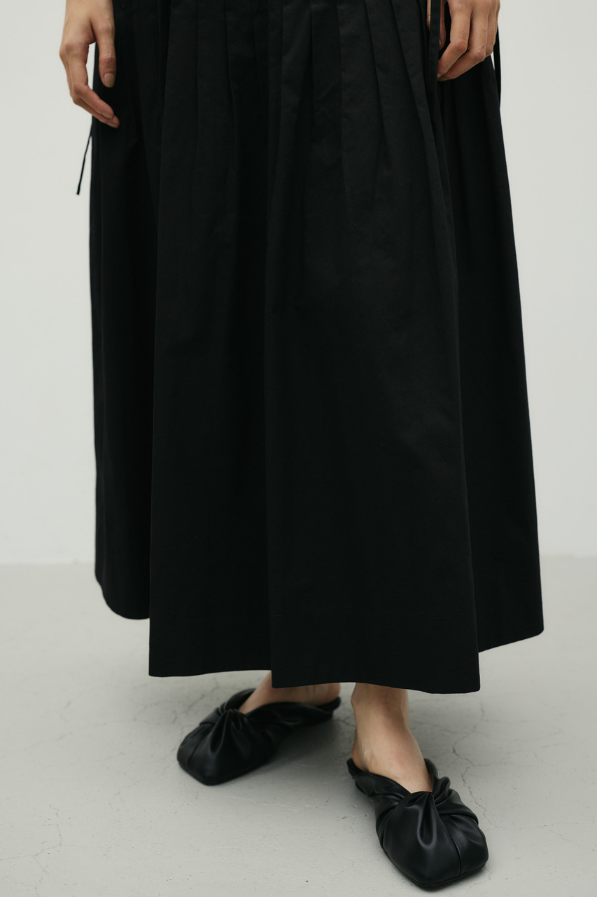 ボリューム感とハリのある素材でふんわり広がるフレアシルエットが魅力のタックプリーツスカート。程よくカジュアルな着こなしが楽しめる素材感でデイリーコーデにこなれ感をプラス。シンプルなトップスと合わせるだけで、ボリューム感を活かしたおしゃれなスタイルが完成します。ウエストは調節可能。透け感なし、ストレッチなし。