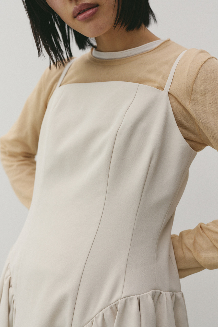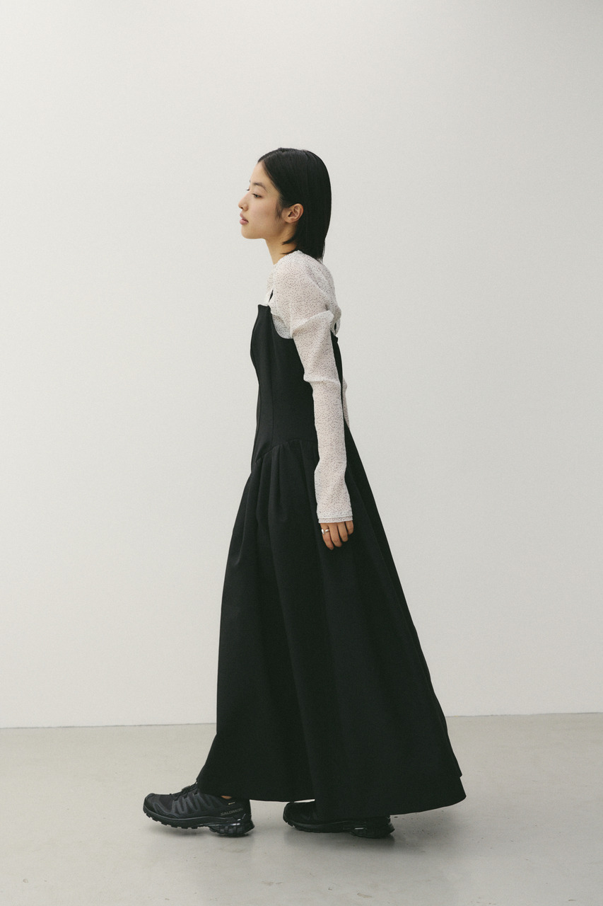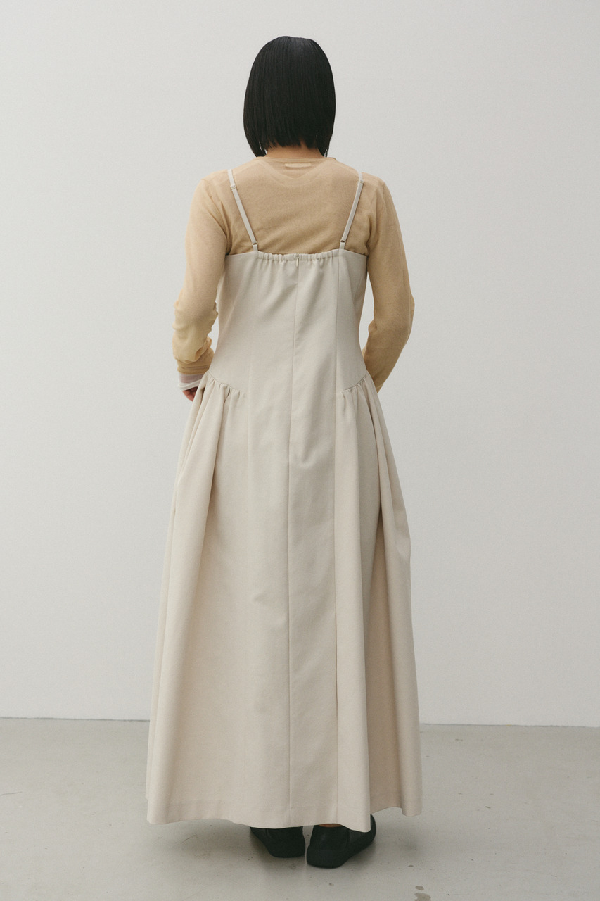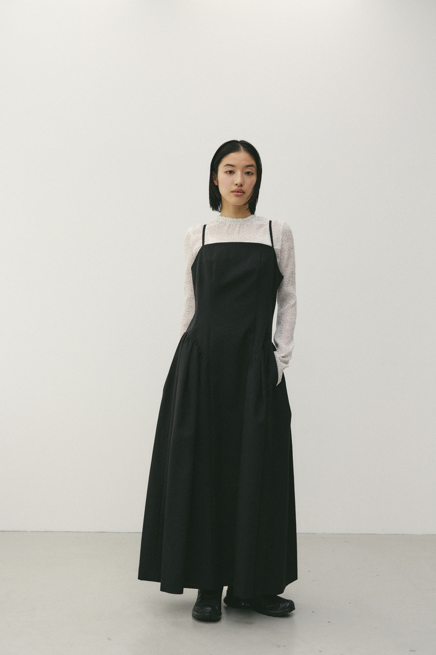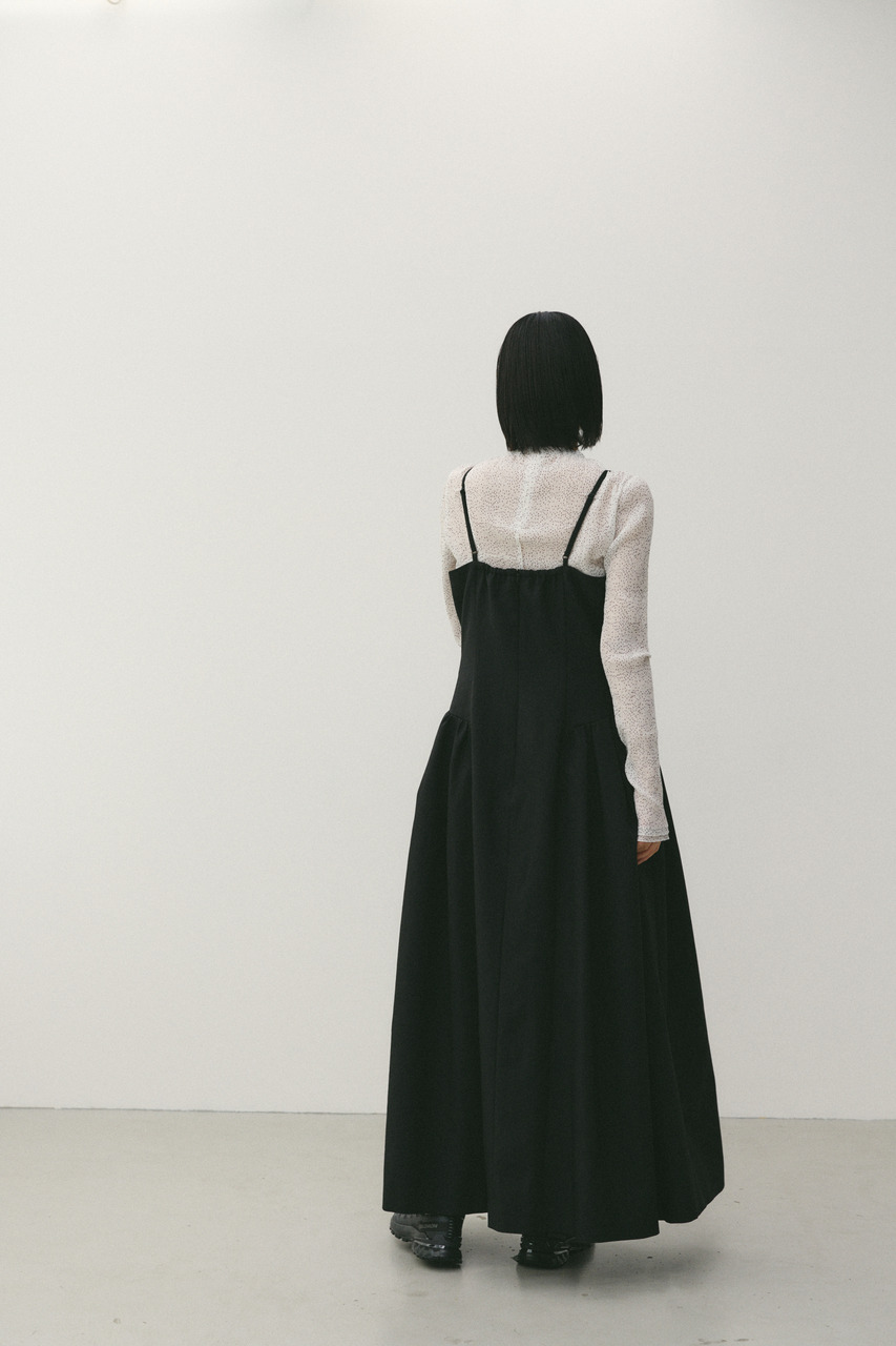 パネル切替デザインが印象的なキャミワンピース。スカート部分はトレンドの立体的なシルエットで、動きのある表情と美しいラインを演出します。華奢なキャミストラップが女性らしさを引き立て、インナー次第でロングシーズン着用可能。カットソーやニットとのレイヤードで、幅広いスタイリングが楽しめる一枚です。ストレッチなし、透け感なし。