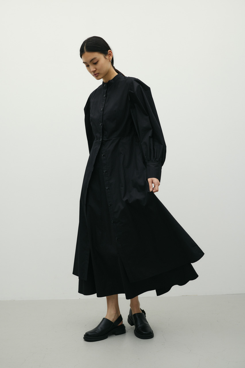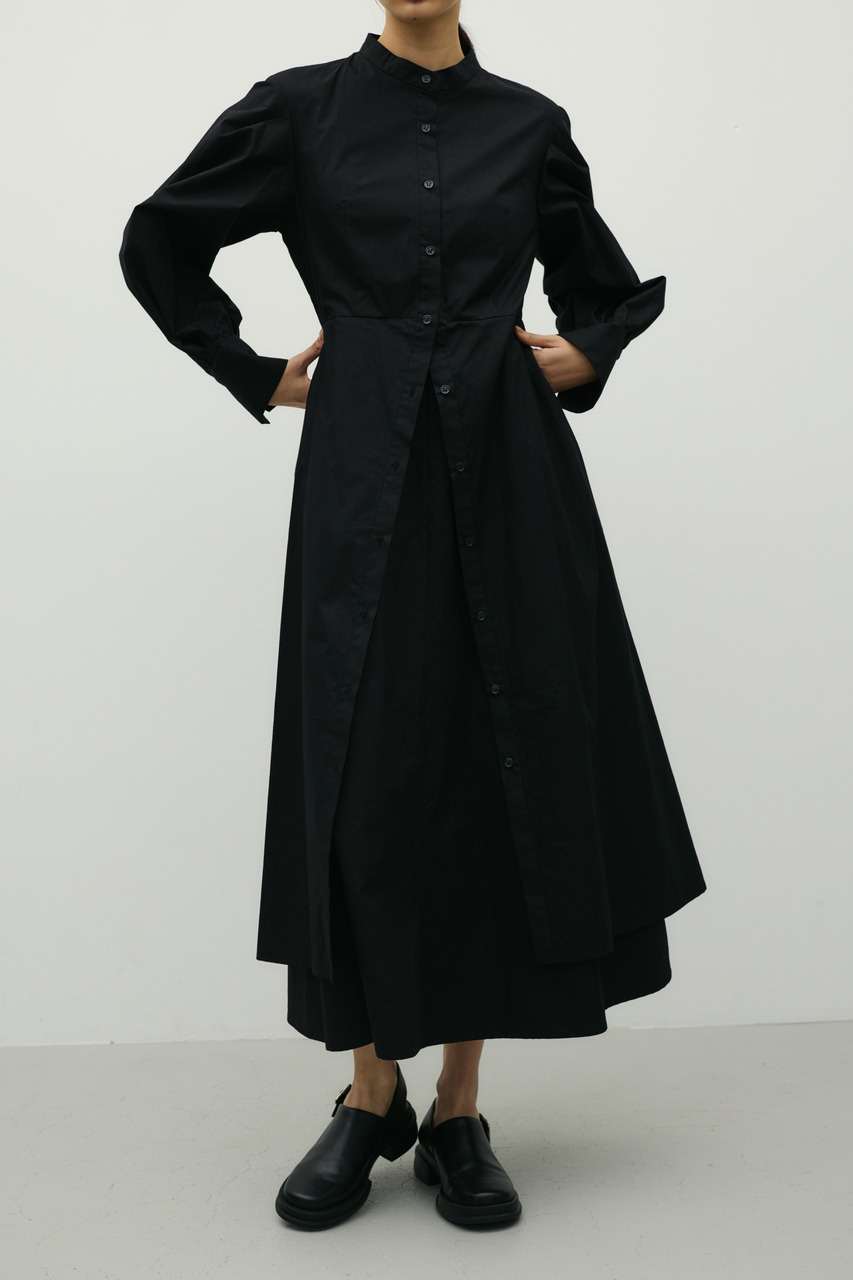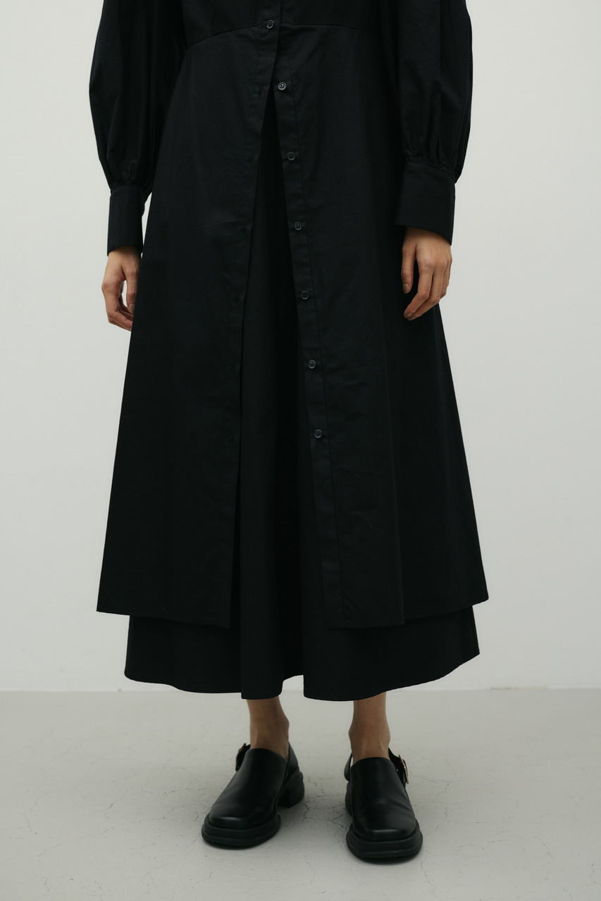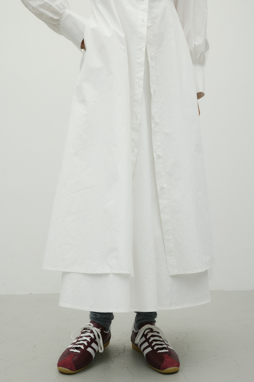ワンピースとスカートをレイヤードしたようなデザインが魅力のシャツワンピース。1枚でスタイリングが完成。簡単にトレンド感を演出できます。ワンピースとしてはもちろん、デザインのあるスカートとしての着用もおすすめです。透け感なし、ストレッチなし。