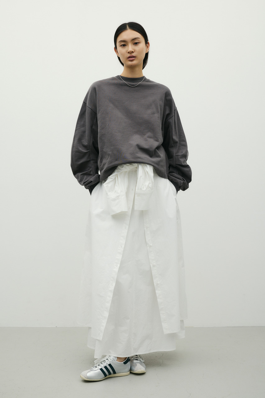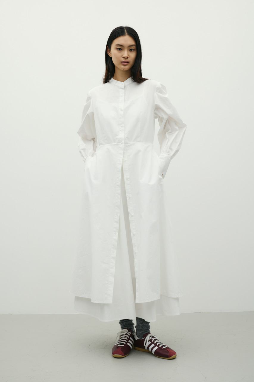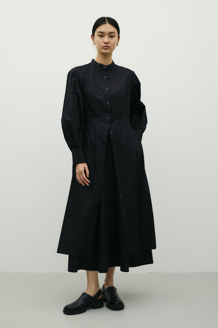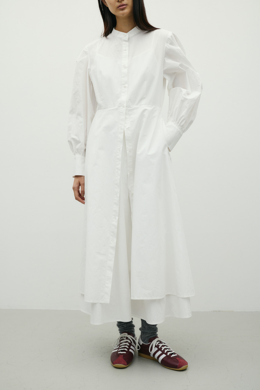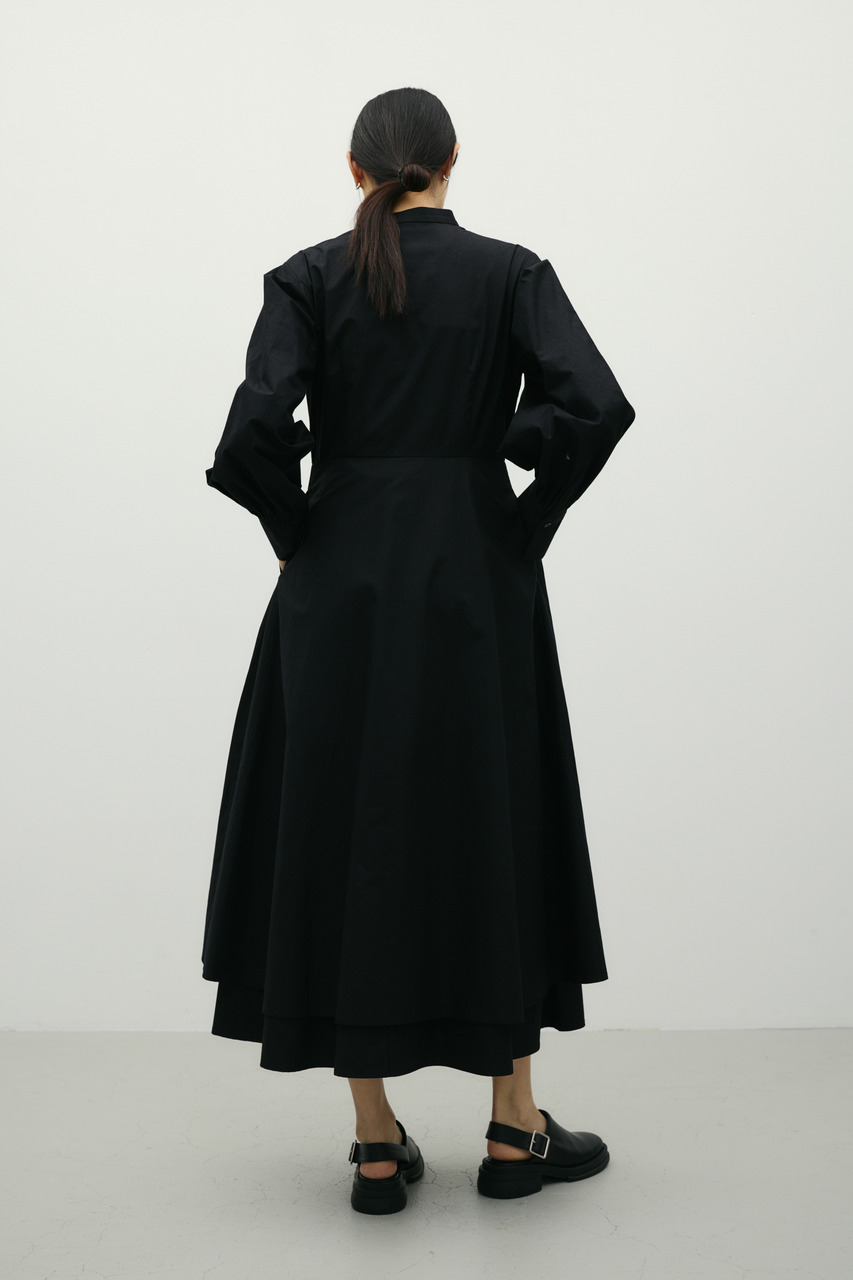 ワンピースとスカートをレイヤードしたようなデザインが魅力のシャツワンピース。1枚でスタイリングが完成。簡単にトレンド感を演出できます。ワンピースとしてはもちろん、デザインのあるスカートとしての着用もおすすめです。透け感なし、ストレッチなし。