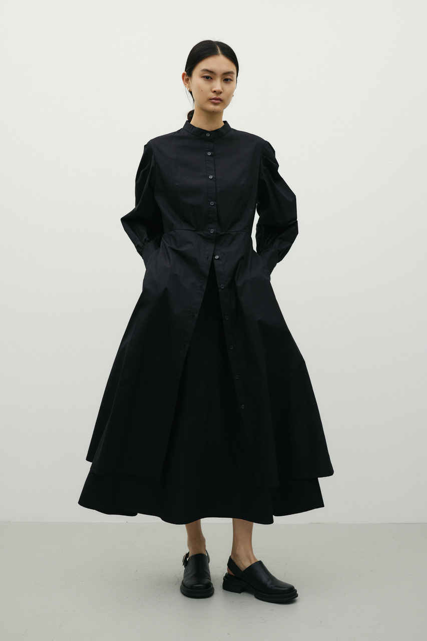 ワンピースとスカートをレイヤードしたようなデザインが魅力のシャツワンピース。1枚でスタイリングが完成。簡単にトレンド感を演出できます。ワンピースとしてはもちろん、デザインのあるスカートとしての着用もおすすめです。透け感なし、ストレッチなし。
