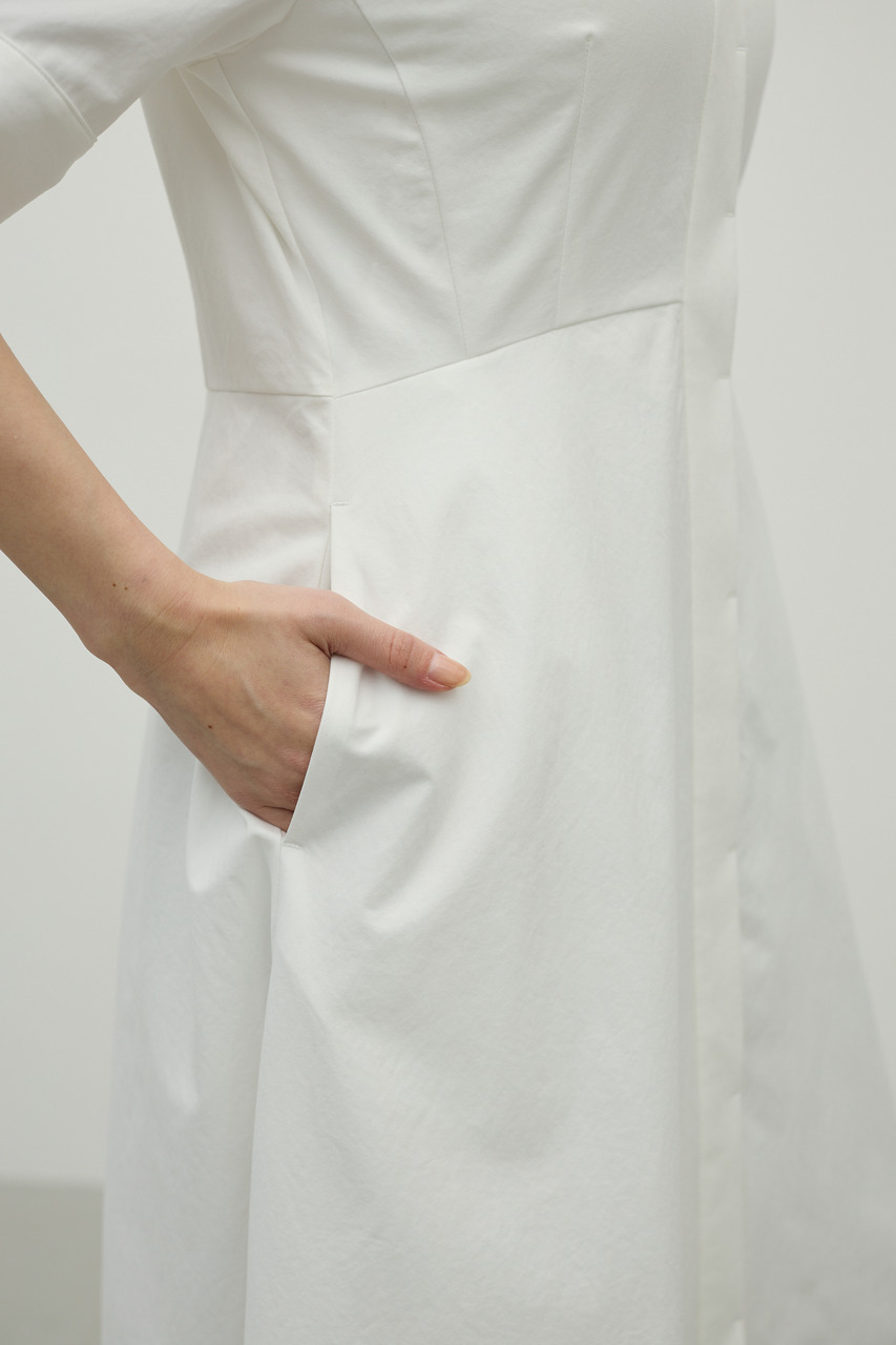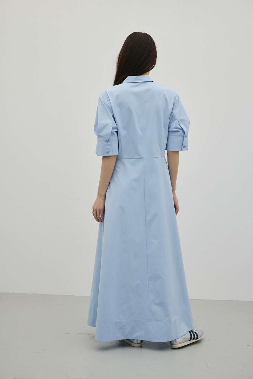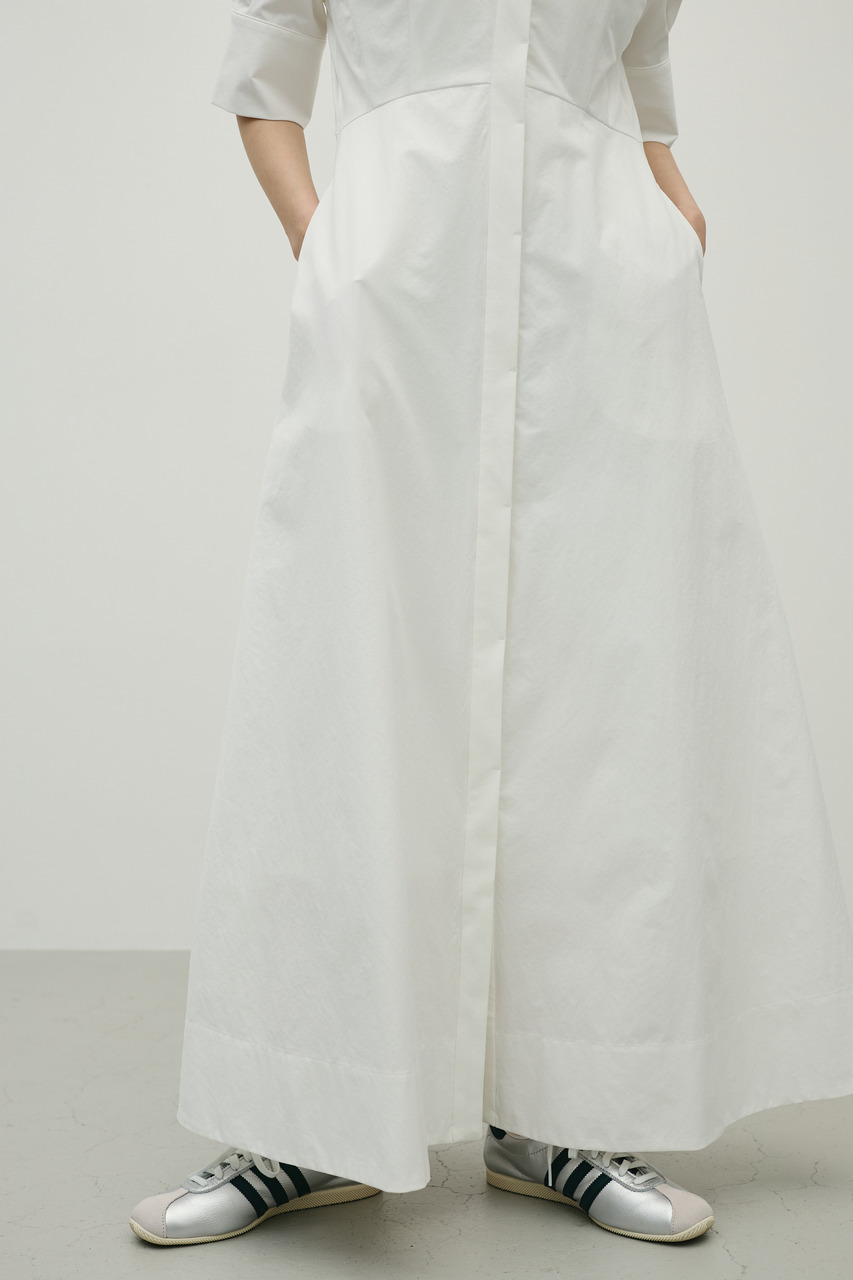 歩くたびにふわりと揺れる、優雅なフレアシルエットが魅力のマキシシャツワンピース。きちんと感のあるシャツデザインに、たっぷりと広がるフレアラインをプラスした上品な一枚です。ウエストから自然に広がるシルエットが女性らしさを引き立て、身体のラインをさりげなくカバー。一枚で着るだけで、洗練されたスタイルが完成します。前を開けて軽い羽織りとしても着用可能。デイリーからお出かけまで幅広く活躍します。ストレッチなし、透け感WHTややあり。