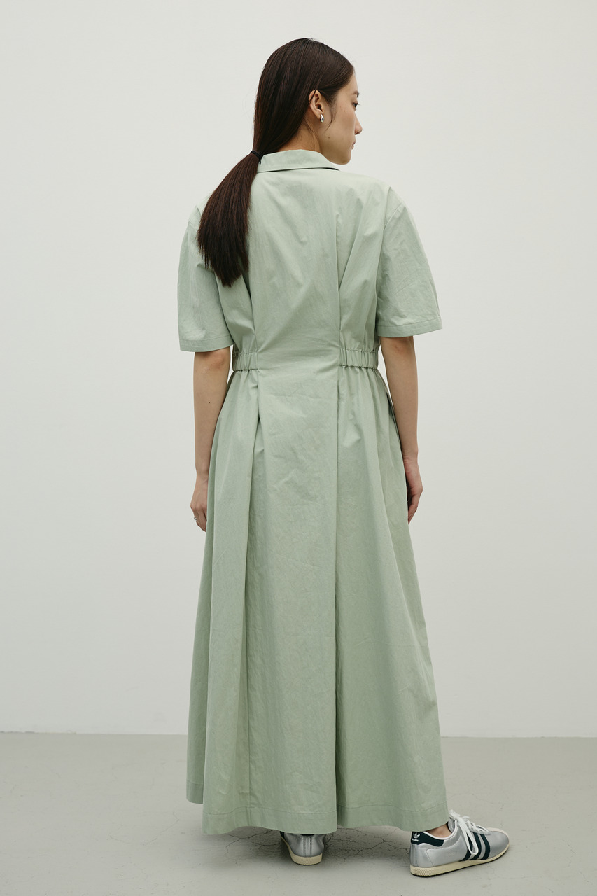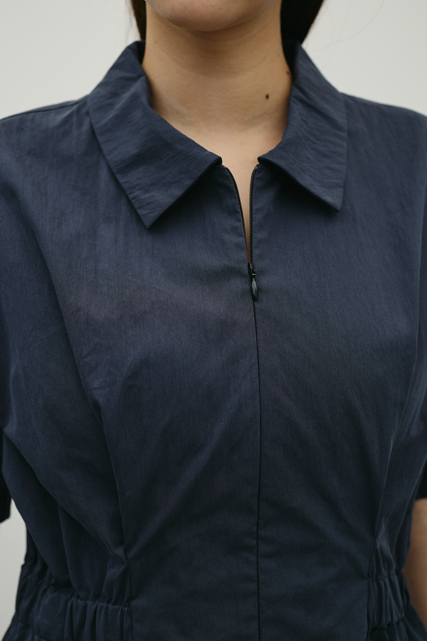 ウエストギャザーでメリハリを効かせた女性らしいシルエットの半袖シャツワンピース。フロントファスナーデザインがアクセントになり、程よくカジュアルダウンした一枚です。きゅっと寄せたウエストギャザーが自然なくびれを演出し、スタイルアップ効果◎。半袖デザインで軽やかに着られ、1枚でバランスの取れたコーデが完成します。フロントジップ仕様。ジップの開け具合で印象を変えられるのもポイントです。ストレッチなし、透け感WHTややあり。