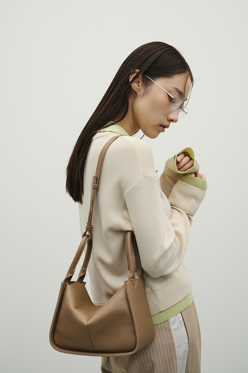スクエア型のボックスデザインがスタイリッシュな2WAYバッグ。フラップ付きで中身をしっかりカバーしつつ、ハンドルと肩掛けの2WAY仕様でシーンに合わせて使い分けての利用が可能。程よいサイズ感でデイリーからきれいめまで幅広いシーンで活躍します。