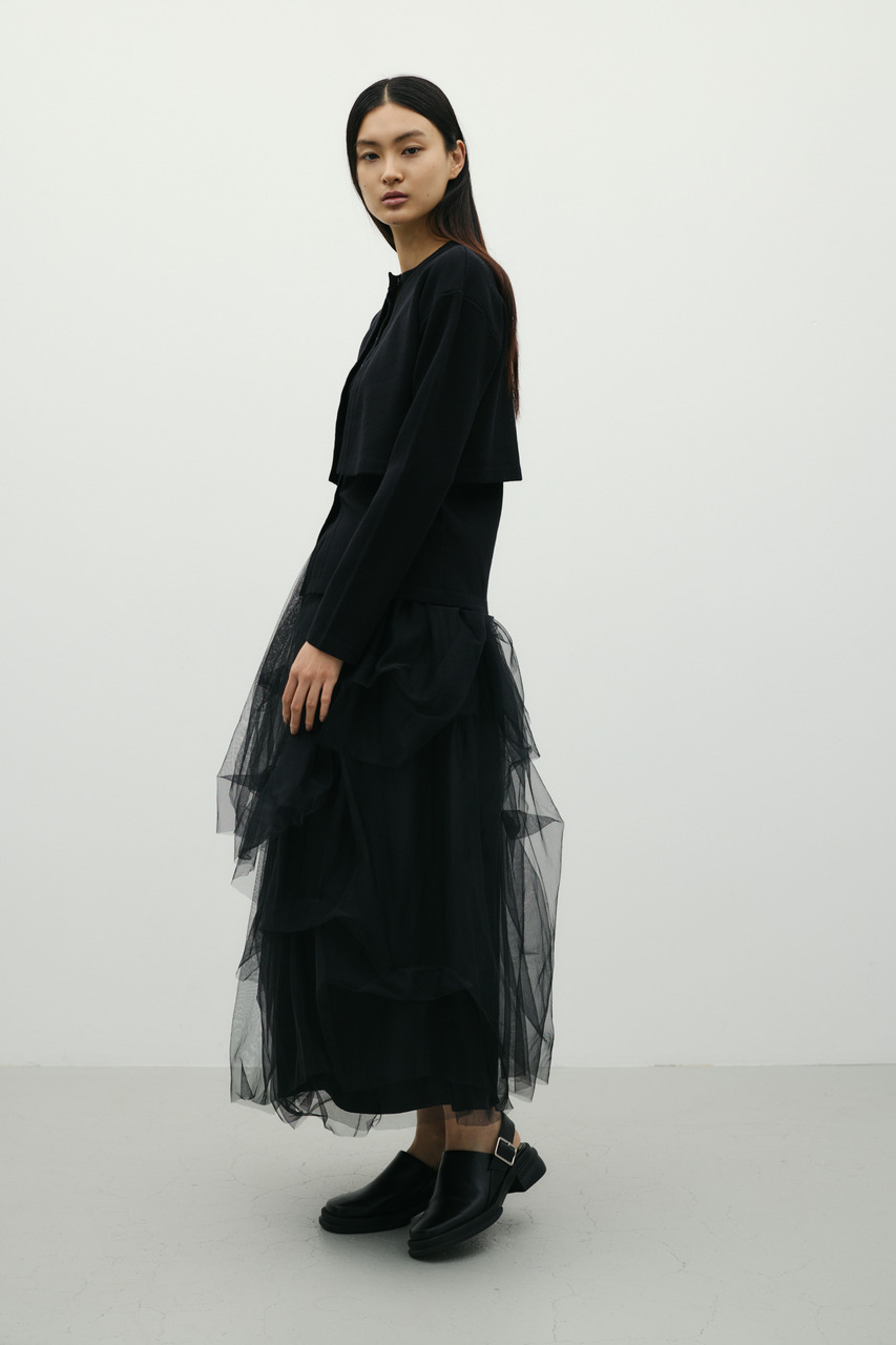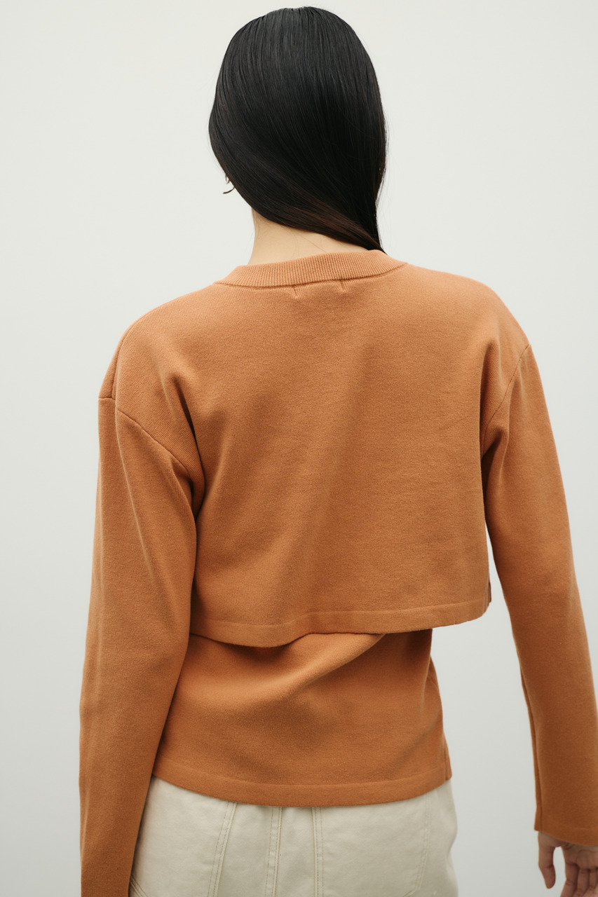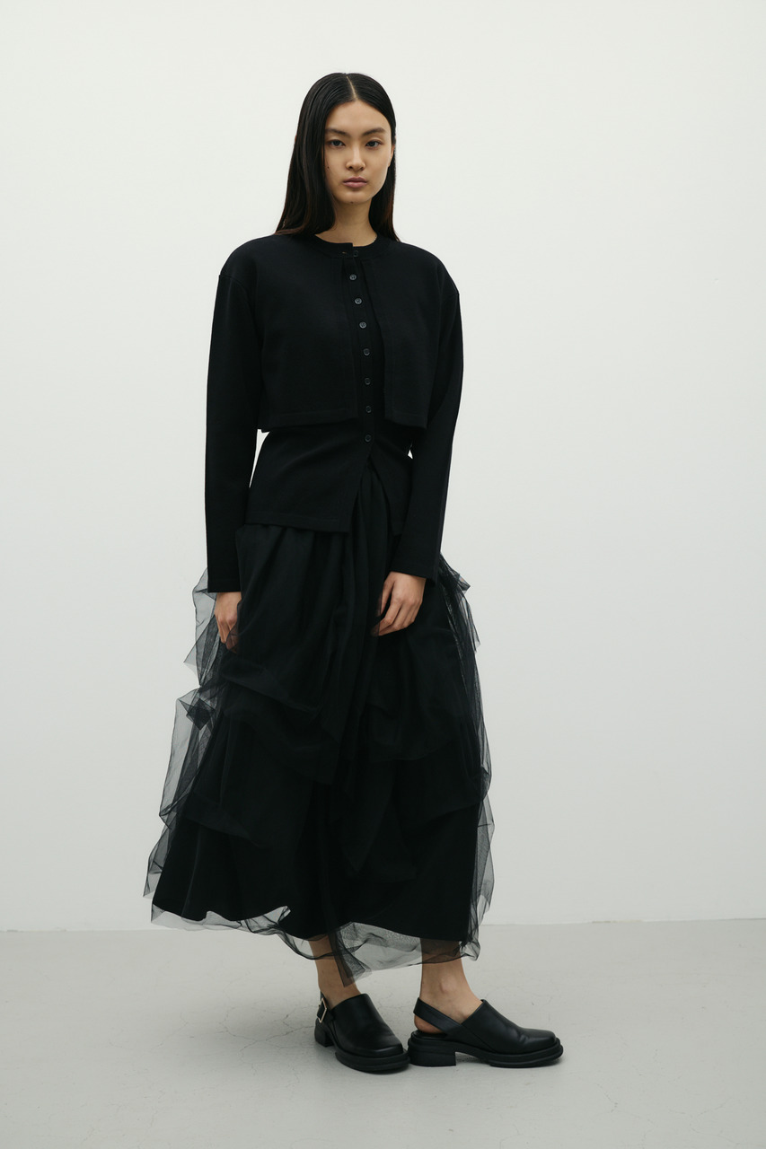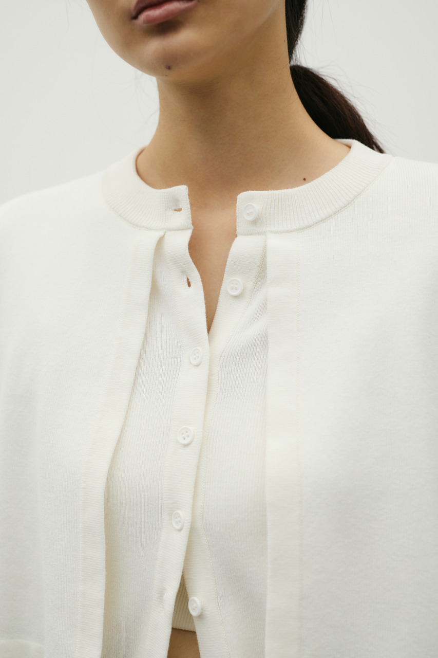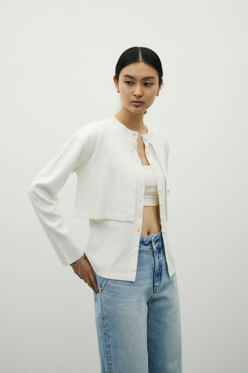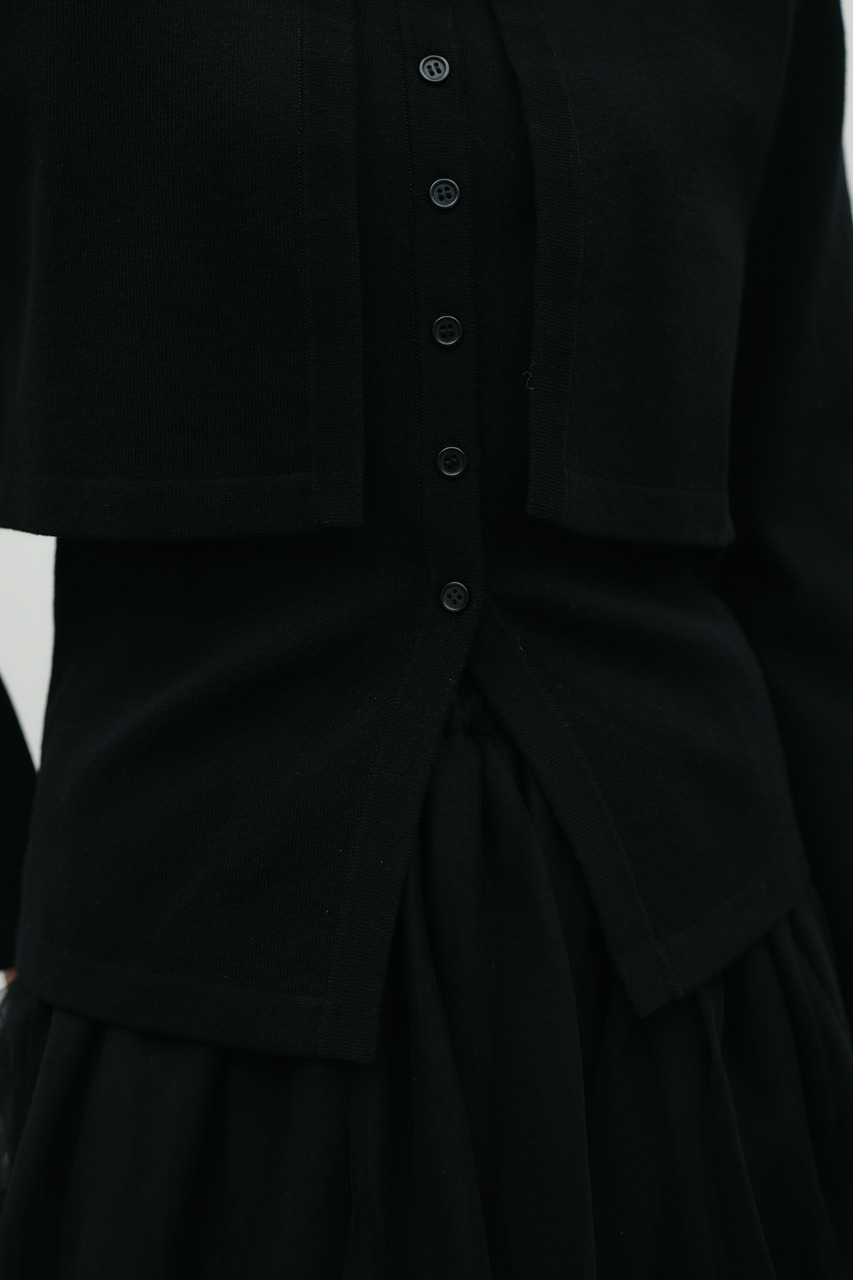重ね着しているようなデザインが魅力のレイヤード風ニットカーディガン。1枚でコーディネートが完成し、簡単にこなれた印象を演出します。やわらかなニット素材で着心地が良く、季節の変わり目にも活躍。パンツにもスカートにも合わせやすく、シーン問わず使える一枚です。透け感なし、ストレッチあり。