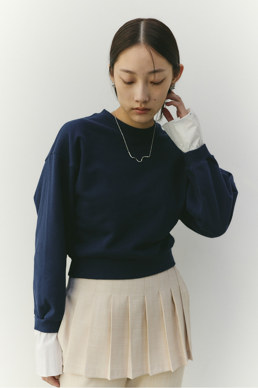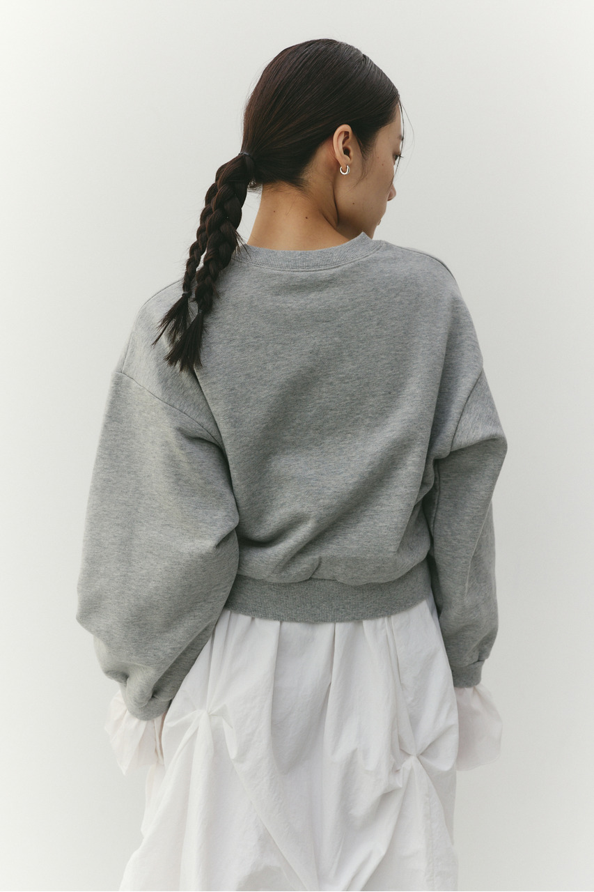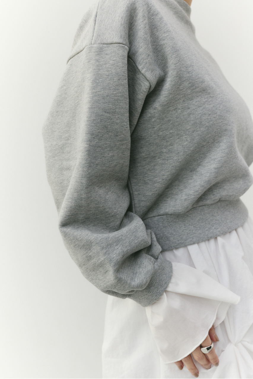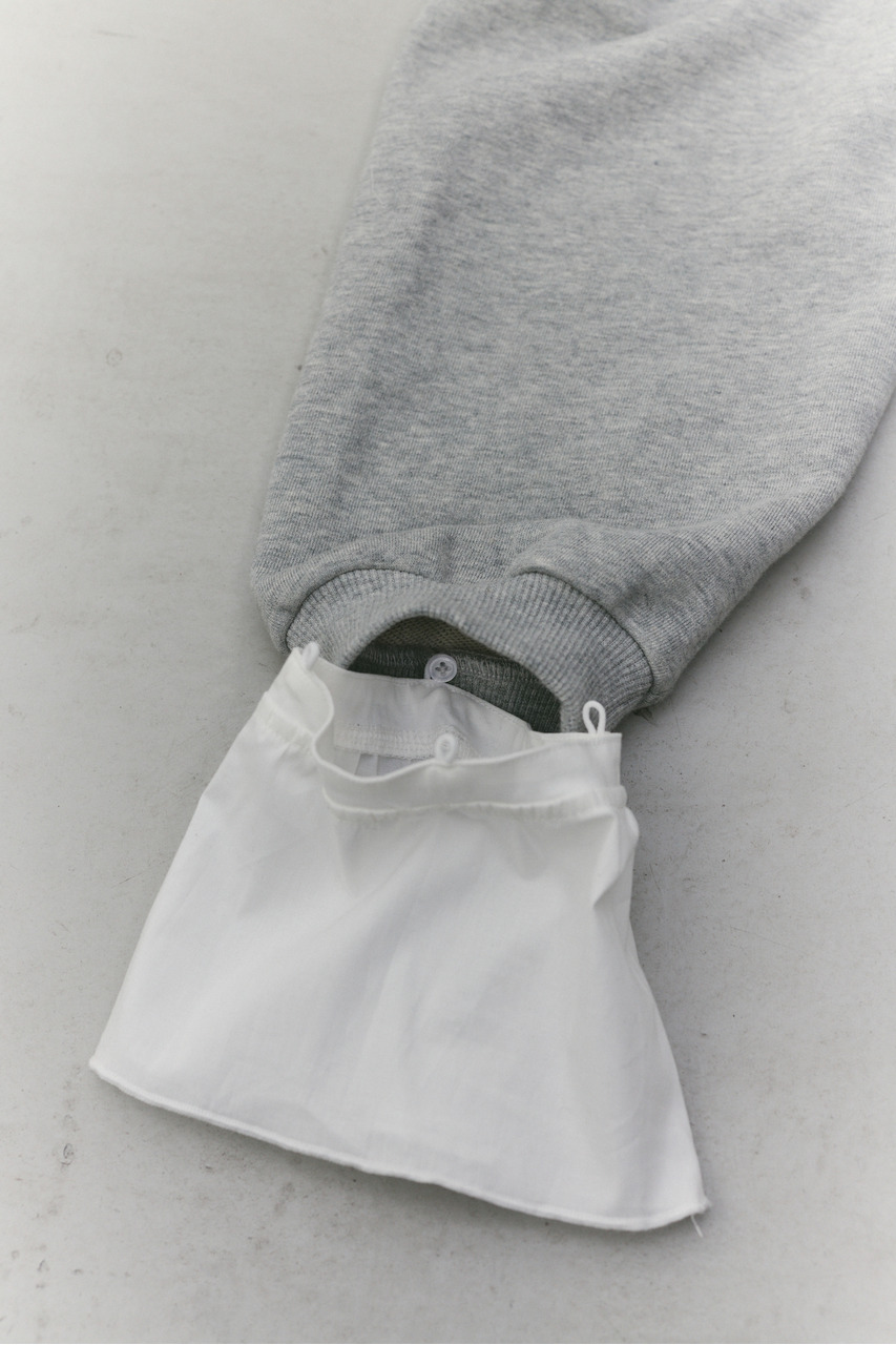 フリルデザインのカフスが女性らしさを引き立てるスウェットトップ。カフスは取り外し可能な仕様で、気分やシーンに合わせて印象を変えられます。カフスを外せばシンプルなスウェットとして着用でき、デイリー使いにも最適。程よい厚みのスウェット素材で着心地が良く、カジュアルながらも華やかさのある一枚です。透け感なし、ストレッチあり。