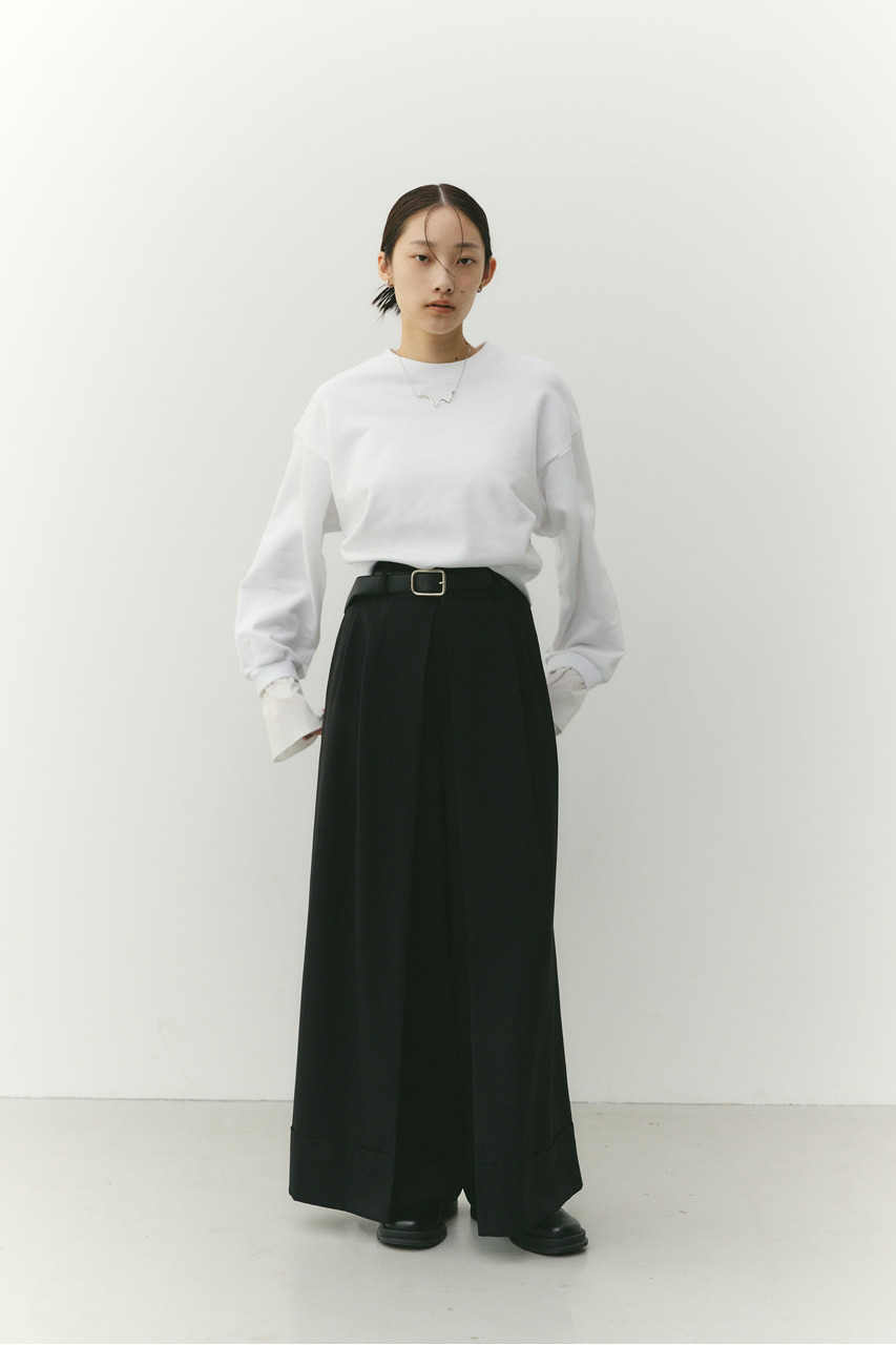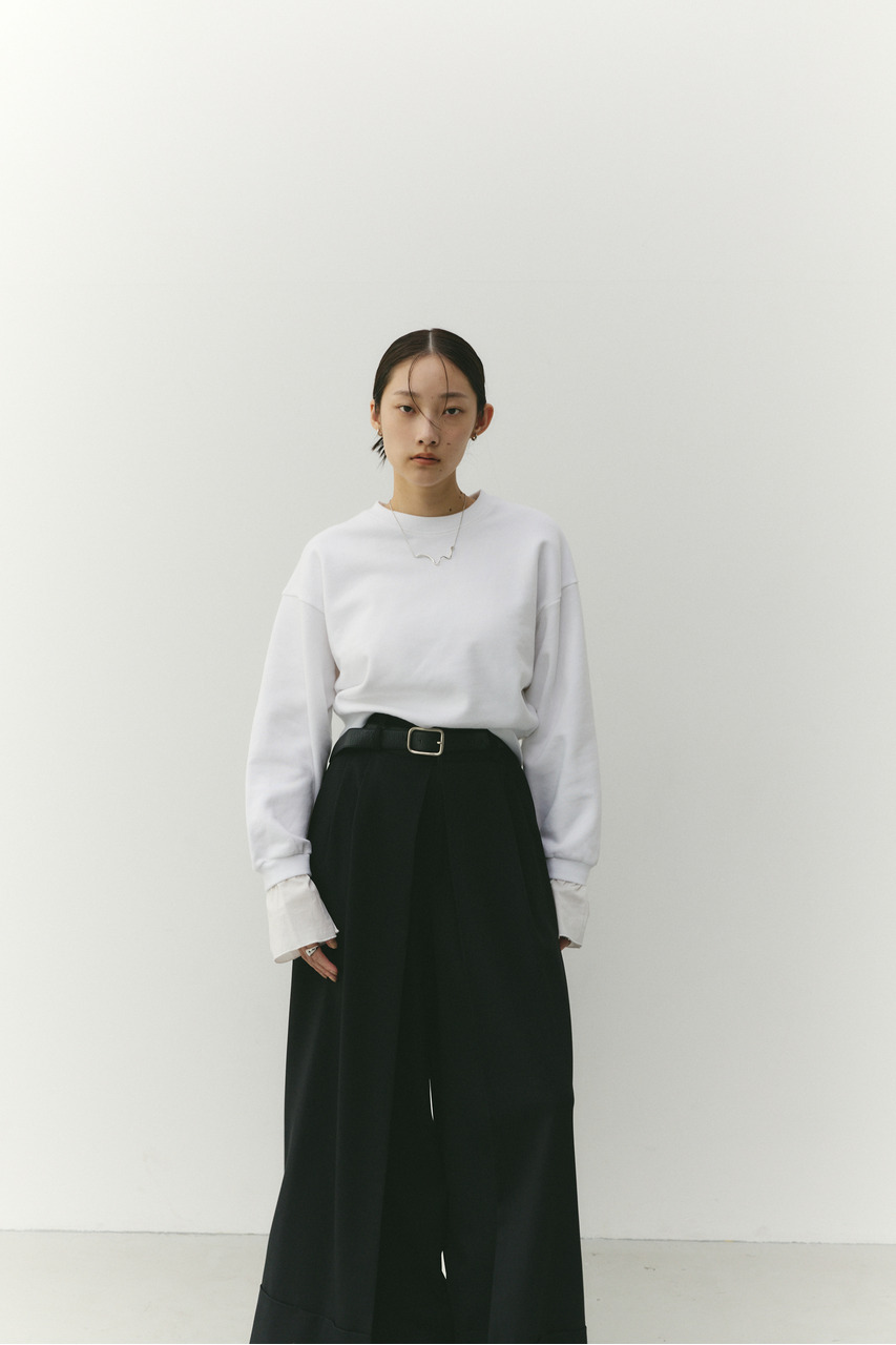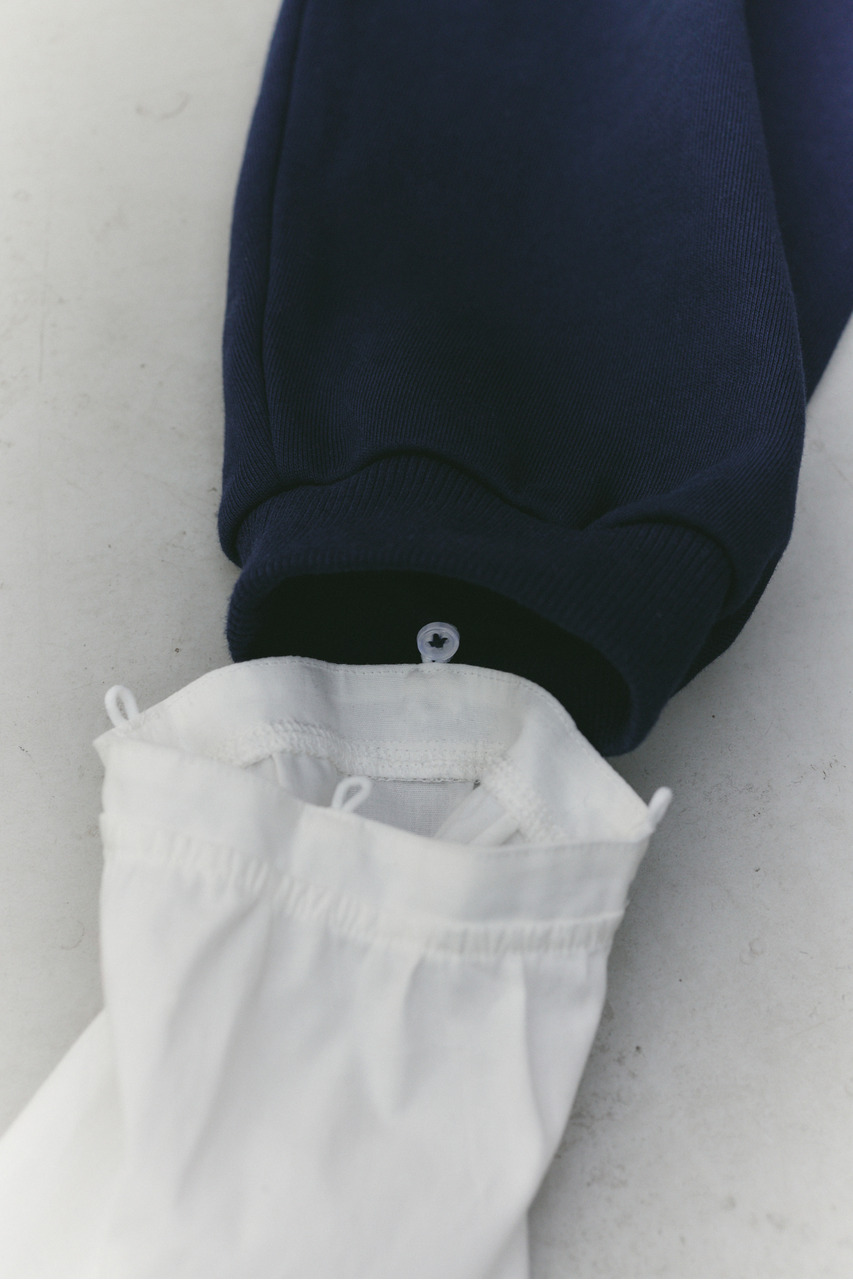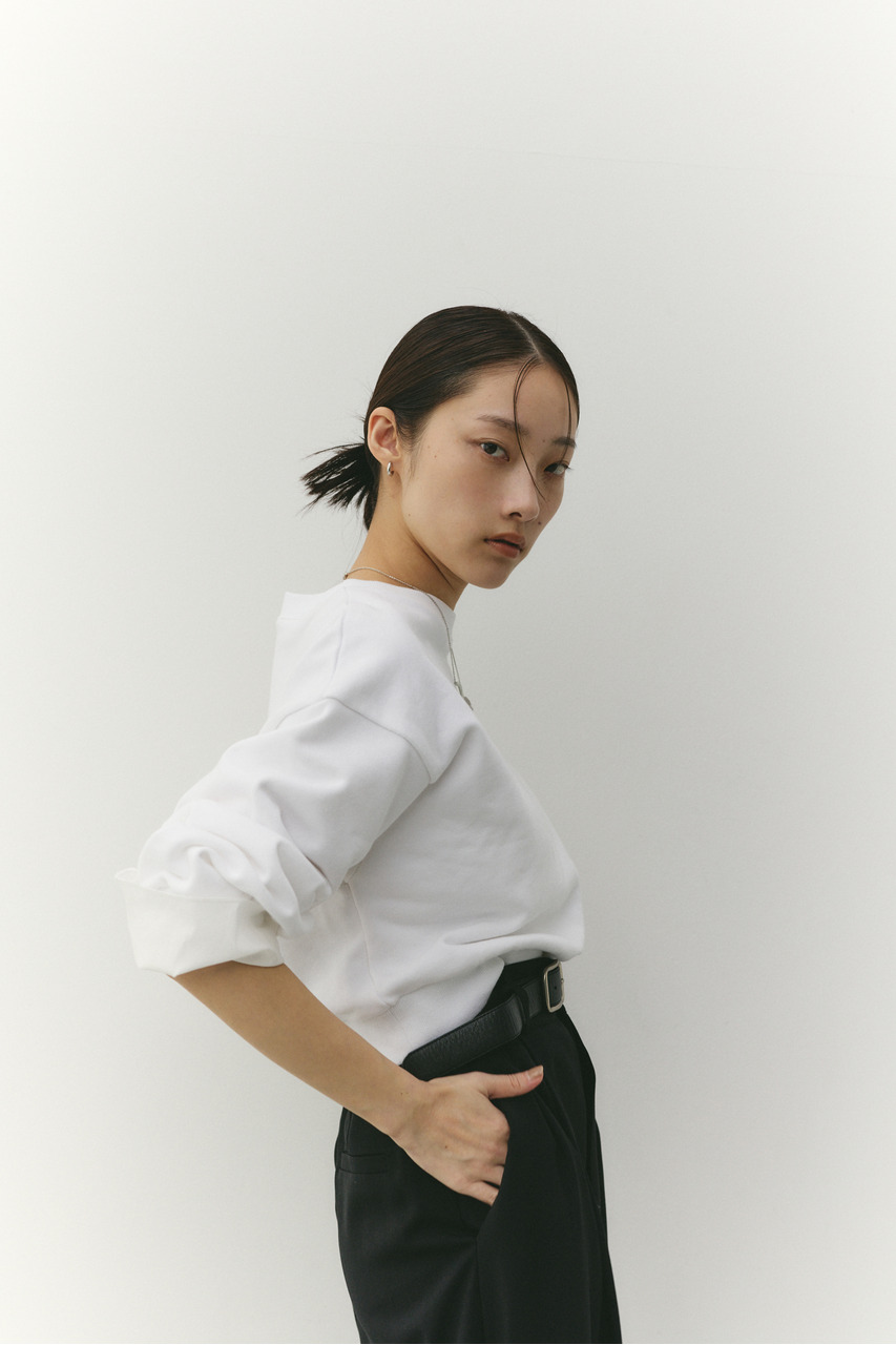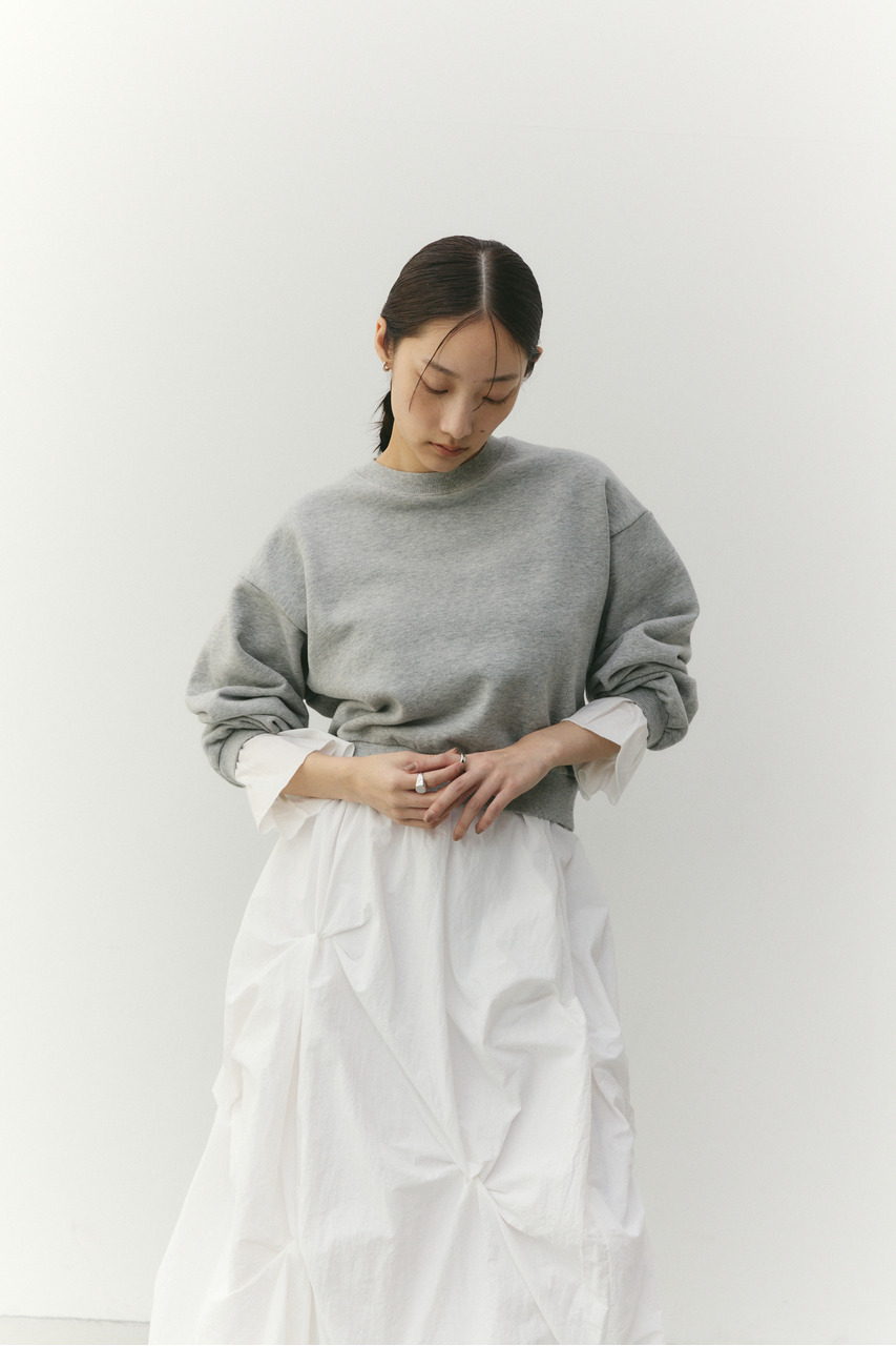 フリルデザインのカフスが女性らしさを引き立てるスウェットトップ。カフスは取り外し可能な仕様で、気分やシーンに合わせて印象を変えられます。カフスを外せばシンプルなスウェットとして着用でき、デイリー使いにも最適。程よい厚みのスウェット素材で着心地が良く、カジュアルながらも華やかさのある一枚です。透け感なし、ストレッチあり。