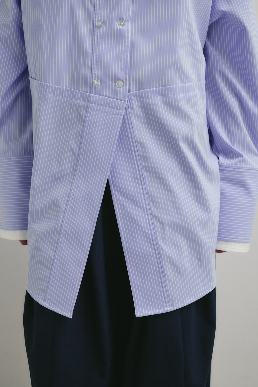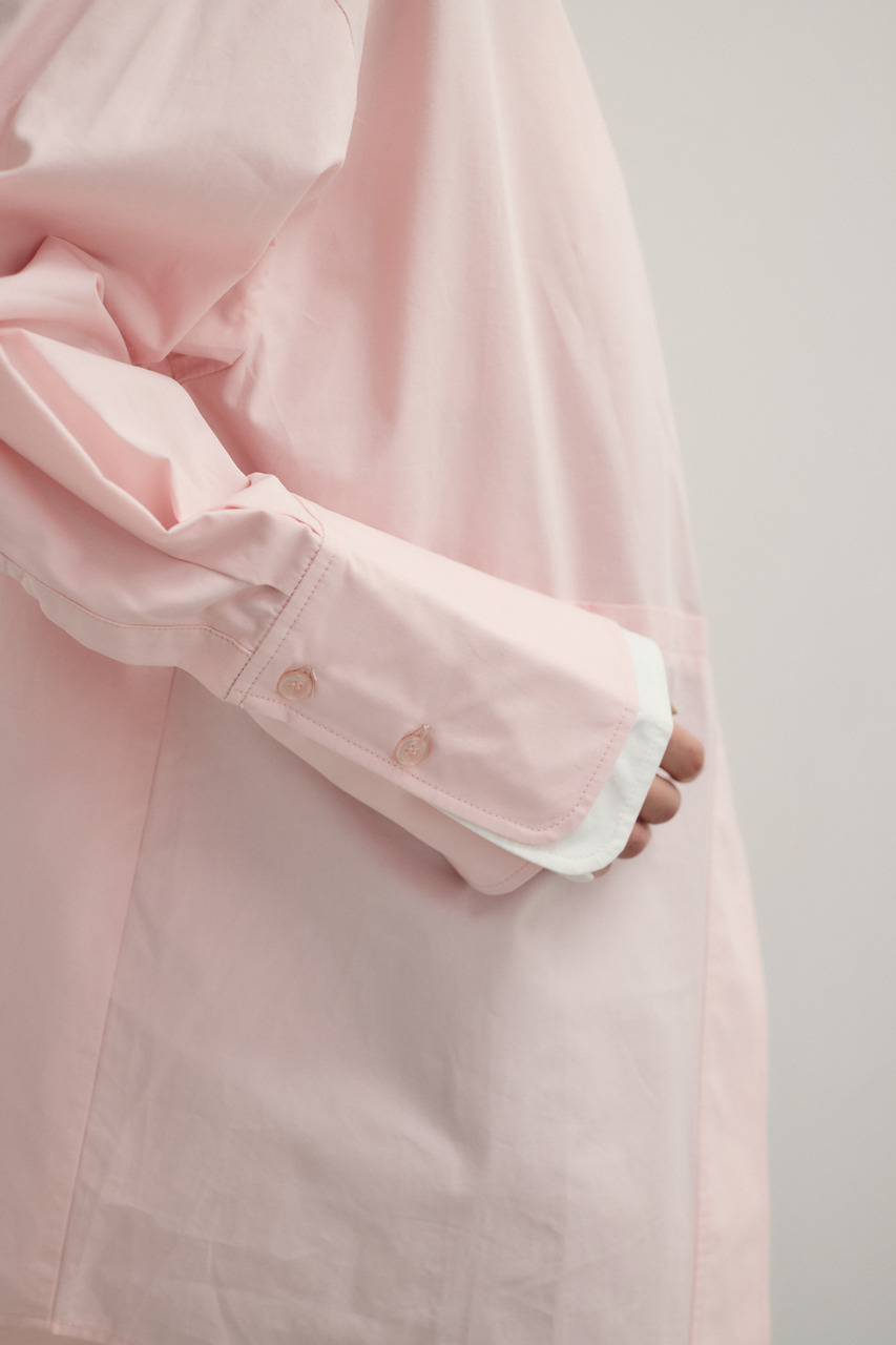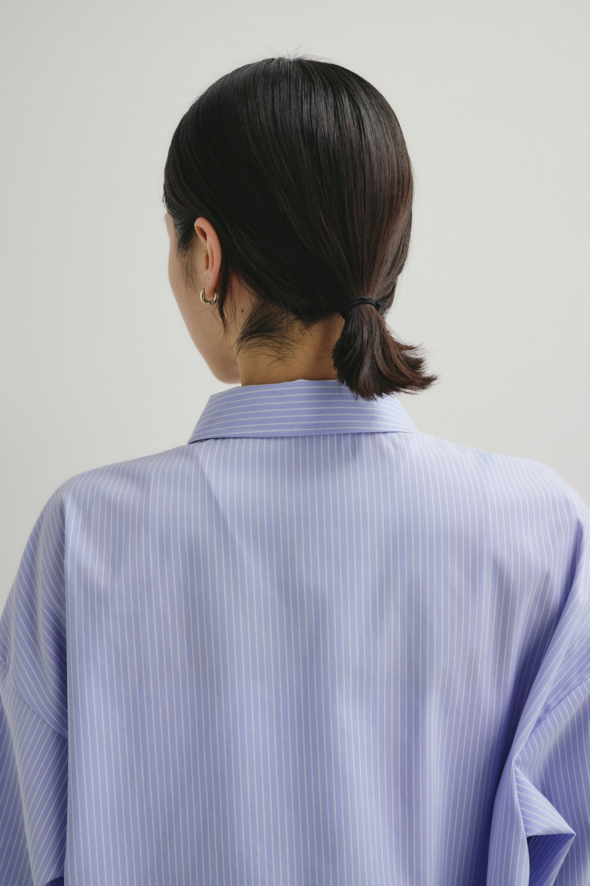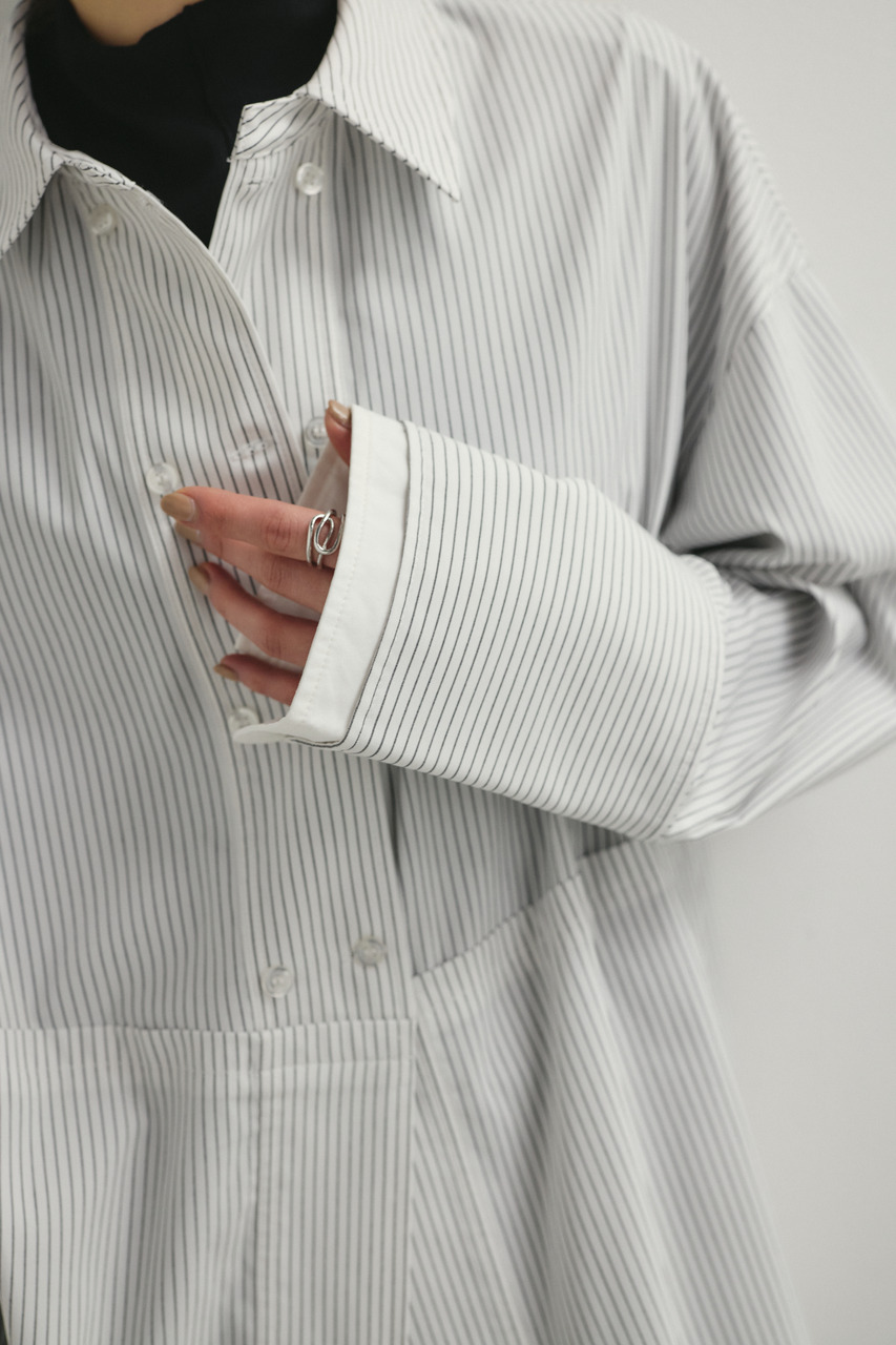 裾広がりのデザインが、一枚で雰囲気が出るオーバーサイズシャツ。ボックスシルエットがモードな印象に導きます。袖口の配色レイヤードデザインがポイント。アウターの中に入れて裾を出すなどレイヤードスタイリングが幅広く楽しめる一枚です。ストレッチなし、透け感WHTややあり。