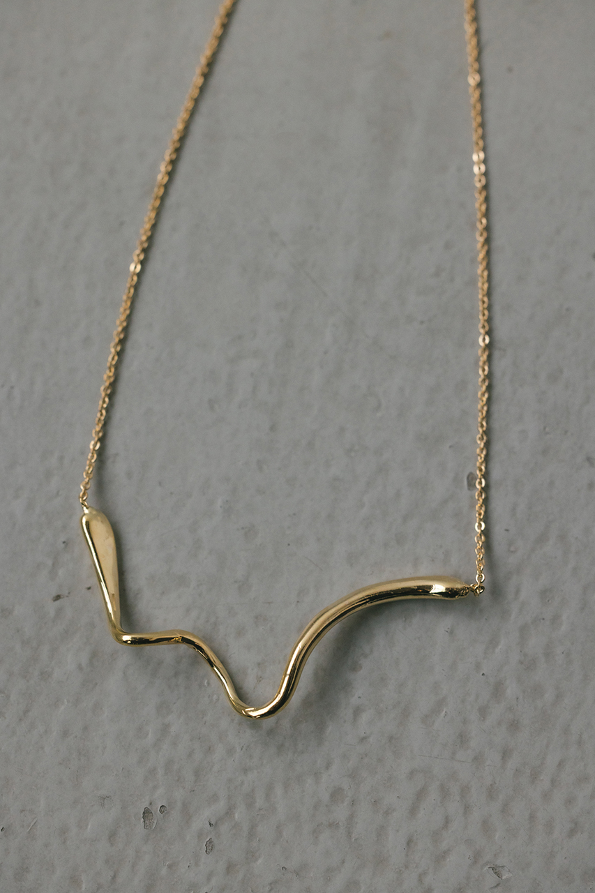 ニュアンスモチーフが存在感のあるネックレス。オケージョンシーンなどにもおすすめです。