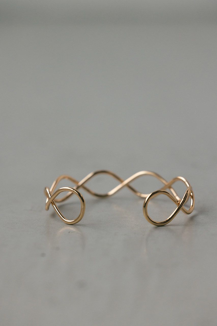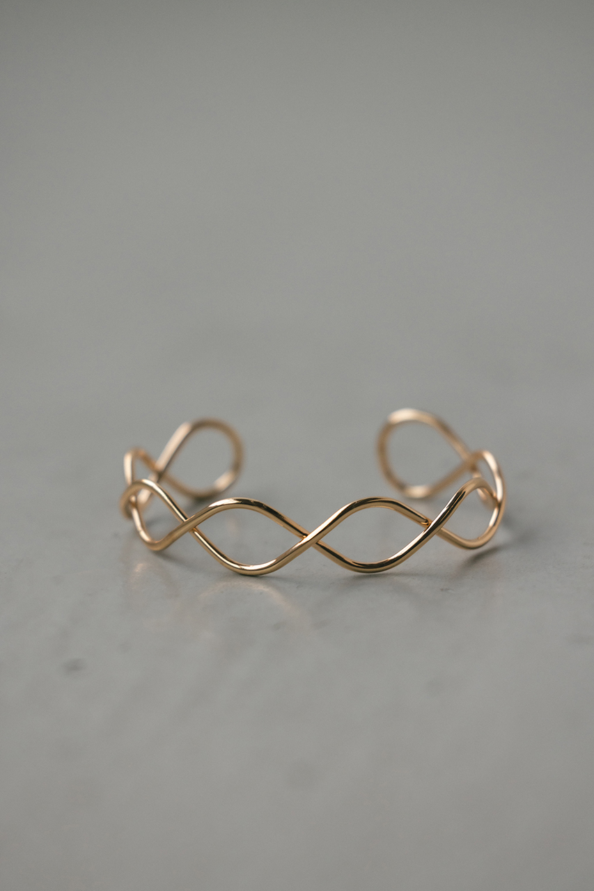シンプルながら存在感のあるバングル。カジュアルなスタイリングはもちろん、オケージョンなどにも華やかになるのでおすすめです。
