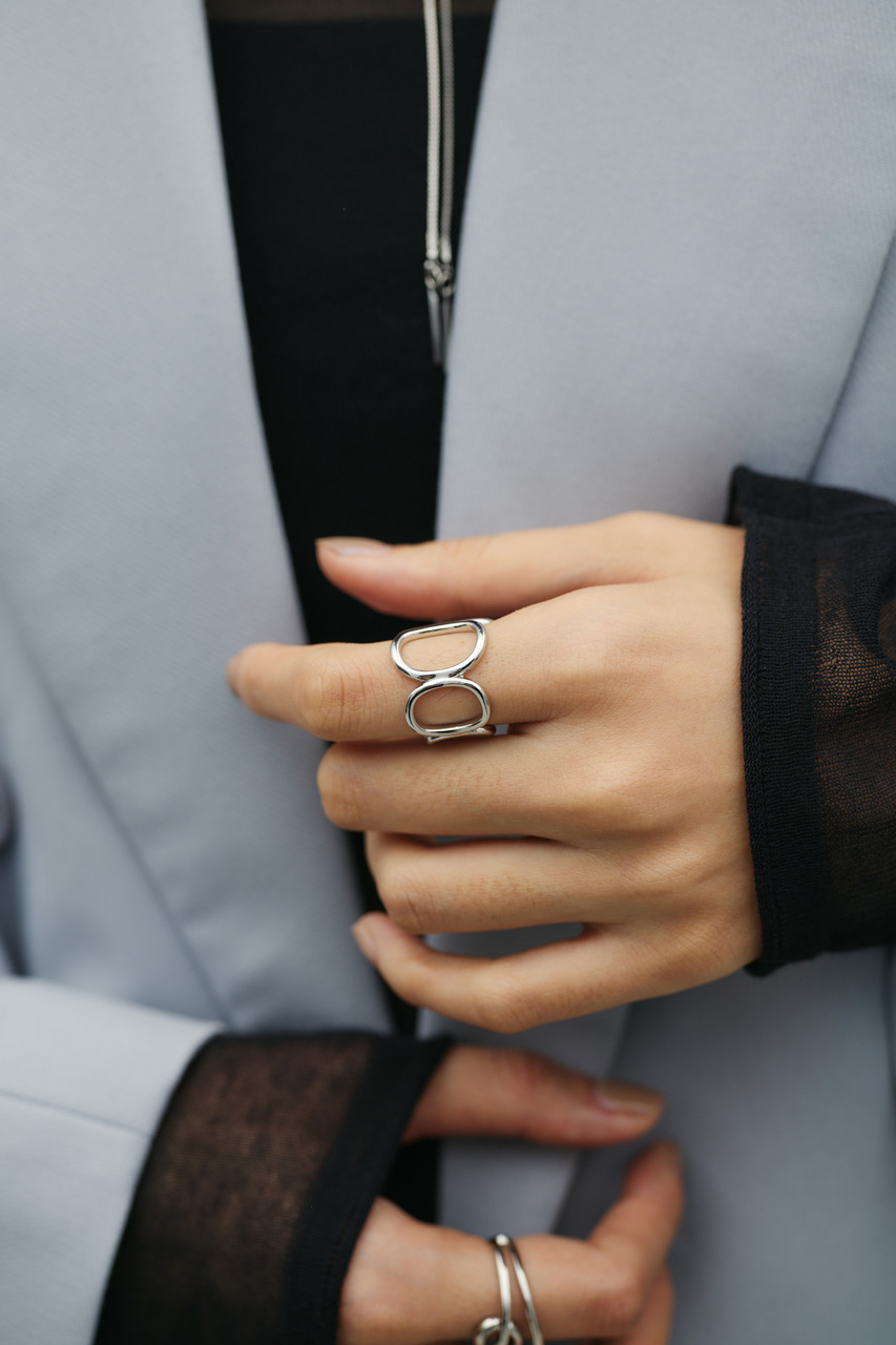 アーティスティックなデザインがモードなリング。1つで存在感のある主役アクセサリーです。