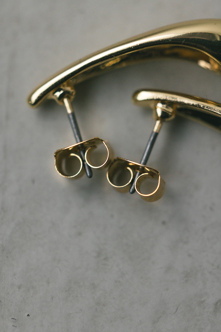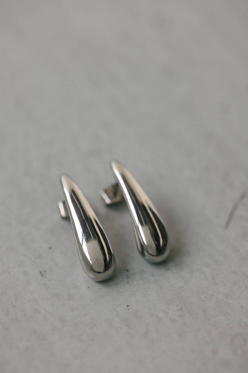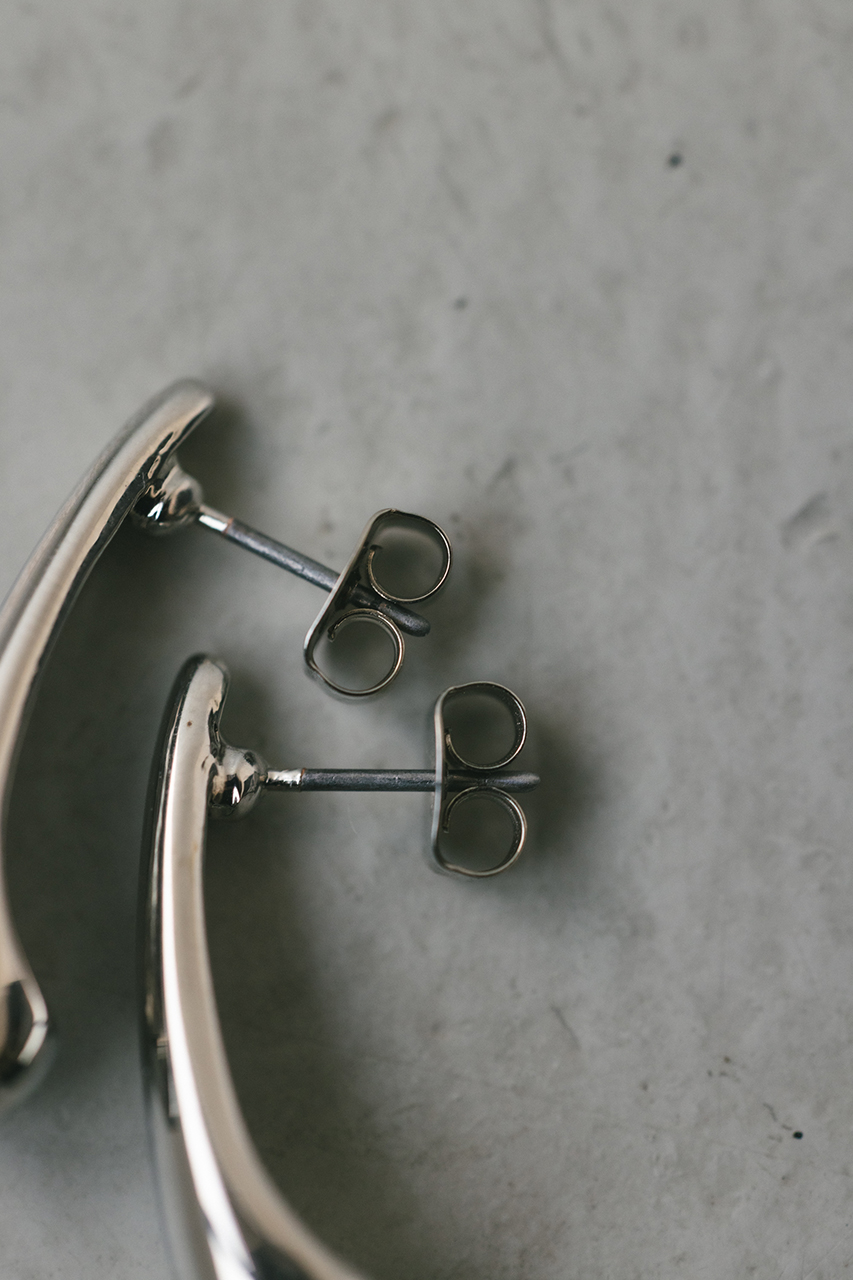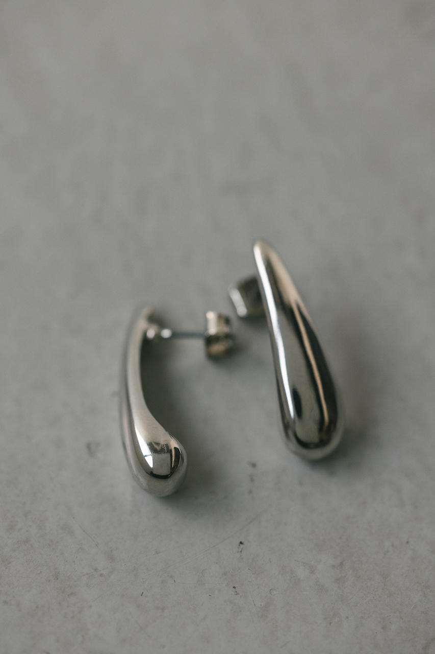 シンプルながら存在感のあるピアス。1つでモードなスタイリングに導きます。