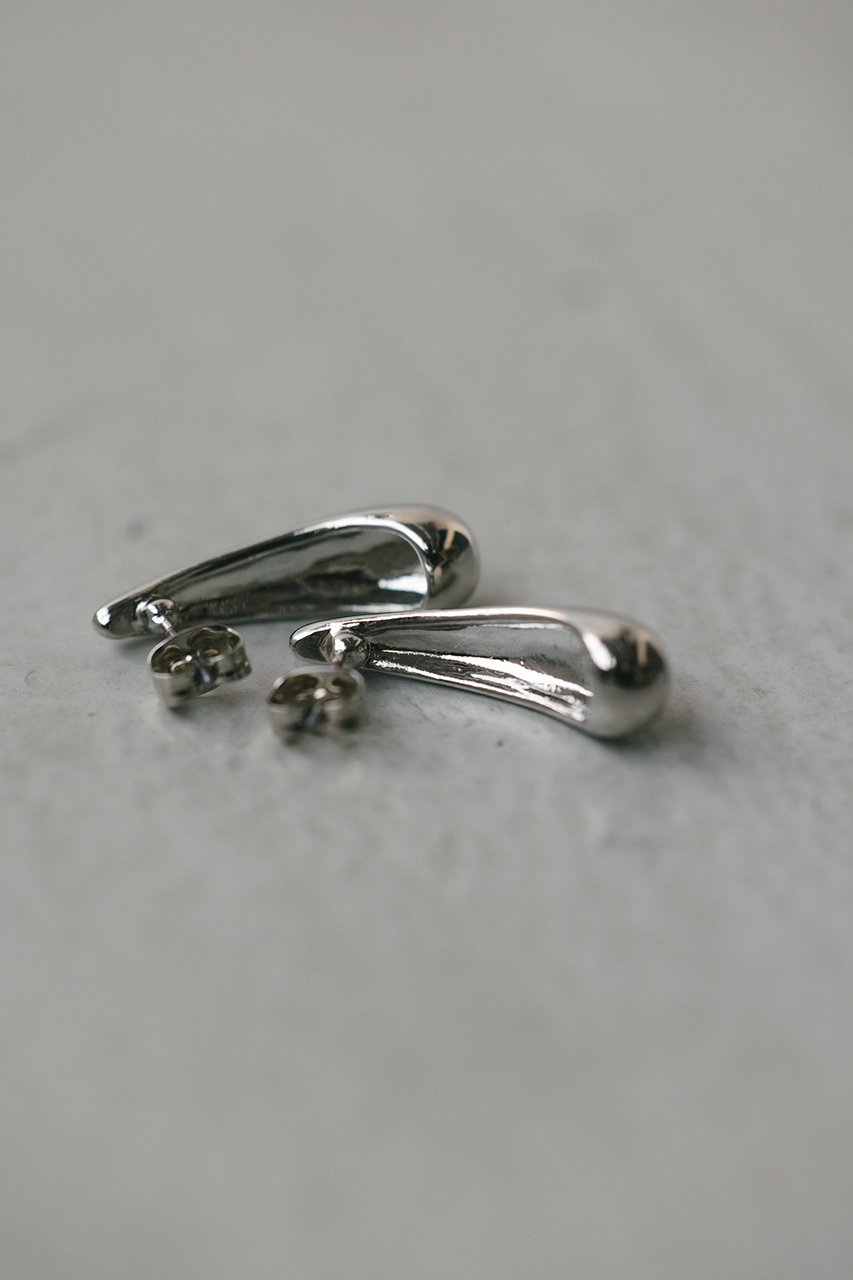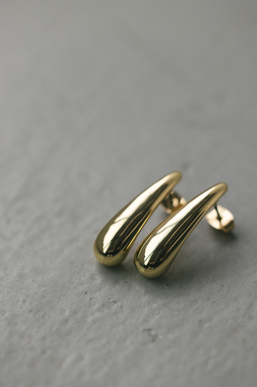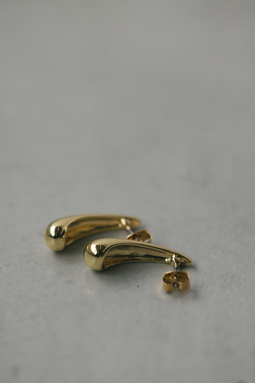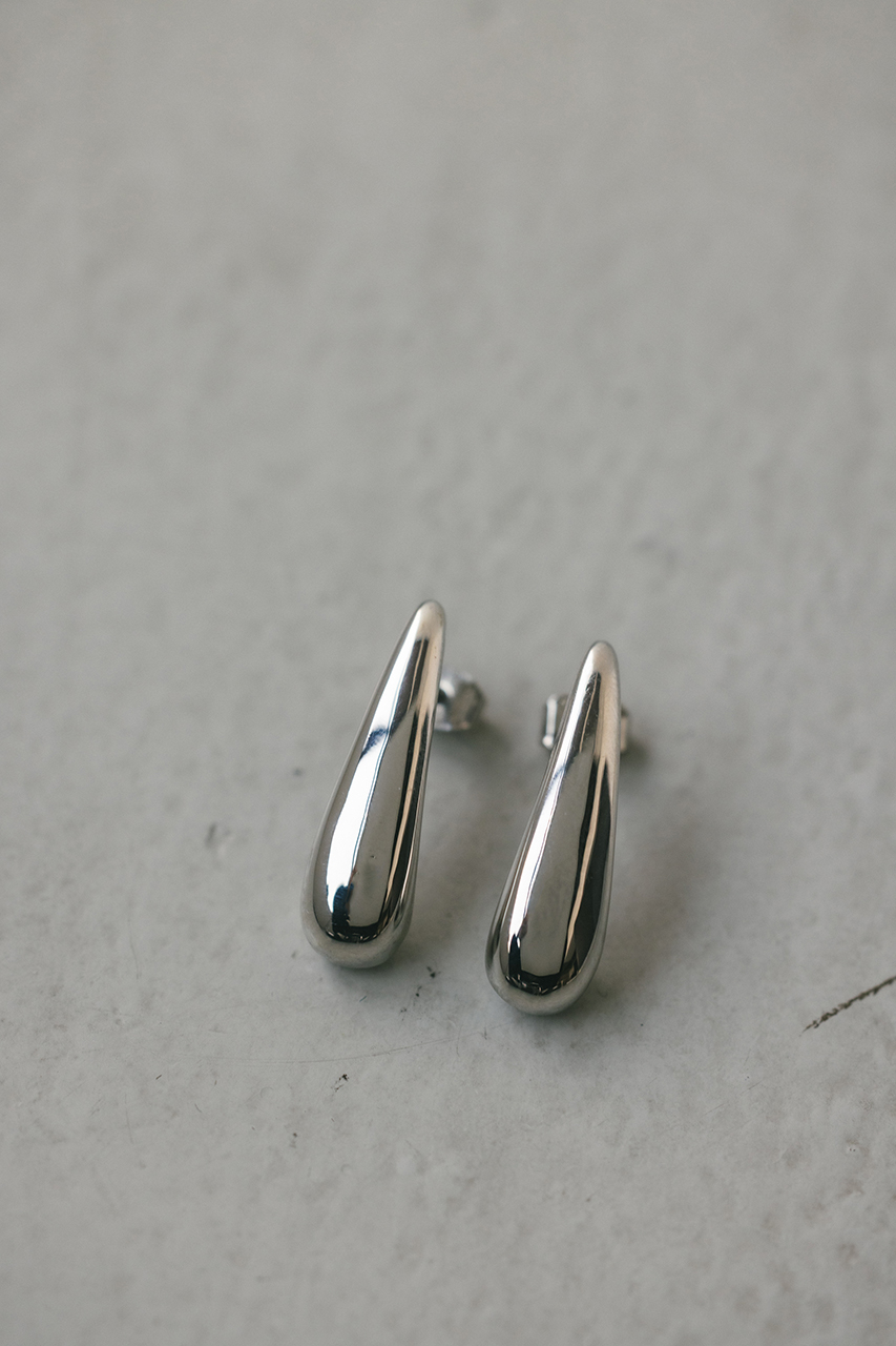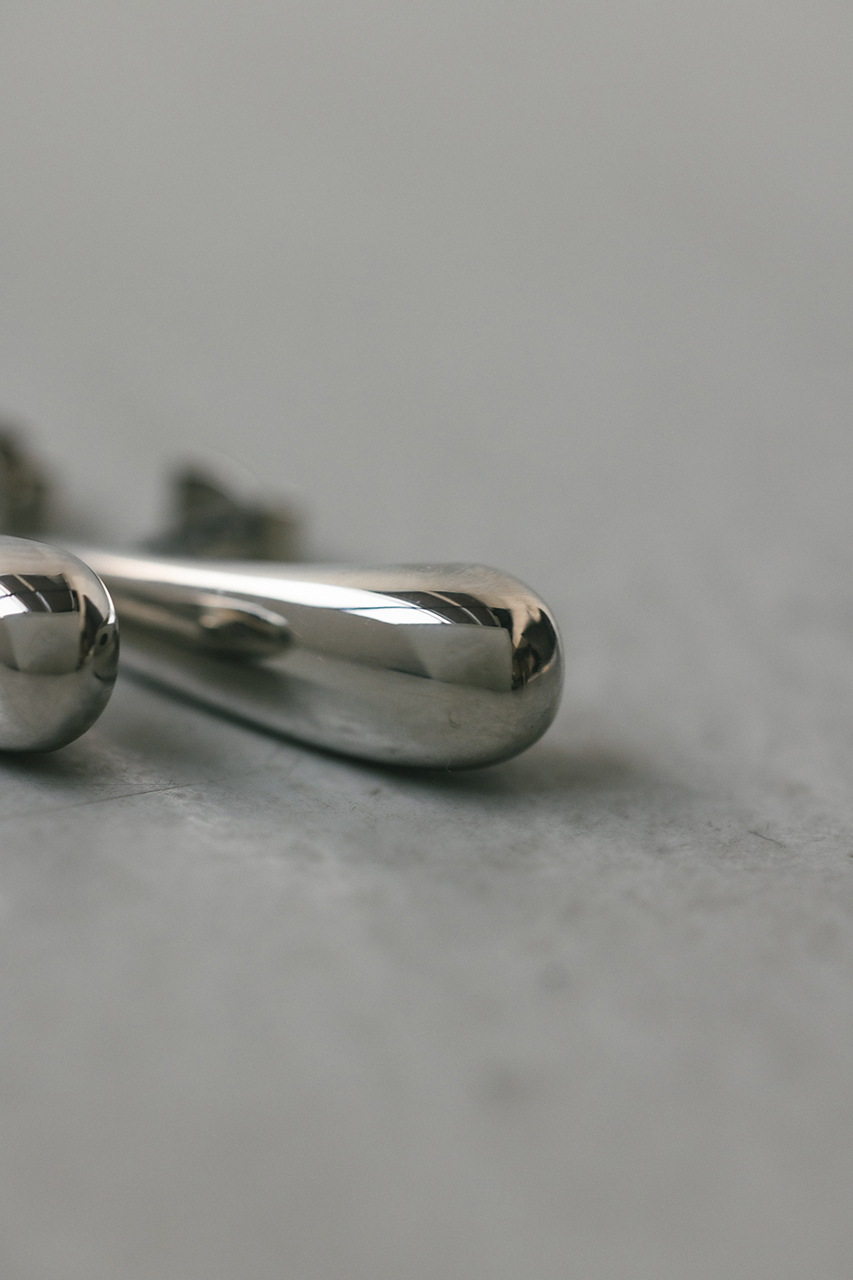 シンプルながら存在感のあるピアス。1つでモードなスタイリングに導きます。