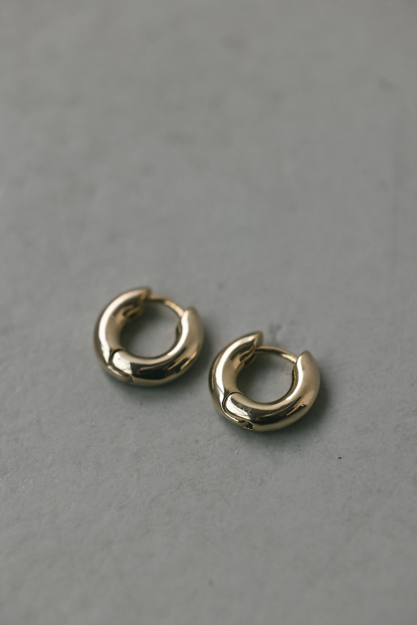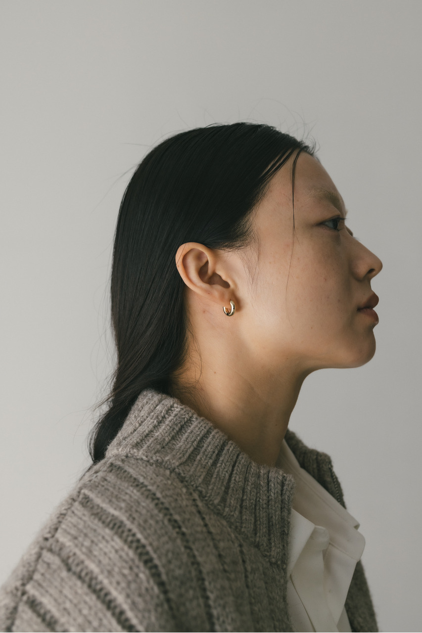 人気のミニマルピアス。程よい存在感と丸みのあるフォルムで、幅広いスタイリングに良く合います。
