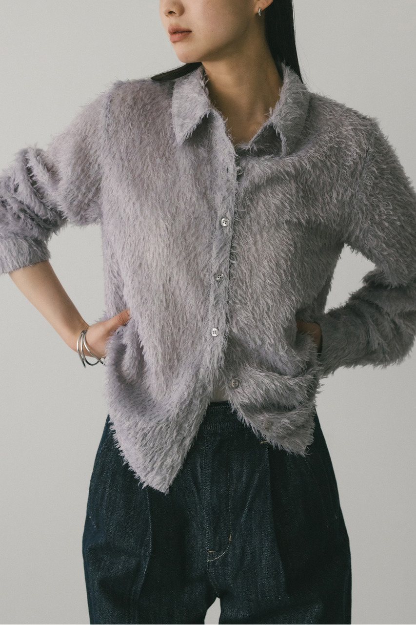 柔らかく肌触りの良い生地で着心地が良く、フェザーの素材感が上品でかわいらしいシャツ。シアーにフェザーの質感が加わり、ふんわりとした柔らかさをさらに演出。羽織にもニットのインナーにも使いやすいサイズのシャツに仕上げました。トレンド感とエレガントさを兼ね備えた一枚です。透け感あり、ストレッチなし。