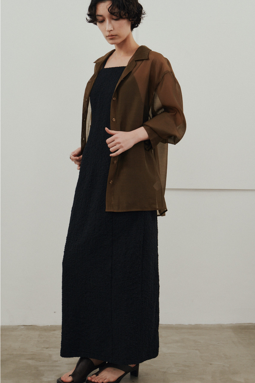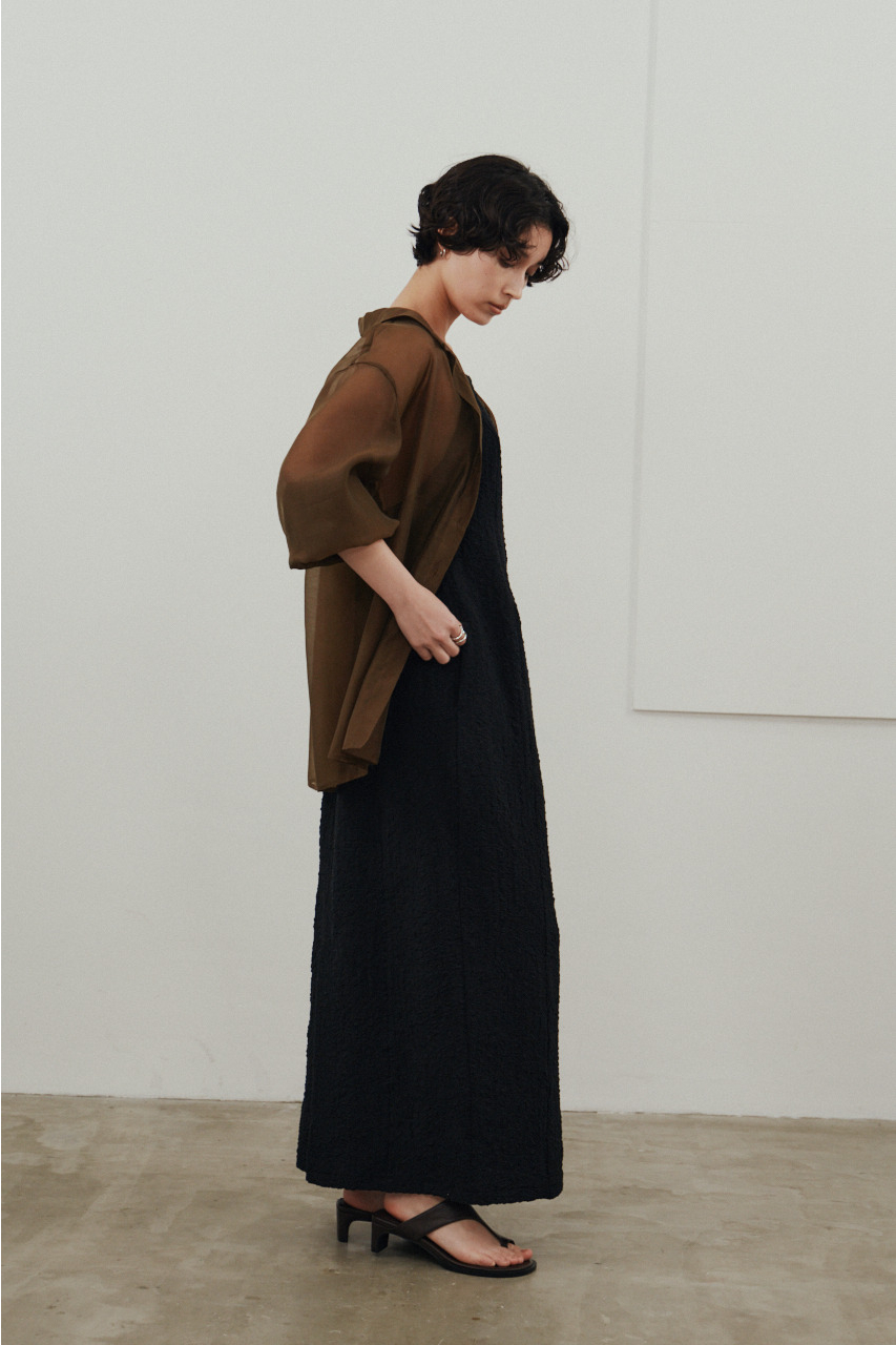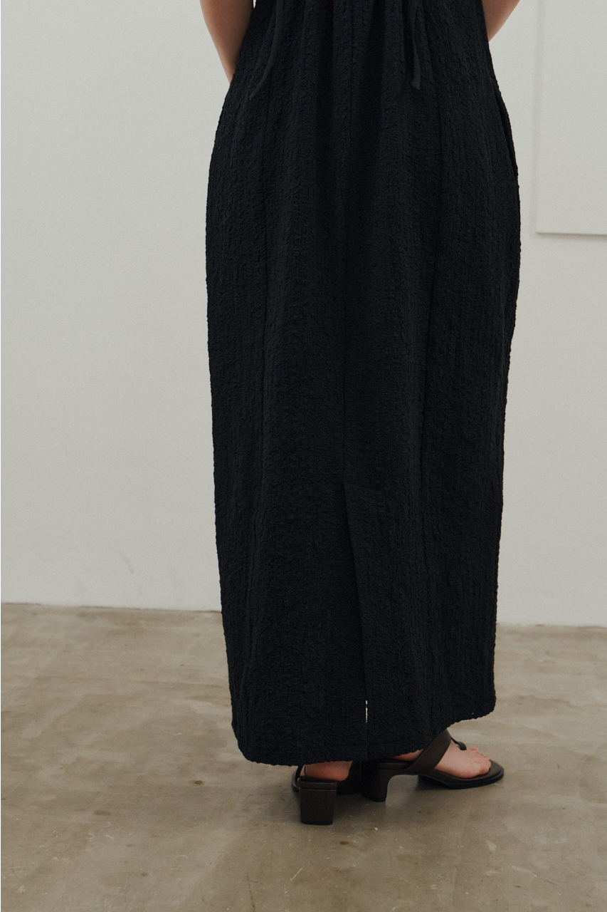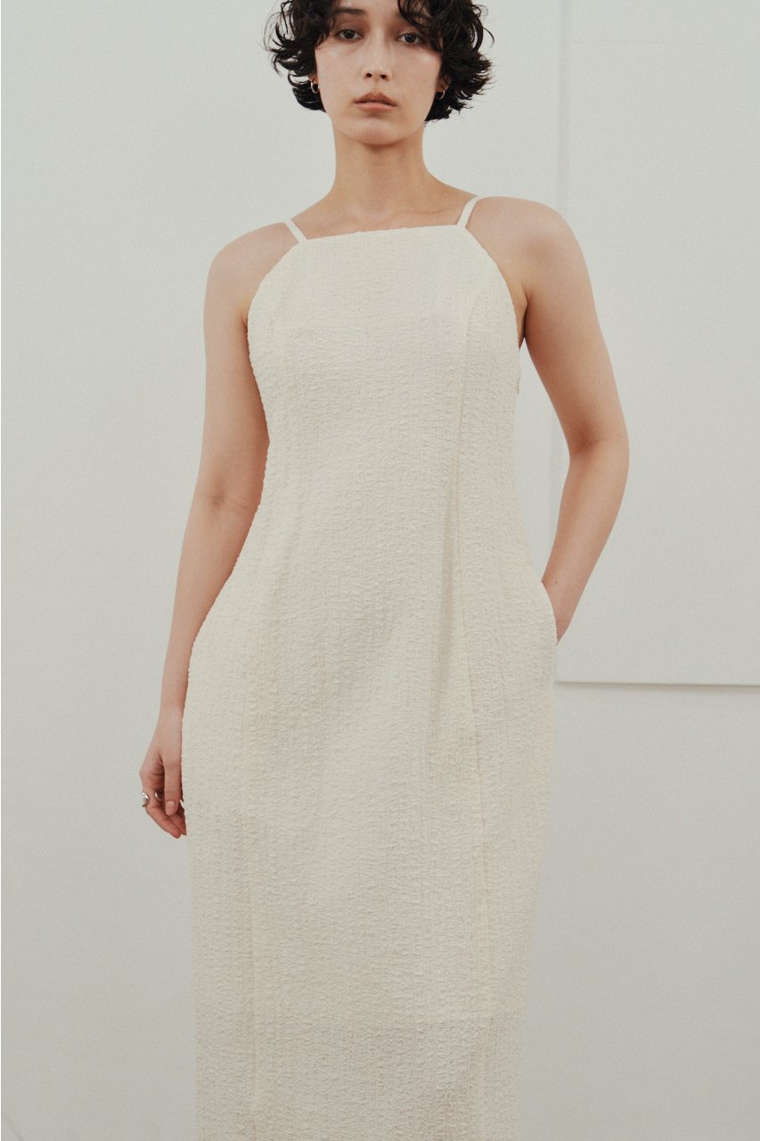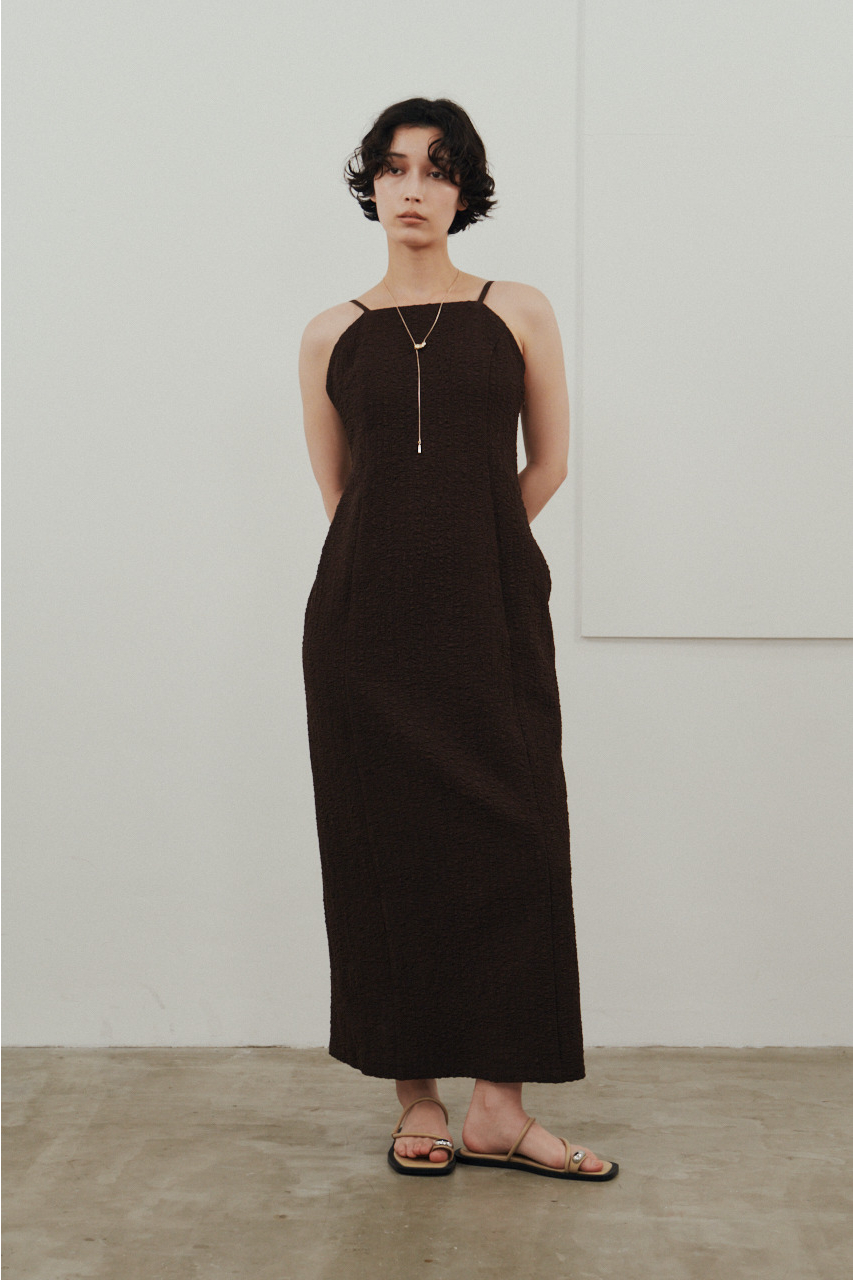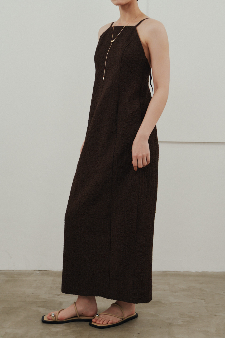背中を大きく開けたバックオープンデザインが印象的なキャミワンピース。シンプルなフロントデザインとのコントラストで、バックスタイルは抜け感と存在感を演出。1枚でドレスライクに着こなすのはもちろん、Tシャツやシアートップスとのレイヤードでカジュアルダウンでの着用もおすすめ。リゾートからタウンユースまで幅広く活躍する、主役級の一枚です。