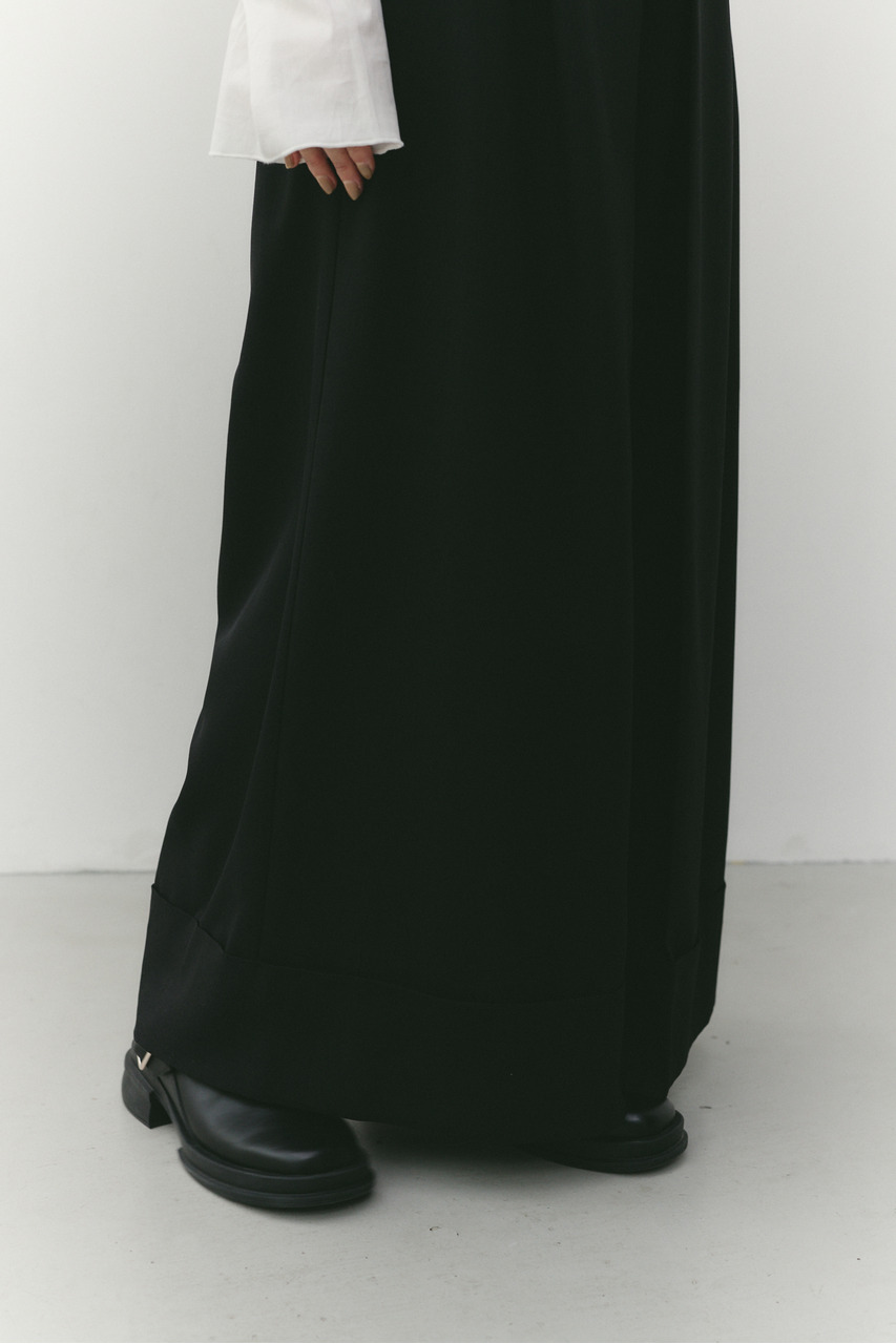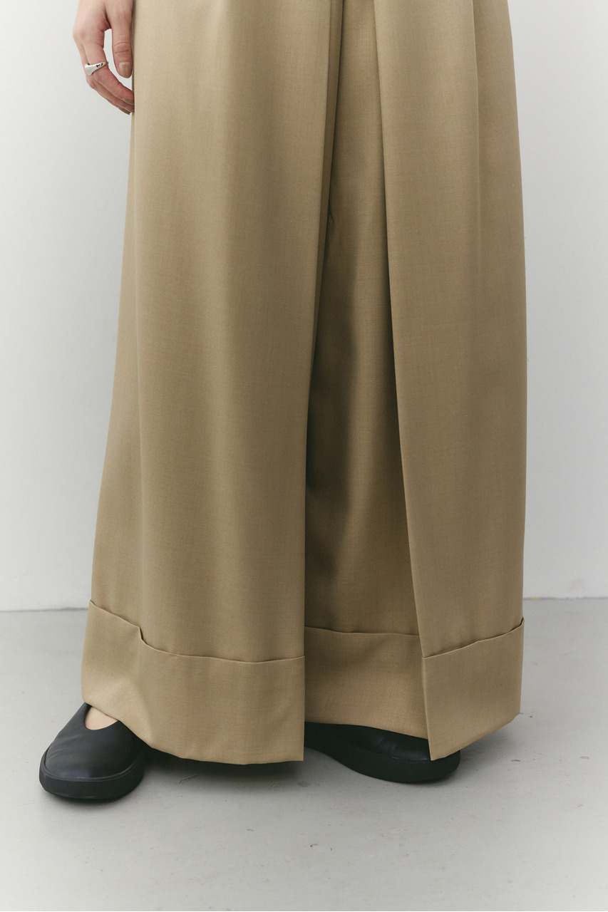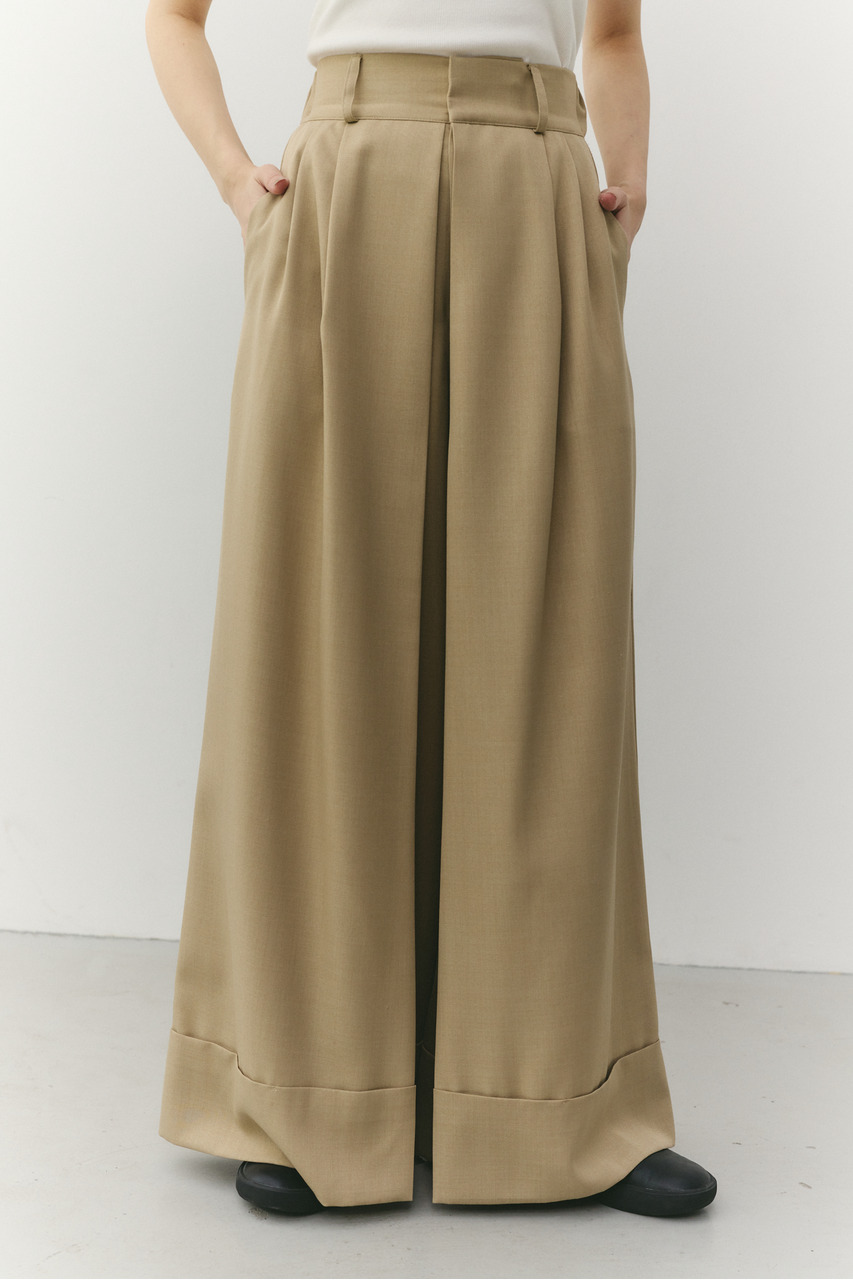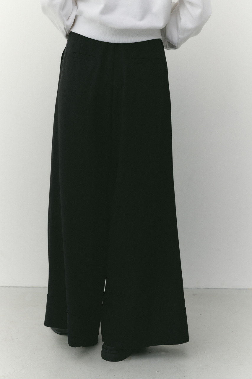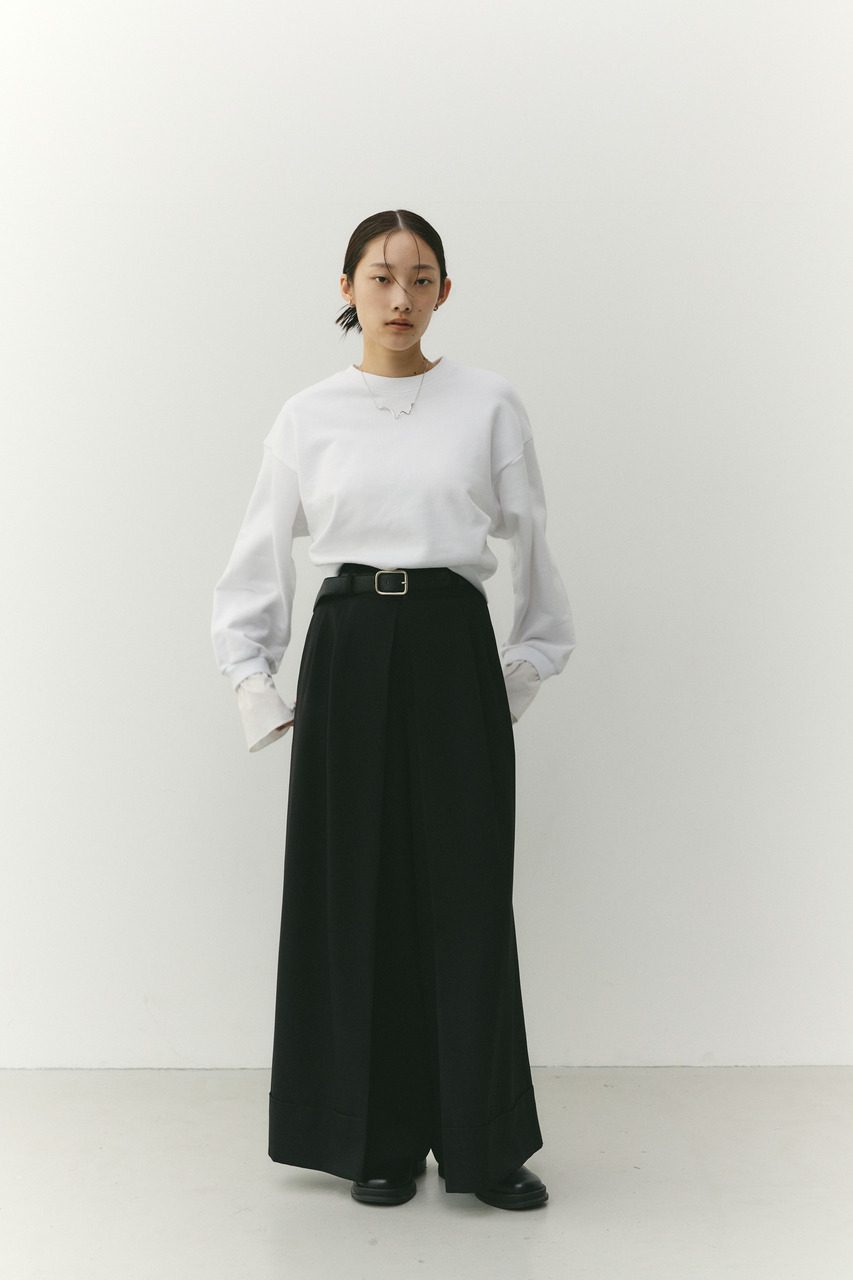 フロントタックとロールのビックデティールが可愛いワイドパンツ。スタイリングに映えるデティールで落ち着いた大人っぽい印象に導きます。ウエストサイドにゴム仕様でインスタイルでもすっきりとスタイリングして頂けます。透け感なし(IVO裏地入り)ストレッチなし。