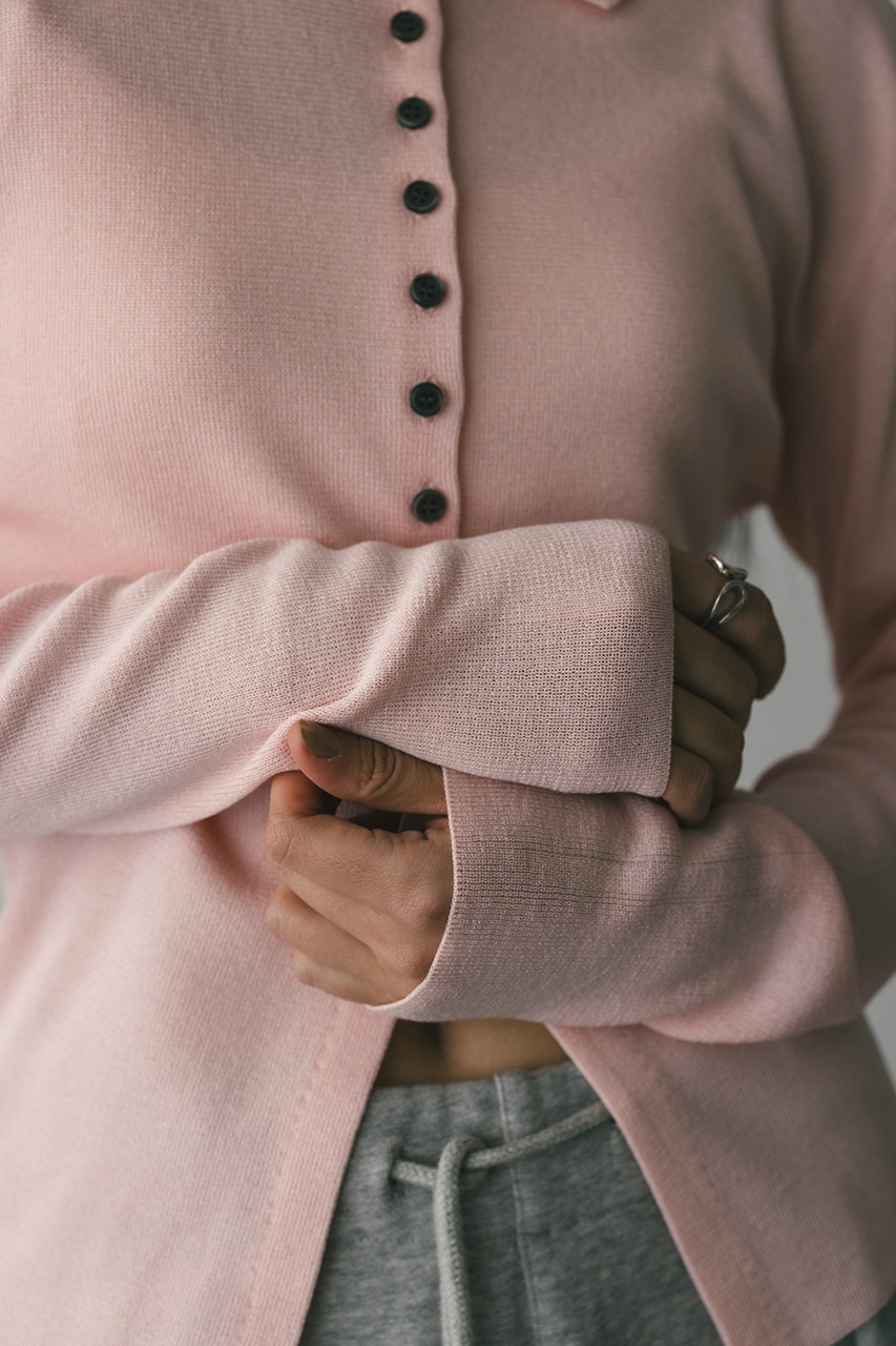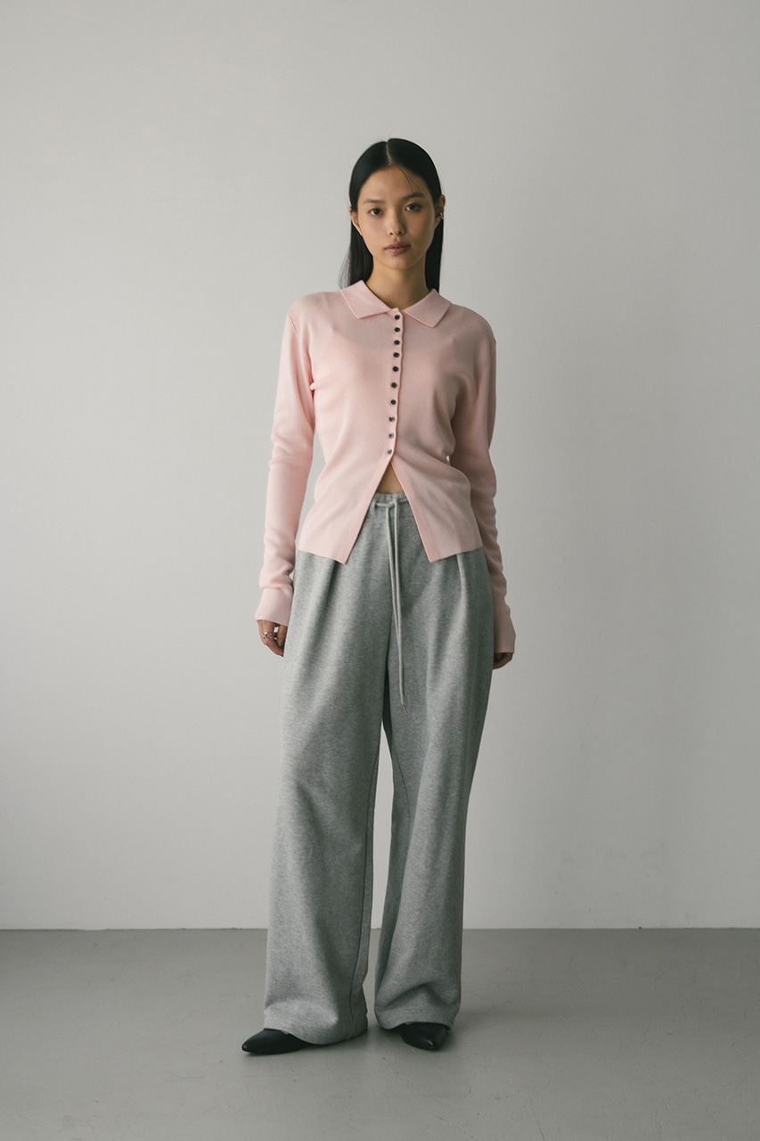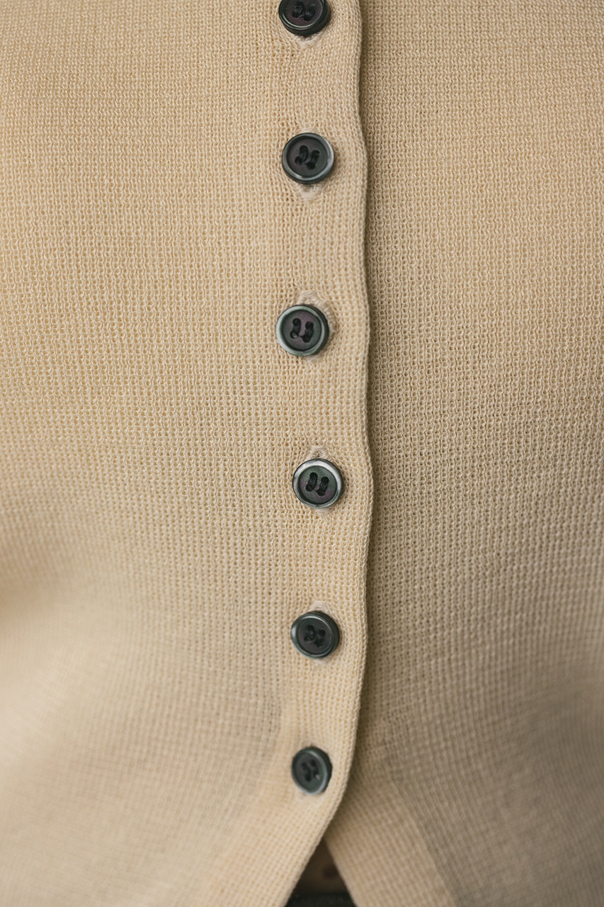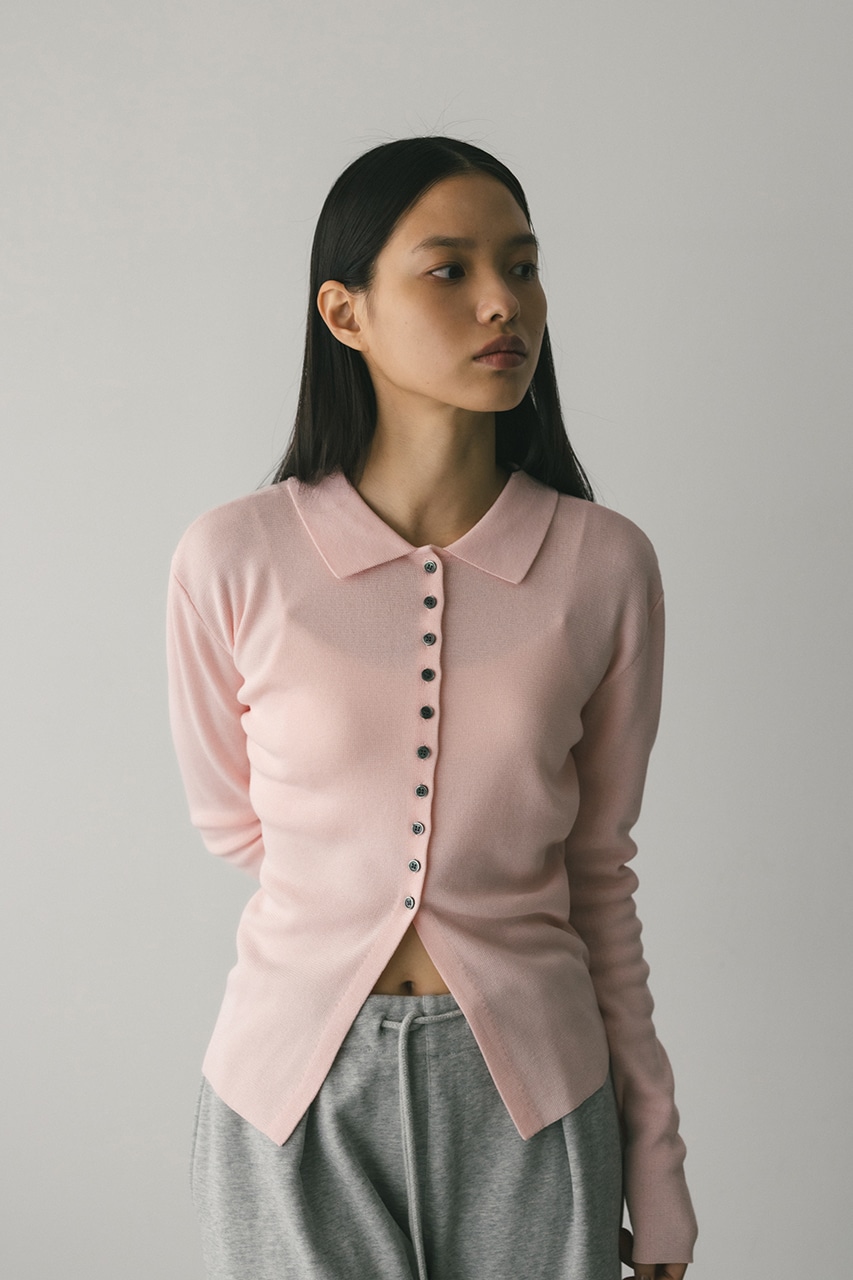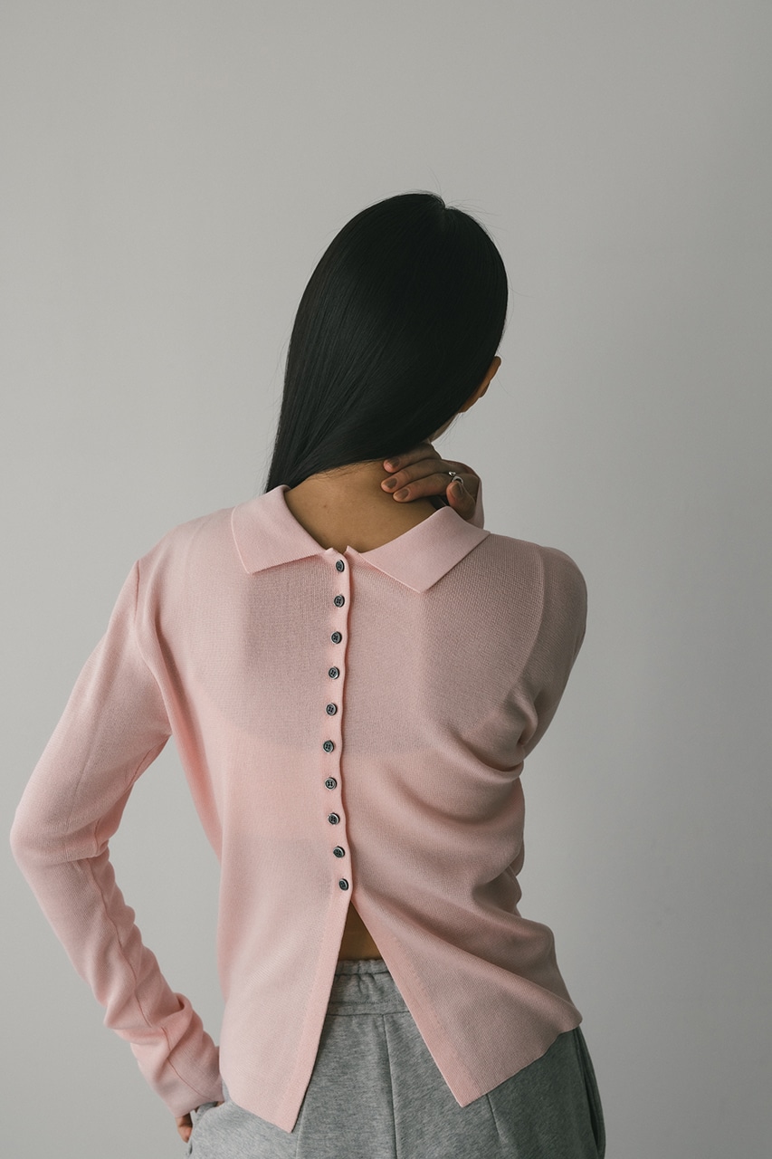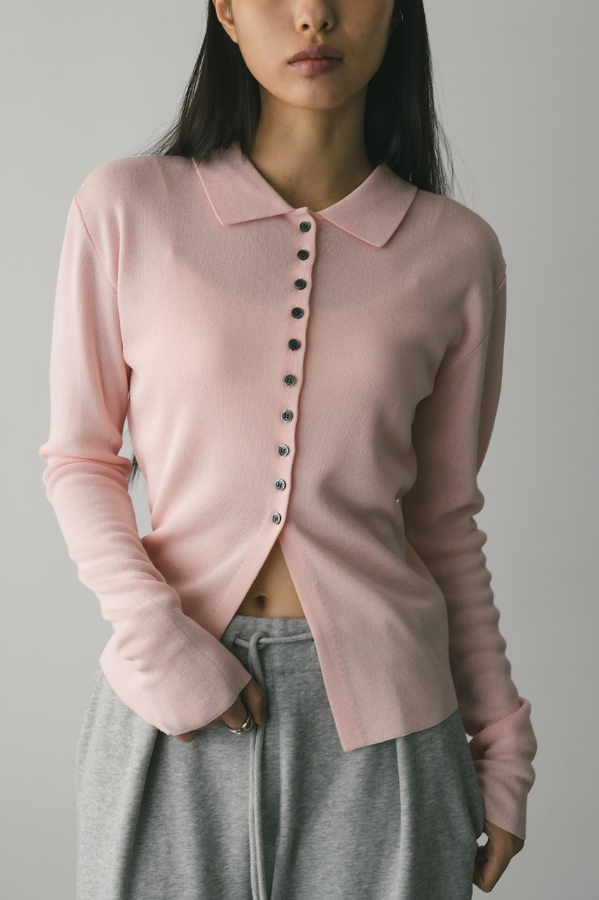 前後2WAYで着用可能なニットポロ。なめらかでさらりとした糸を使用。ビスコース混の微光沢が上品な印象に見せてくれます。総針に編み立てにしているのでボディーラインもひびきにくい一枚です。ストレッチあり、透け感なし。