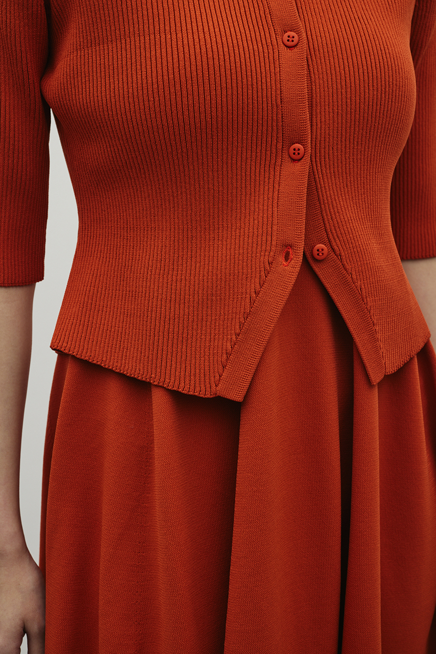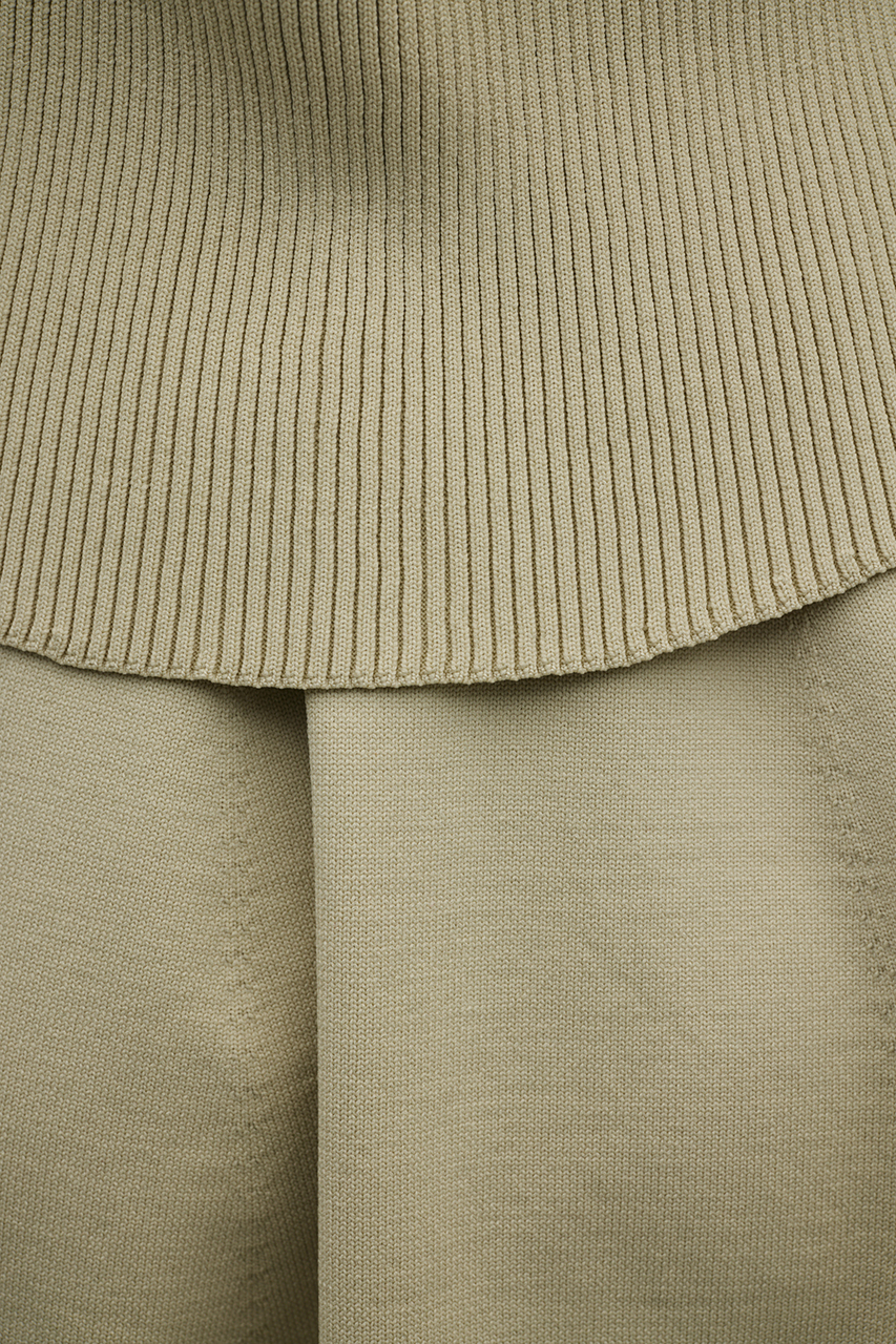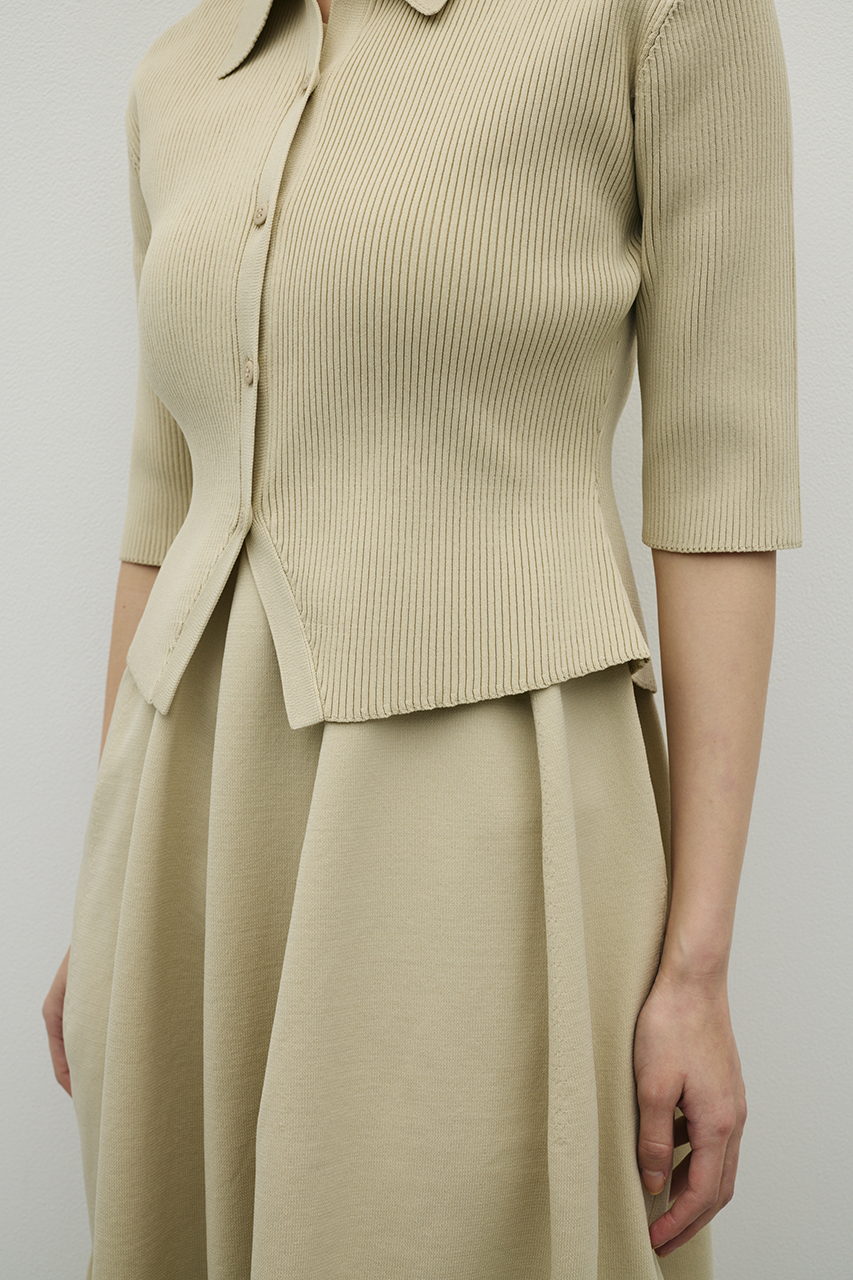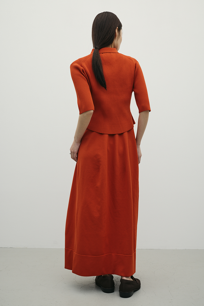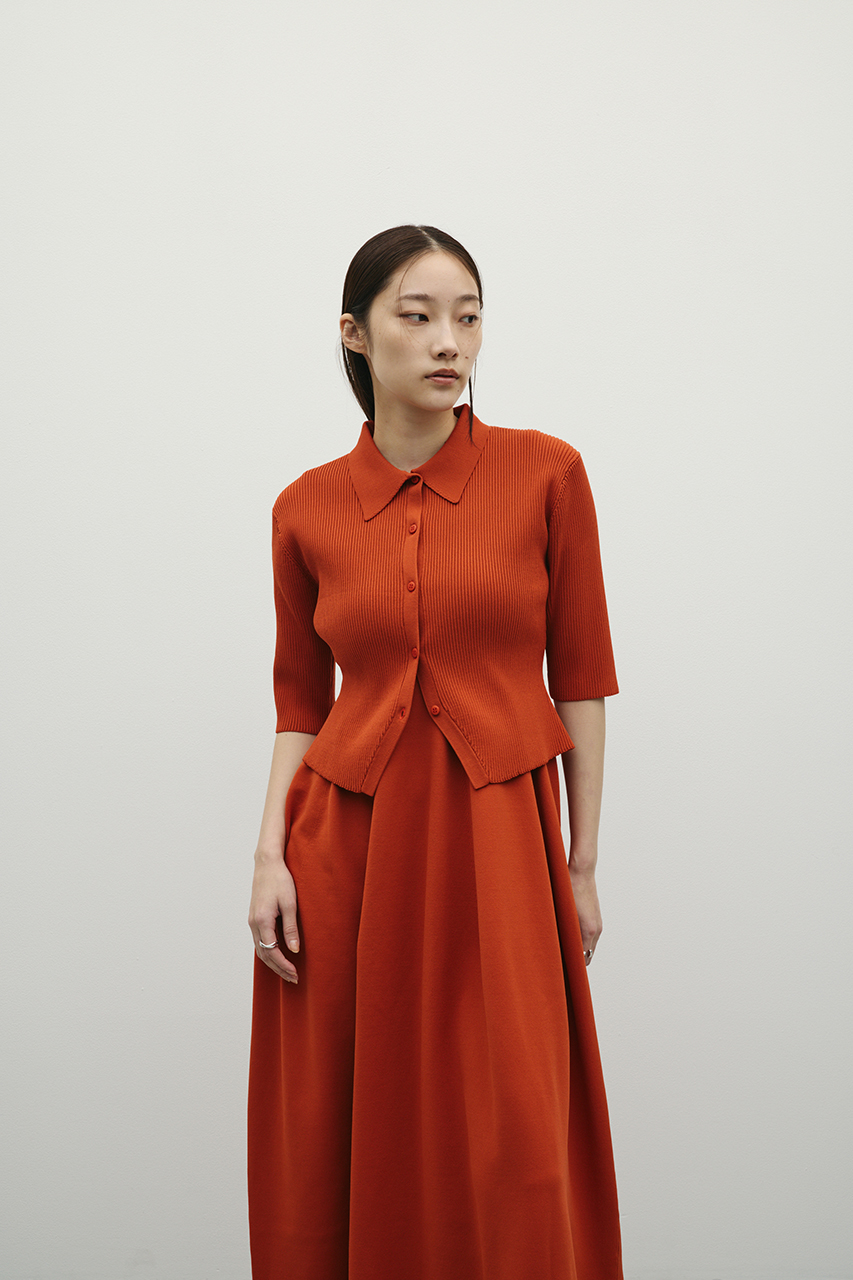 ポロニットとワンピースのセットアイテム。ワンピースはフォルム感のあるスカートシルエットにこだわり、上品でスタイルアップが叶う一枚。しっかりとしたリブ編みで仕上げているのでボディーラインがひびきにくいのもうれしいポイントです。ワンピースはポロニットの上からも着用頂けるので、様々なスタイリングを楽しんでいただけます。ストレッチあり、透け感なし。