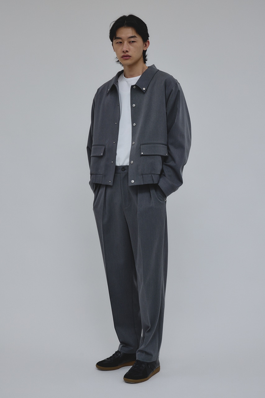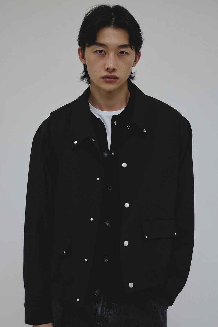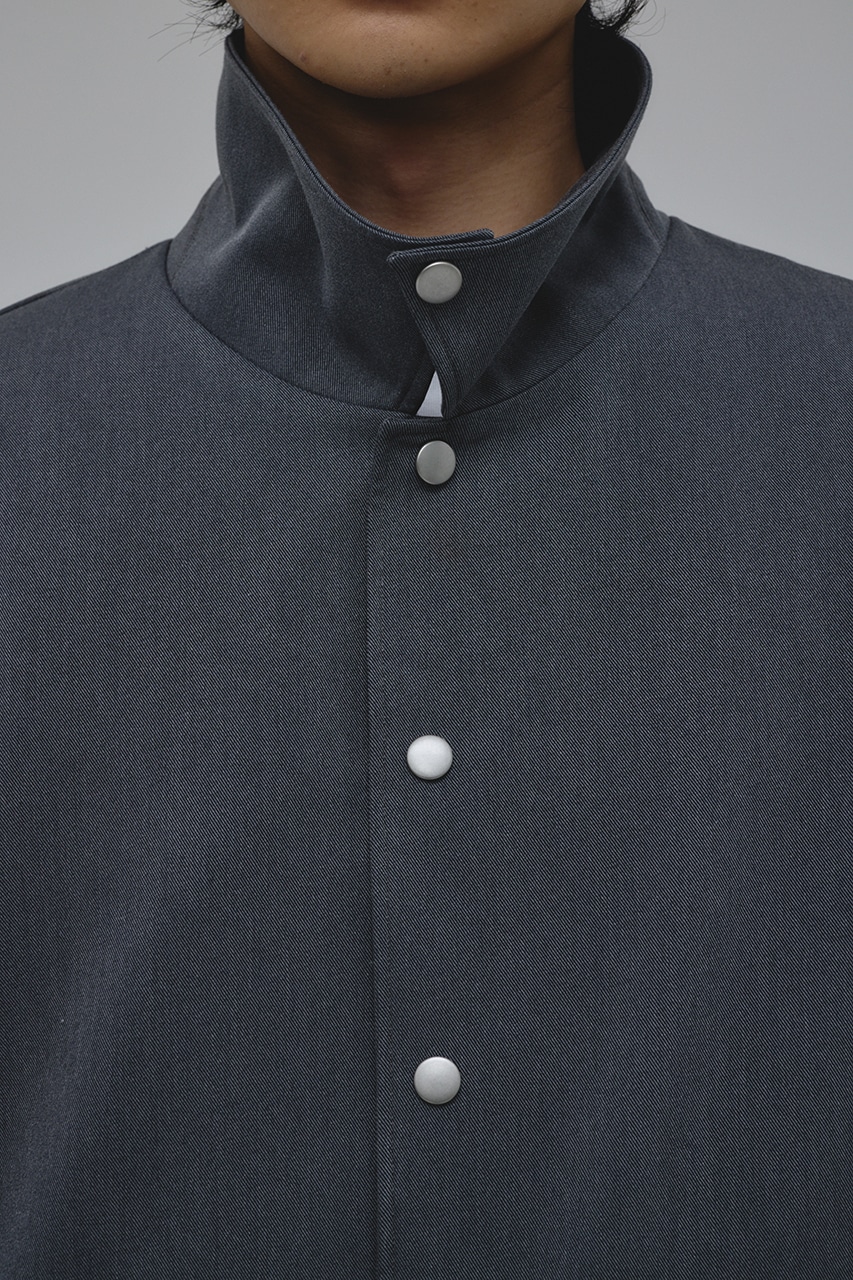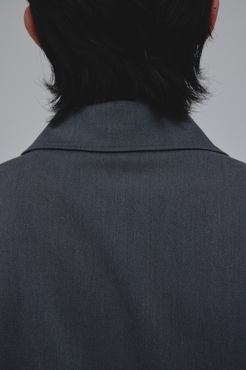 カジュアルながらも綺麗めの表情を持ったウールライクなポリエステルレーヨンツイルを使用したジャケット。コンパーチブル仕様の衿はボタンを留めることでスタンドカラーでの着用も可能。バックスタイルはライダースジャケットに見られるアクジョンギャザーで動き易さも兼ね揃えています。501IAK30-0101(サイドジップパッファーベスト)、501IAK31-0061(2タックテーパードパンツ)とセットアップ着用可能。ストレッチなし、透け感無し。