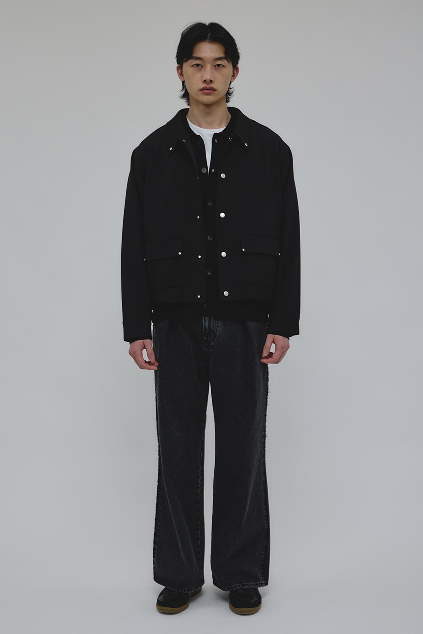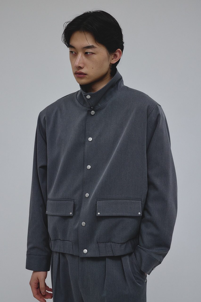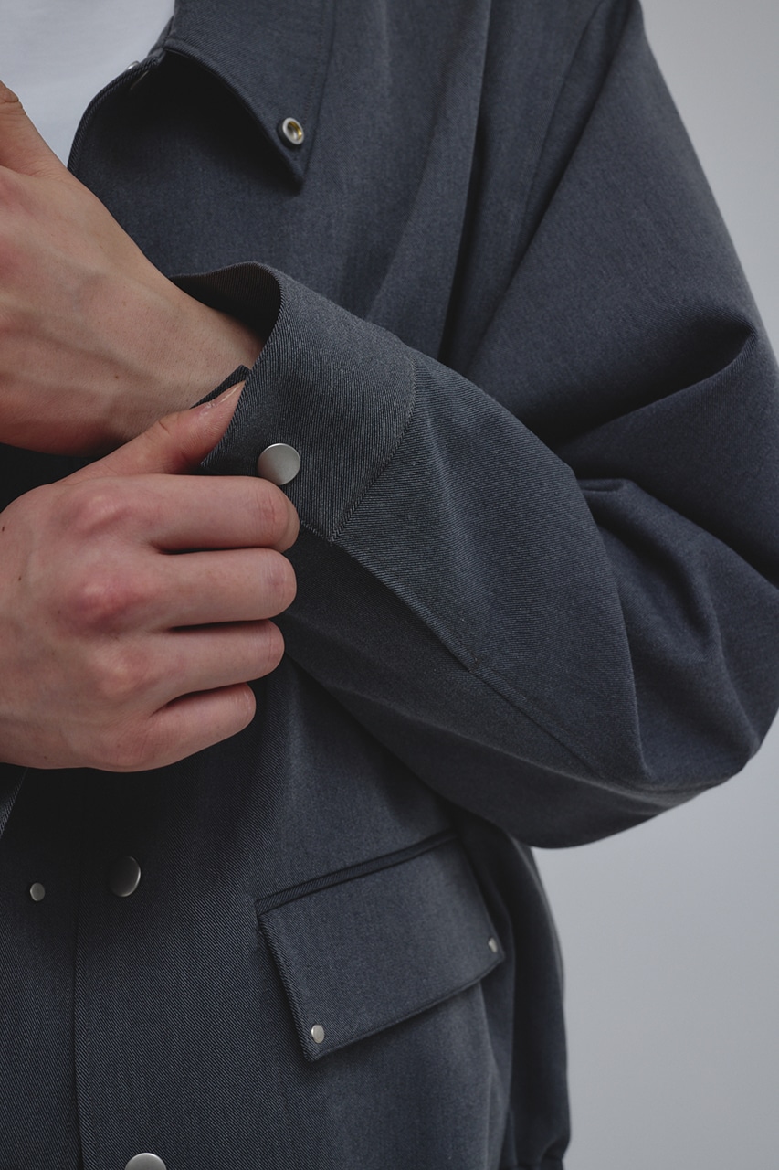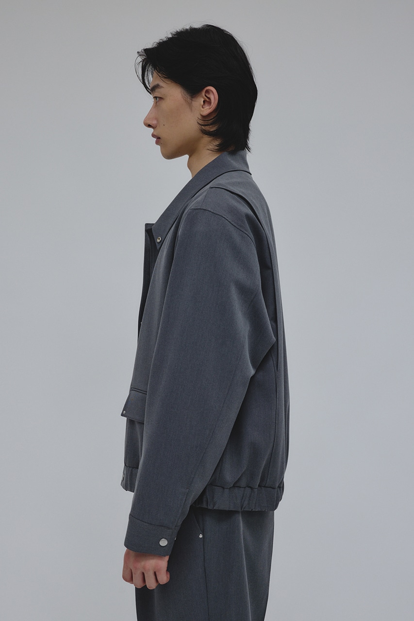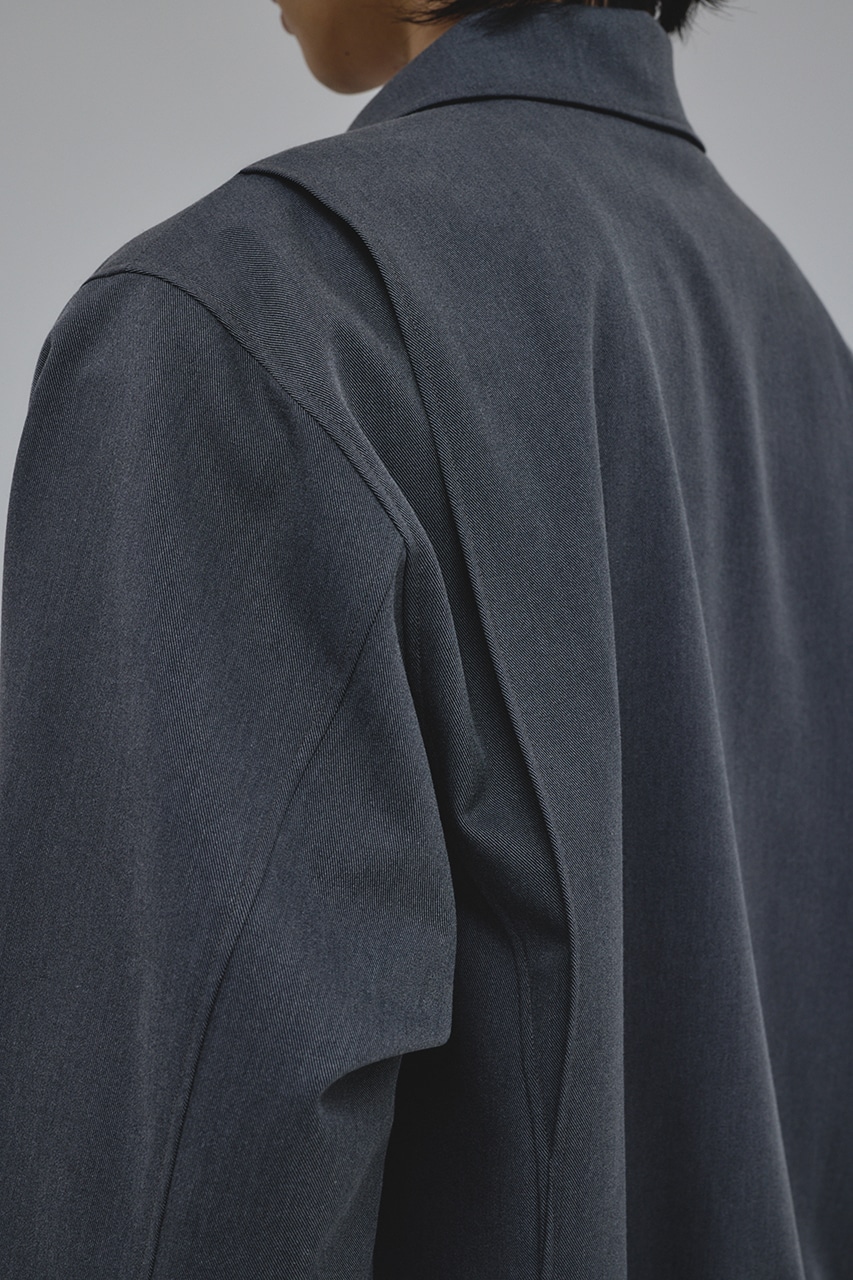 カジュアルながらも綺麗めの表情を持ったウールライクなポリエステルレーヨンツイルを使用したジャケット。コンパーチブル仕様の衿はボタンを留めることでスタンドカラーでの着用も可能。バックスタイルはライダースジャケットに見られるアクジョンギャザーで動き易さも兼ね揃えています。501IAK30-0101(サイドジップパッファーベスト)、501IAK31-0061(2タックテーパードパンツ)とセットアップ着用可能。ストレッチなし、透け感無し。