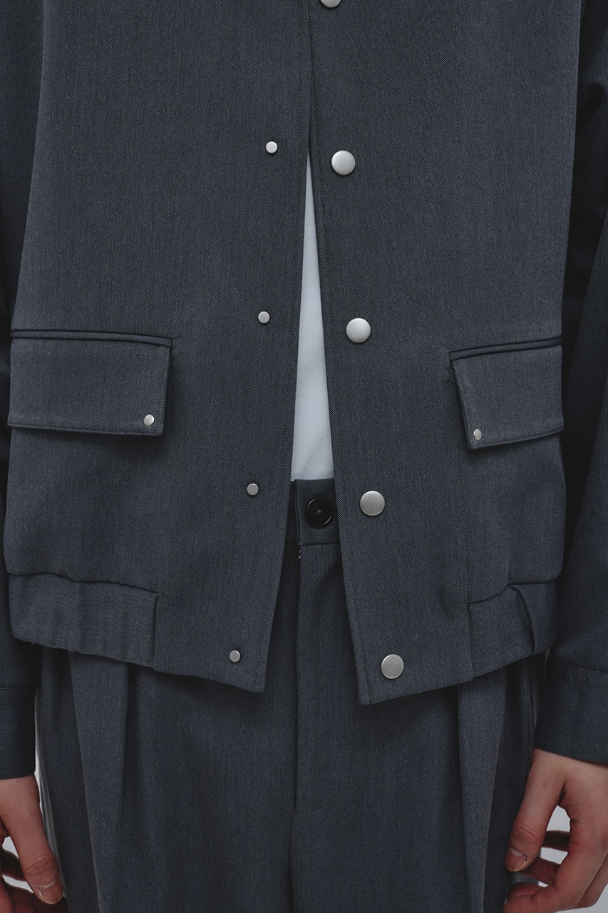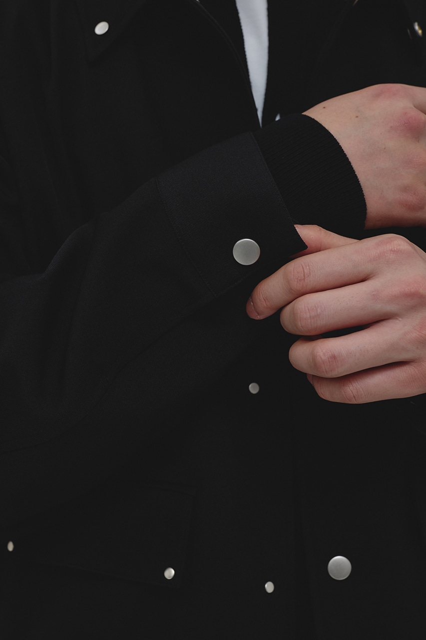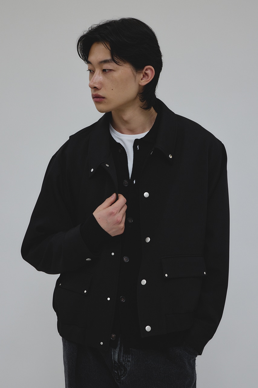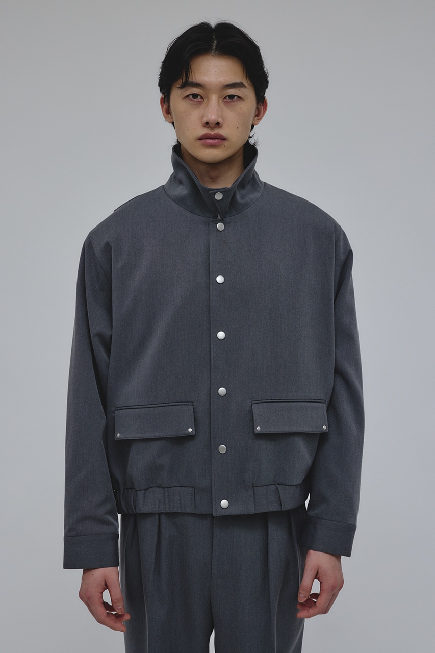 カジュアルながらも綺麗めの表情を持ったウールライクなポリエステルレーヨンツイルを使用したジャケット。コンパーチブル仕様の衿はボタンを留めることでスタンドカラーでの着用も可能。バックスタイルはライダースジャケットに見られるアクジョンギャザーで動き易さも兼ね揃えています。501IAK30-0101(サイドジップパッファーベスト)、501IAK31-0061(2タックテーパードパンツ)とセットアップ着用可能。ストレッチなし、透け感無し。