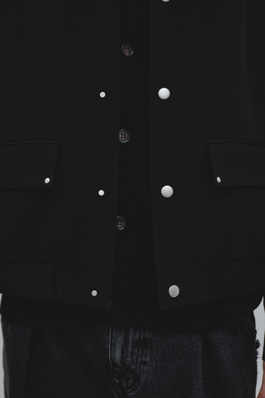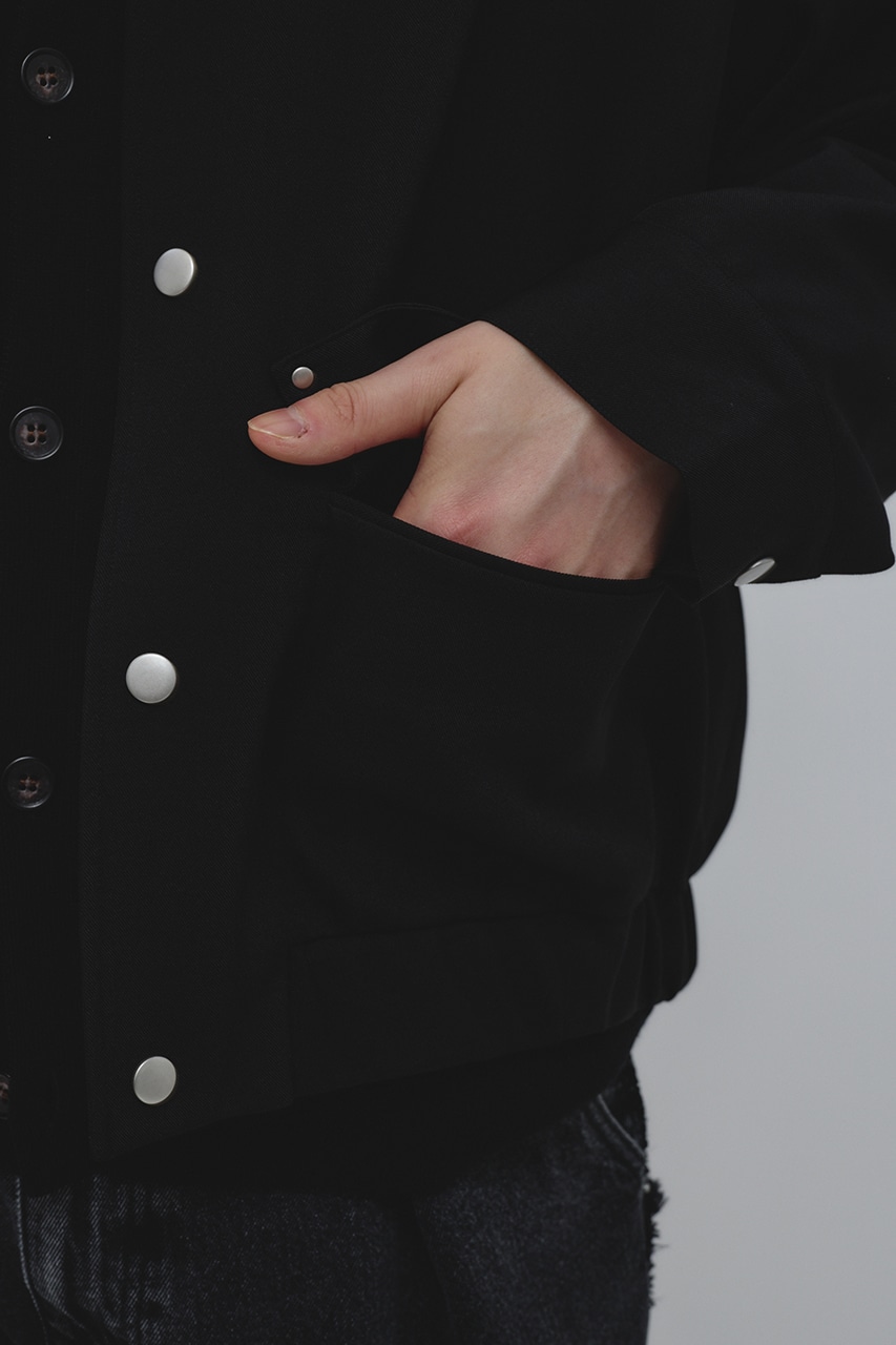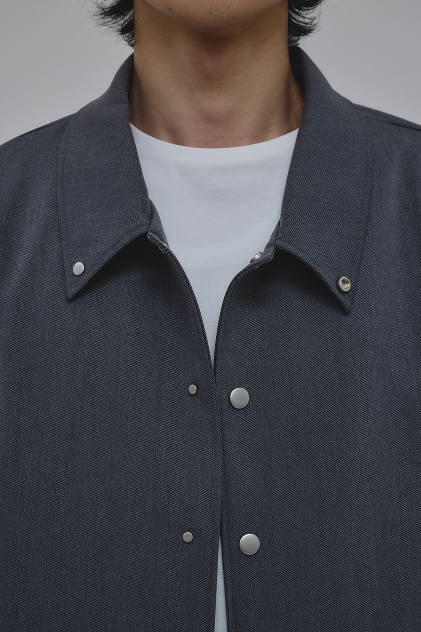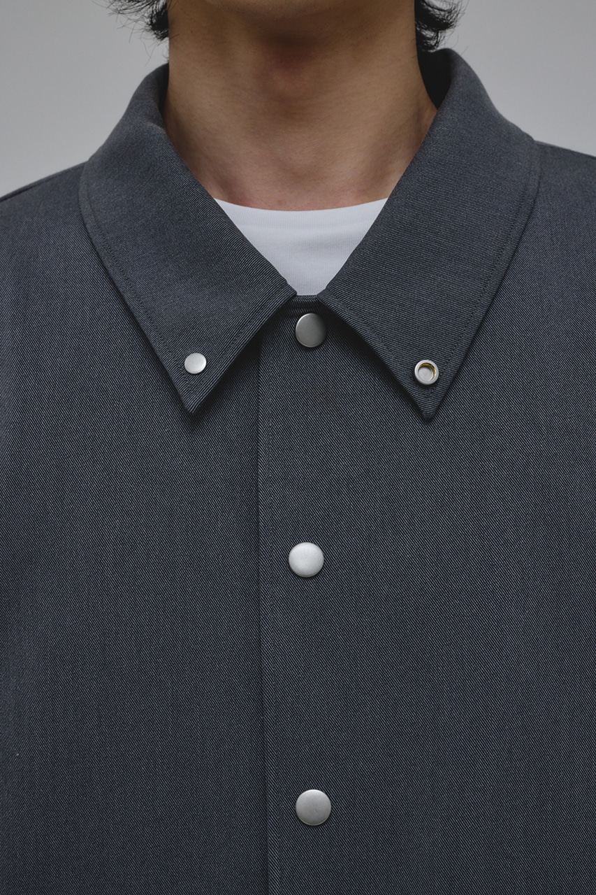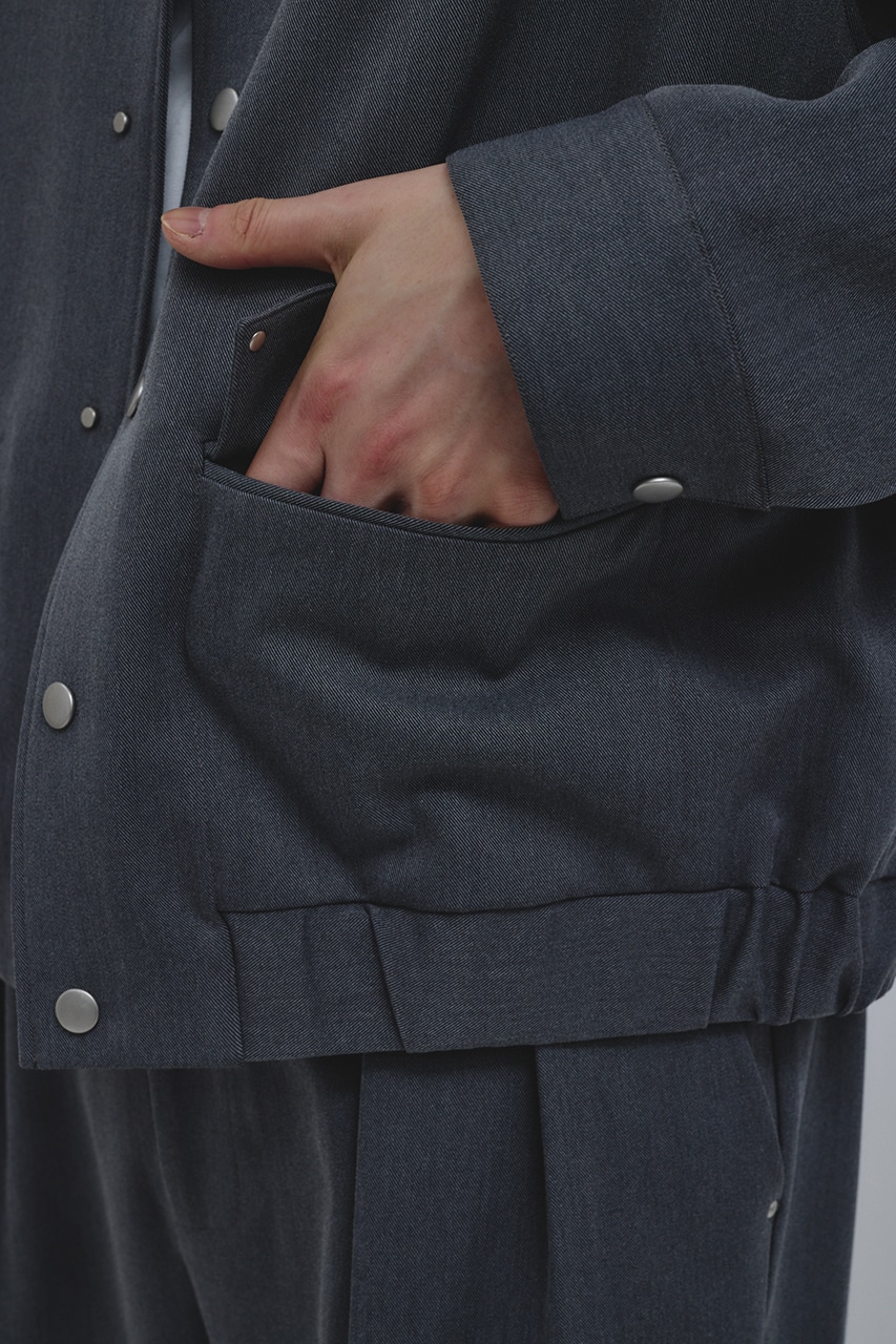 カジュアルながらも綺麗めの表情を持ったウールライクなポリエステルレーヨンツイルを使用したジャケット。コンパーチブル仕様の衿はボタンを留めることでスタンドカラーでの着用も可能。バックスタイルはライダースジャケットに見られるアクジョンギャザーで動き易さも兼ね揃えています。501IAK30-0101(サイドジップパッファーベスト)、501IAK31-0061(2タックテーパードパンツ)とセットアップ着用可能。ストレッチなし、透け感無し。