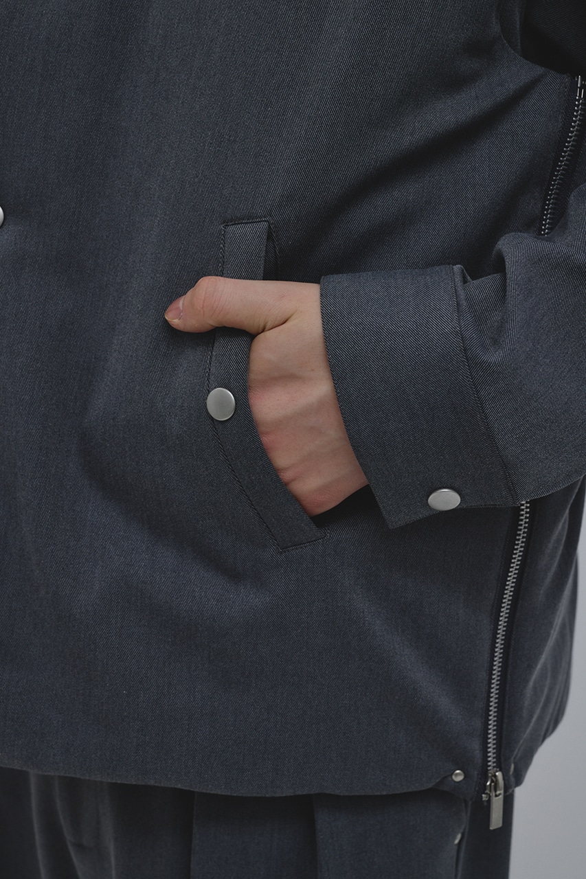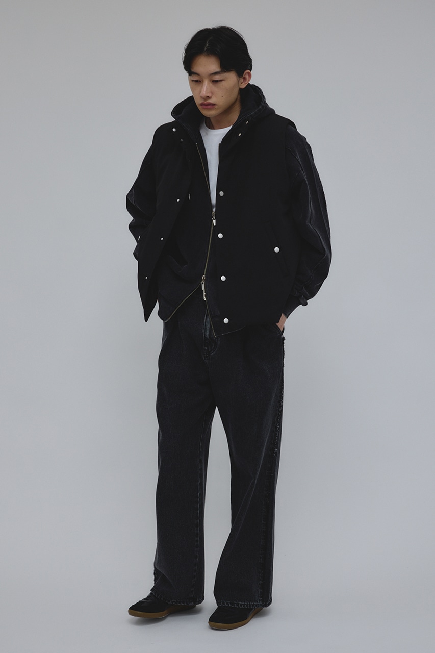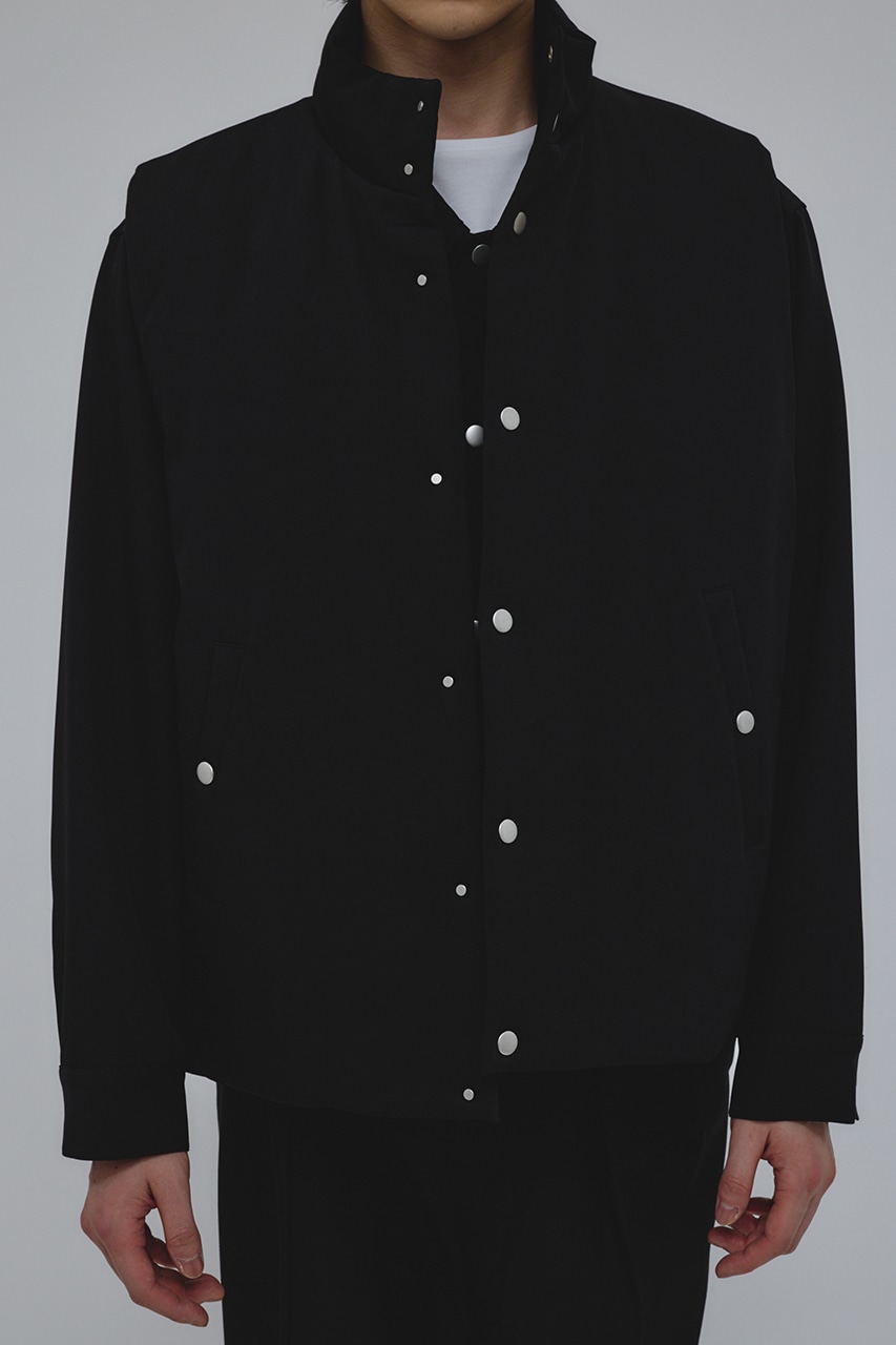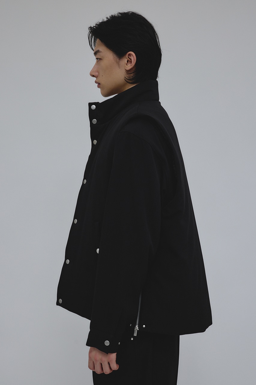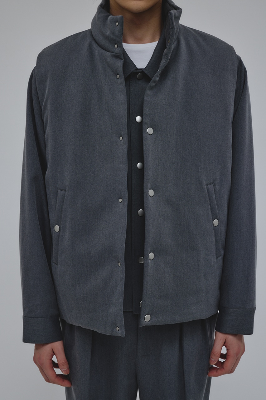 カジュアルながらも綺麗めの表情を持ったウールライクなポリエステルレーヨンツイルを使用したベスト。サイドファスナーの開閉で多様なスタイリングやレイヤードが楽しめます。ニットやカットソー、ジャケットの上からでも重ね着出来る汎用性の高さがポイントです。501IAK30-0091(シャーリングヘムジャケット)、501IAK31-0061(2タックテーパードパンツ)とセットアップ着用可能。ストレッチなし、透け感無し。