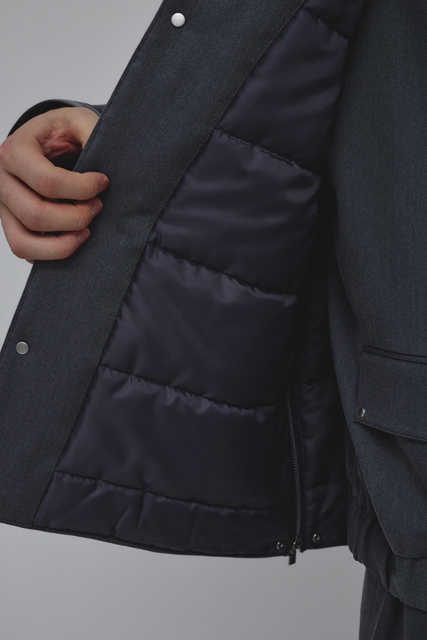 表地:ポリエステル81% レーヨン17% ポリウレタン2% 中わた:ポリエステル100% 裏地:ポリエステル100%
