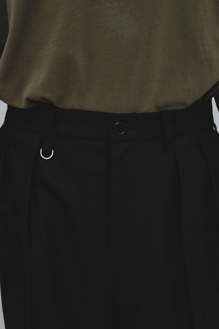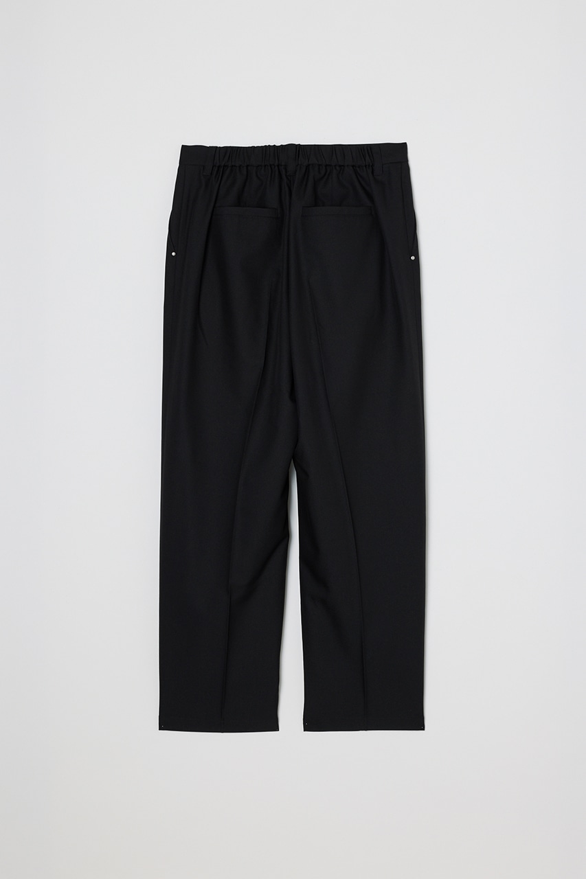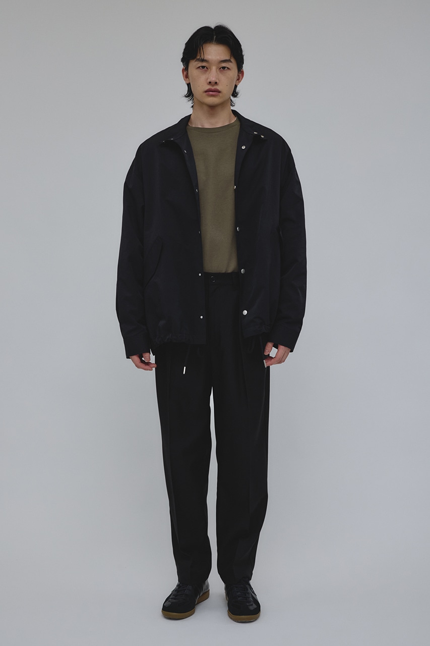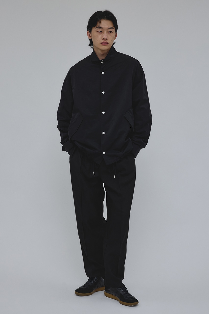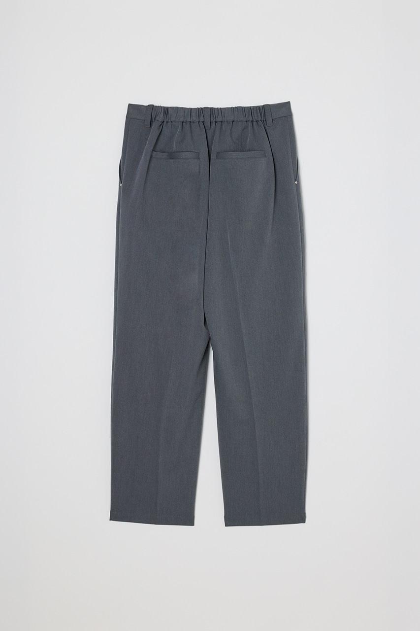 カジュアルながらも綺麗めの表情を持った、ウールライクなポリエステルレーヨンツイルを使用したパンツ。ヒップと渡りにゆとりを持たせたすっきりとしたテーパードシルエットでスタイルアップ出来る一枚。ウエストはシャーリング仕様。ベルト着用も対応可能です。501IAK30-0101(サイドジップパッファーベスト)、501IAK30-0091(シャーリングヘムジャケット)とセットアップ着用可能。ストレッチなし、透け感無し。