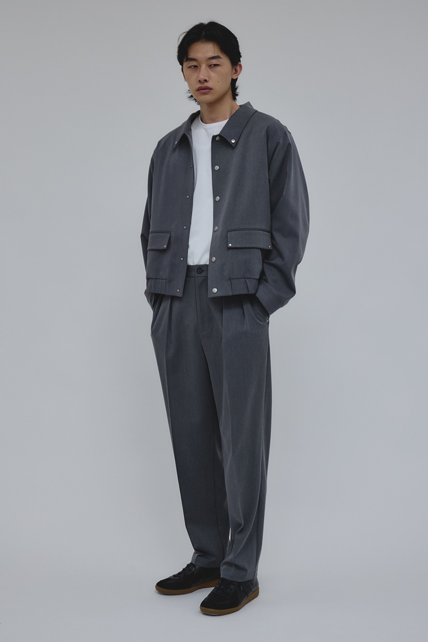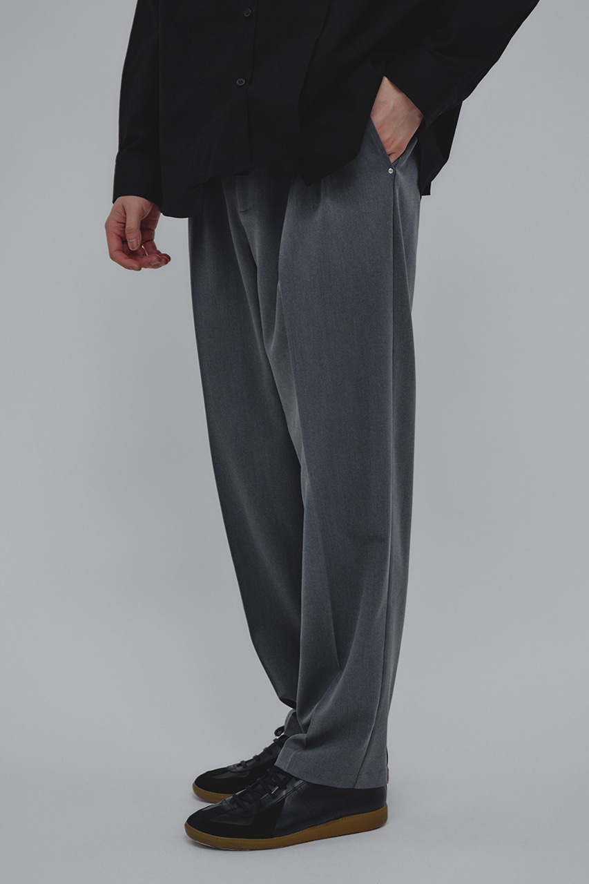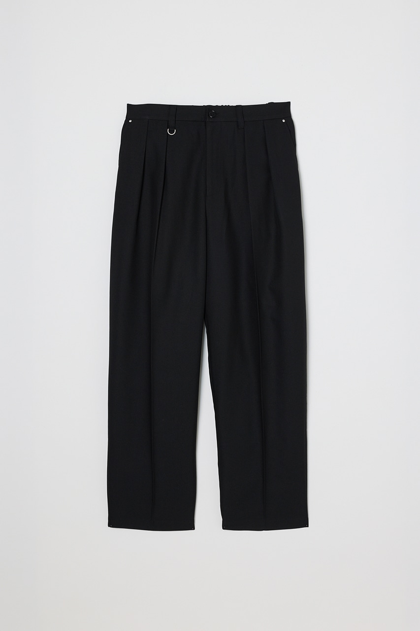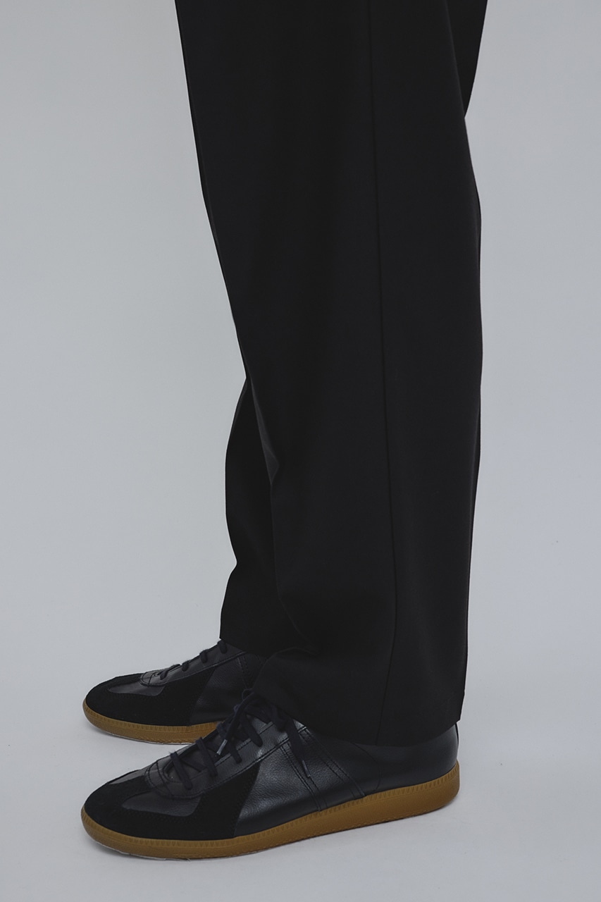 カジュアルながらも綺麗めの表情を持った、ウールライクなポリエステルレーヨンツイルを使用したパンツ。ヒップと渡りにゆとりを持たせたすっきりとしたテーパードシルエットでスタイルアップ出来る一枚。ウエストはシャーリング仕様。ベルト着用も対応可能です。501IAK30-0101(サイドジップパッファーベスト)、501IAK30-0091(シャーリングヘムジャケット)とセットアップ着用可能。ストレッチなし、透け感無し。