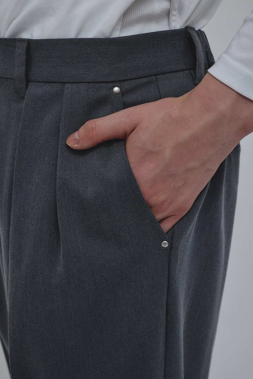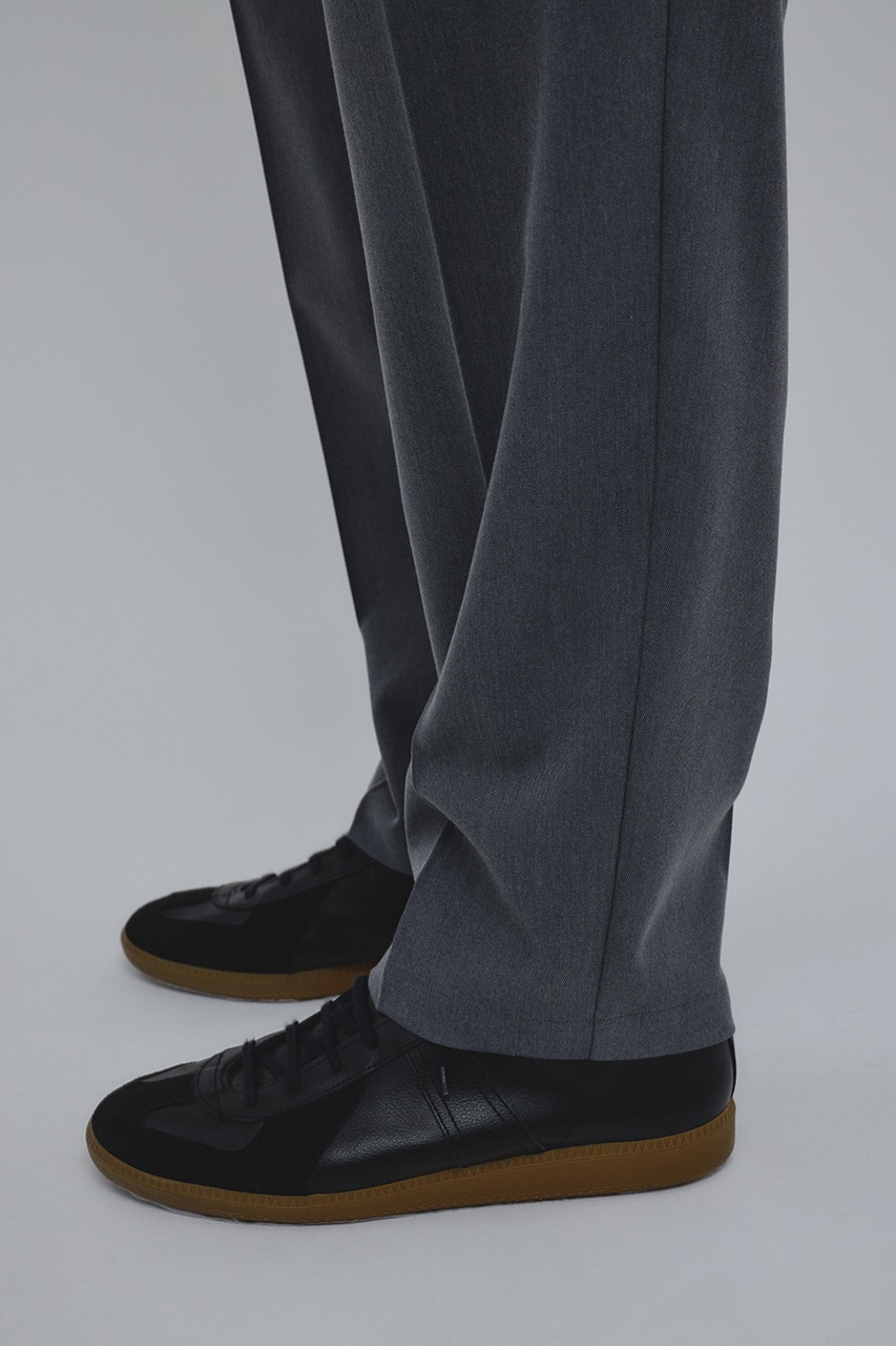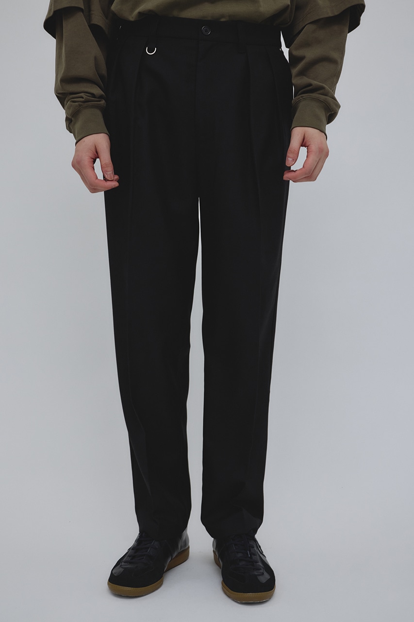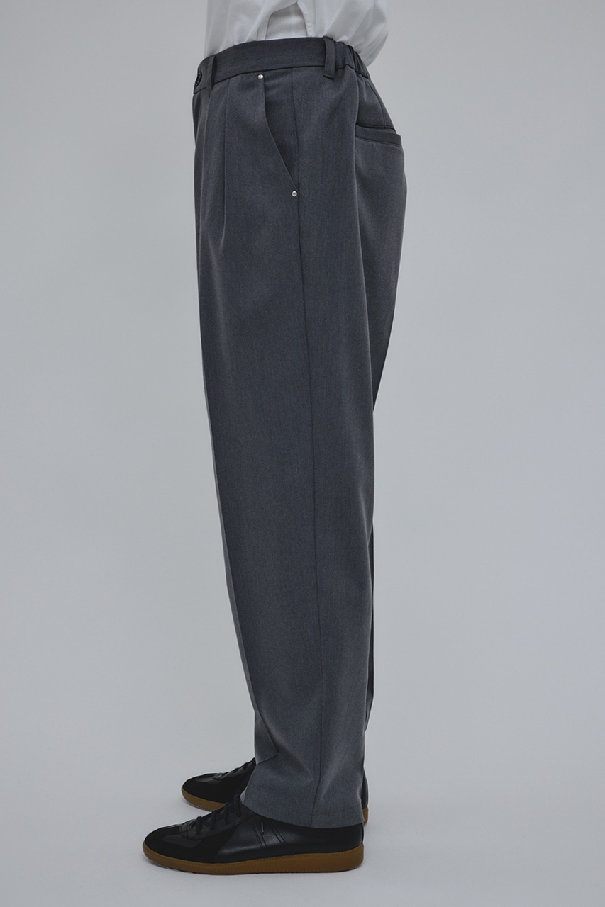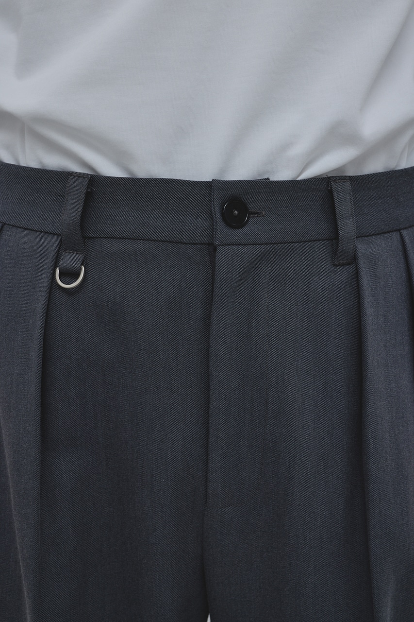 カジュアルながらも綺麗めの表情を持った、ウールライクなポリエステルレーヨンツイルを使用したパンツ。ヒップと渡りにゆとりを持たせたすっきりとしたテーパードシルエットでスタイルアップ出来る一枚。ウエストはシャーリング仕様。ベルト着用も対応可能です。501IAK30-0101(サイドジップパッファーベスト)、501IAK30-0091(シャーリングヘムジャケット)とセットアップ着用可能。ストレッチなし、透け感無し。