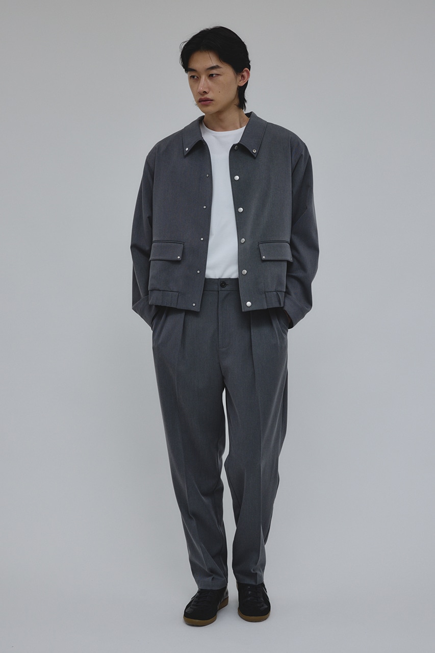カジュアルながらも綺麗めの表情を持った、ウールライクなポリエステルレーヨンツイルを使用したパンツ。ヒップと渡りにゆとりを持たせたすっきりとしたテーパードシルエットでスタイルアップ出来る一枚。ウエストはシャーリング仕様。ベルト着用も対応可能です。501IAK30-0101(サイドジップパッファーベスト)、501IAK30-0091(シャーリングヘムジャケット)とセットアップ着用可能。ストレッチなし、透け感無し。