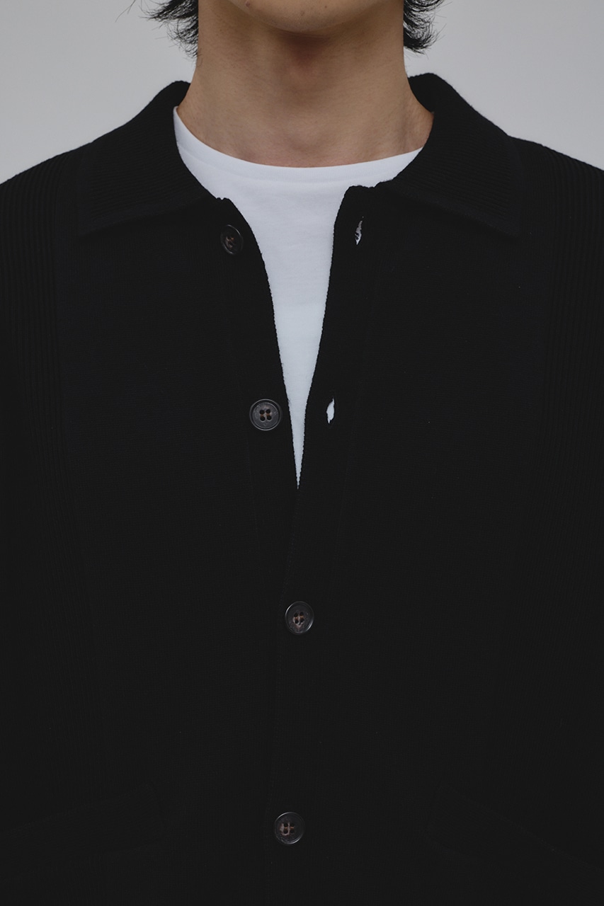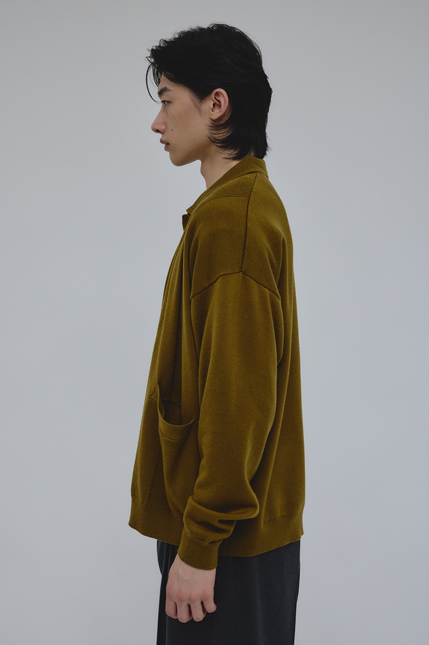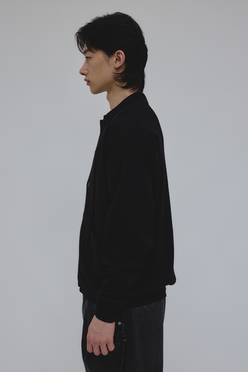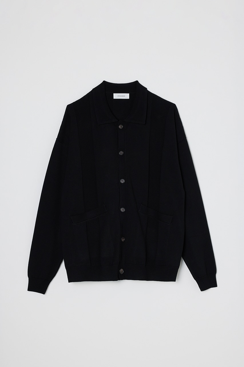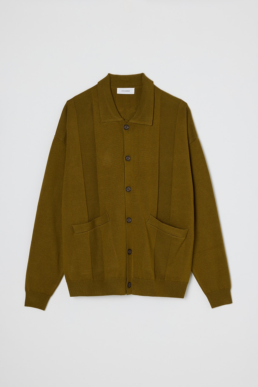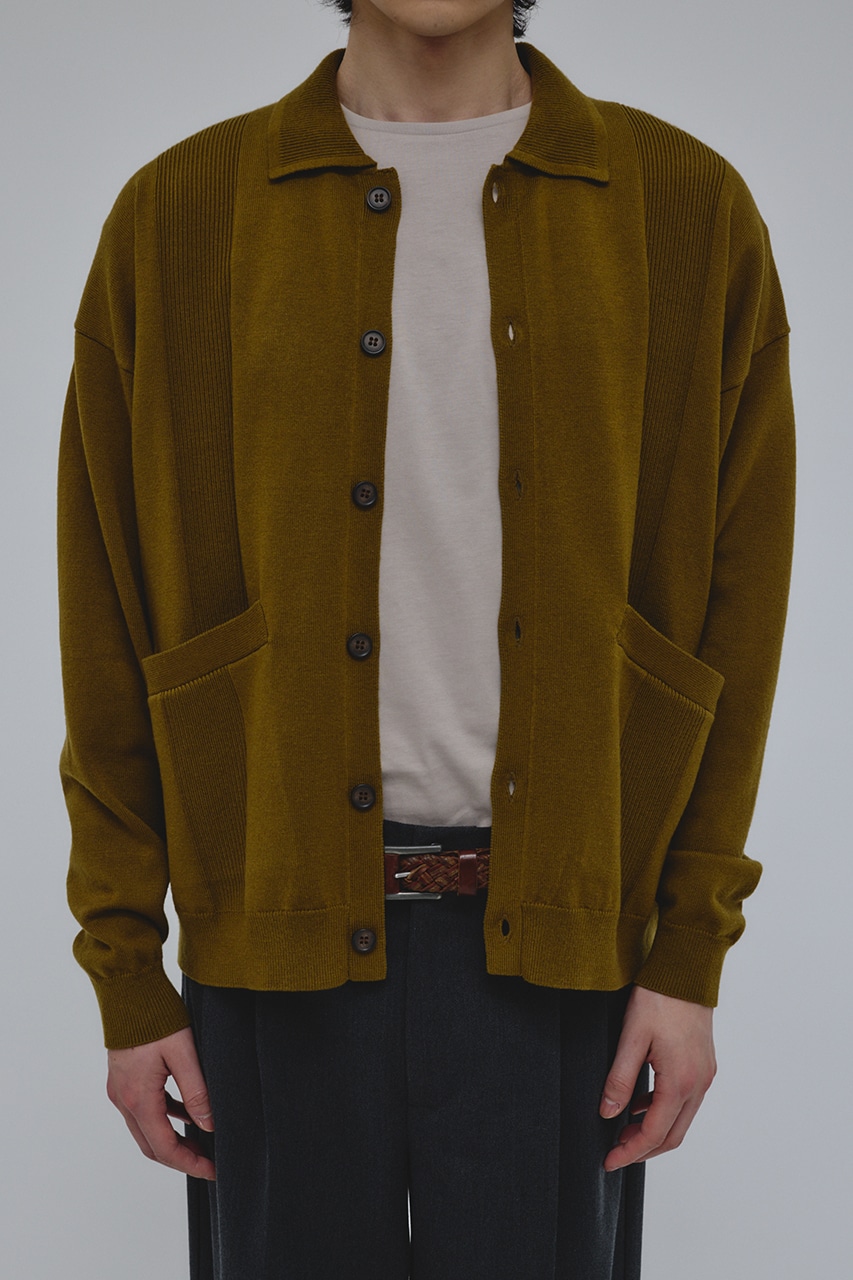 12ゲージウールブレンドの天竺編みで仕上げたニットカーディガン。カットソーの上からも羽織れ、ミドルレイヤーとしてアウターの中間着としても使える汎用性の高いアイテムです。シンプルながらも衿や身頃の編み地変化でアクセントを加えています。ストレッチあり、透け感なし。