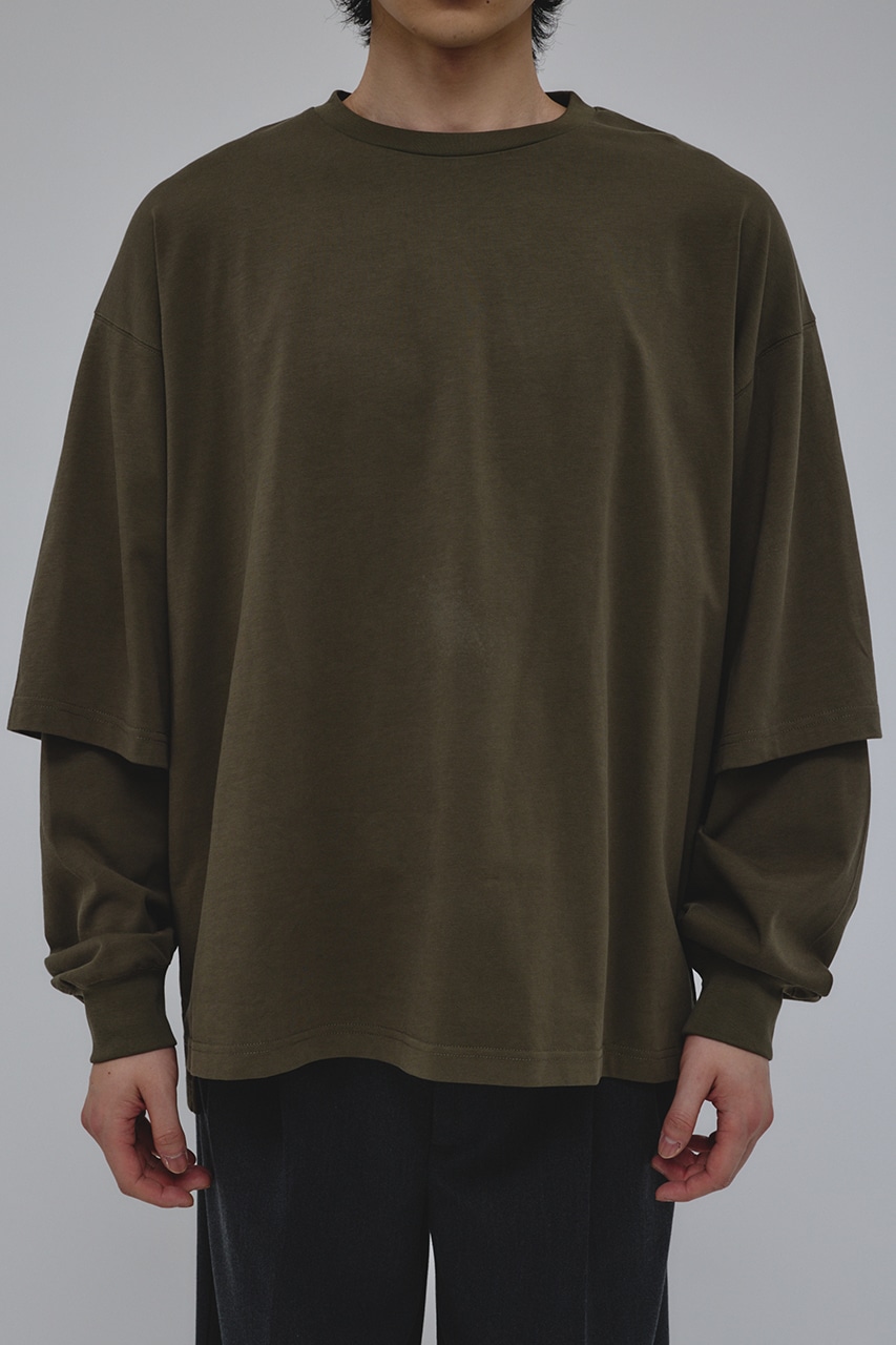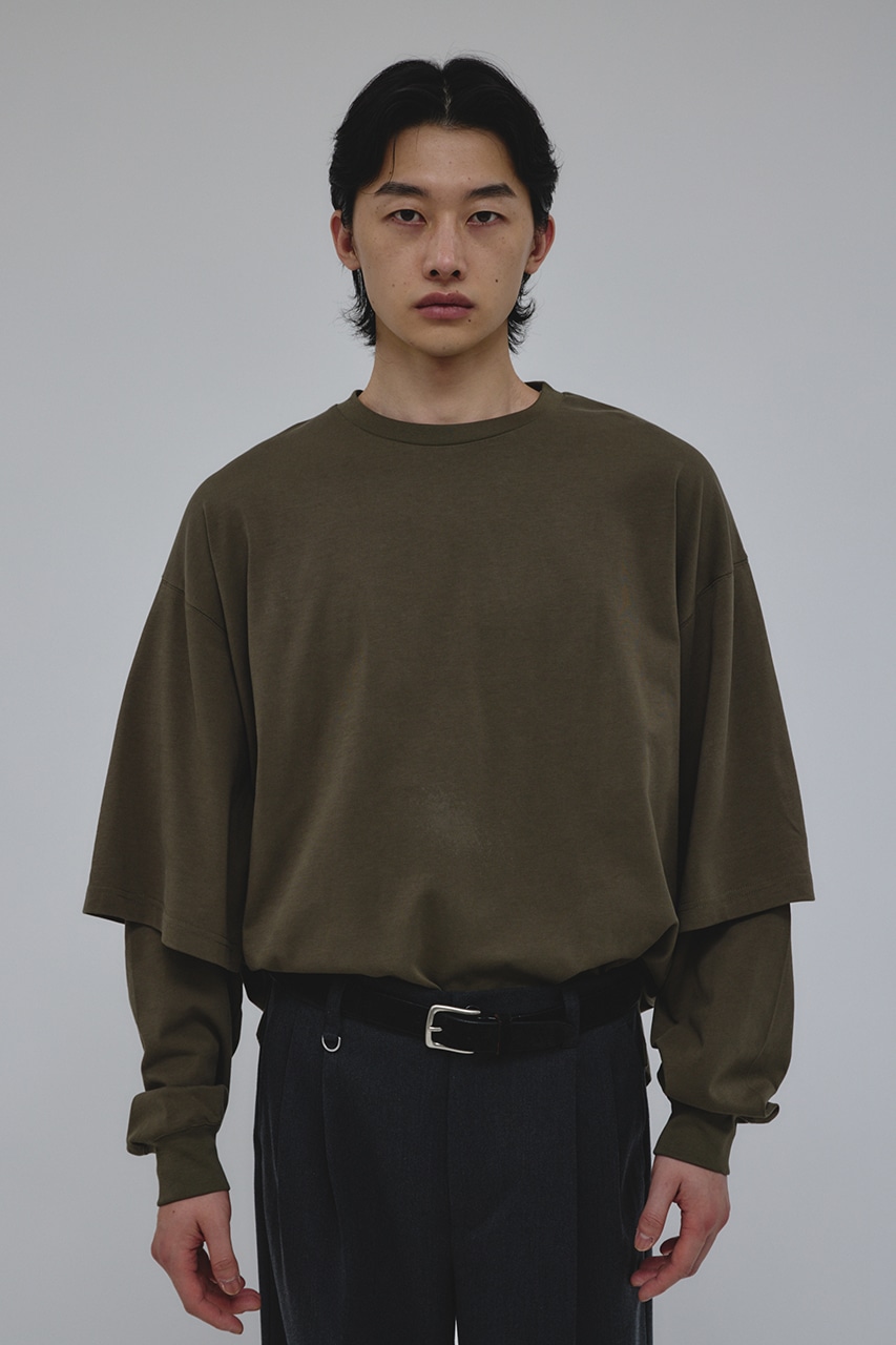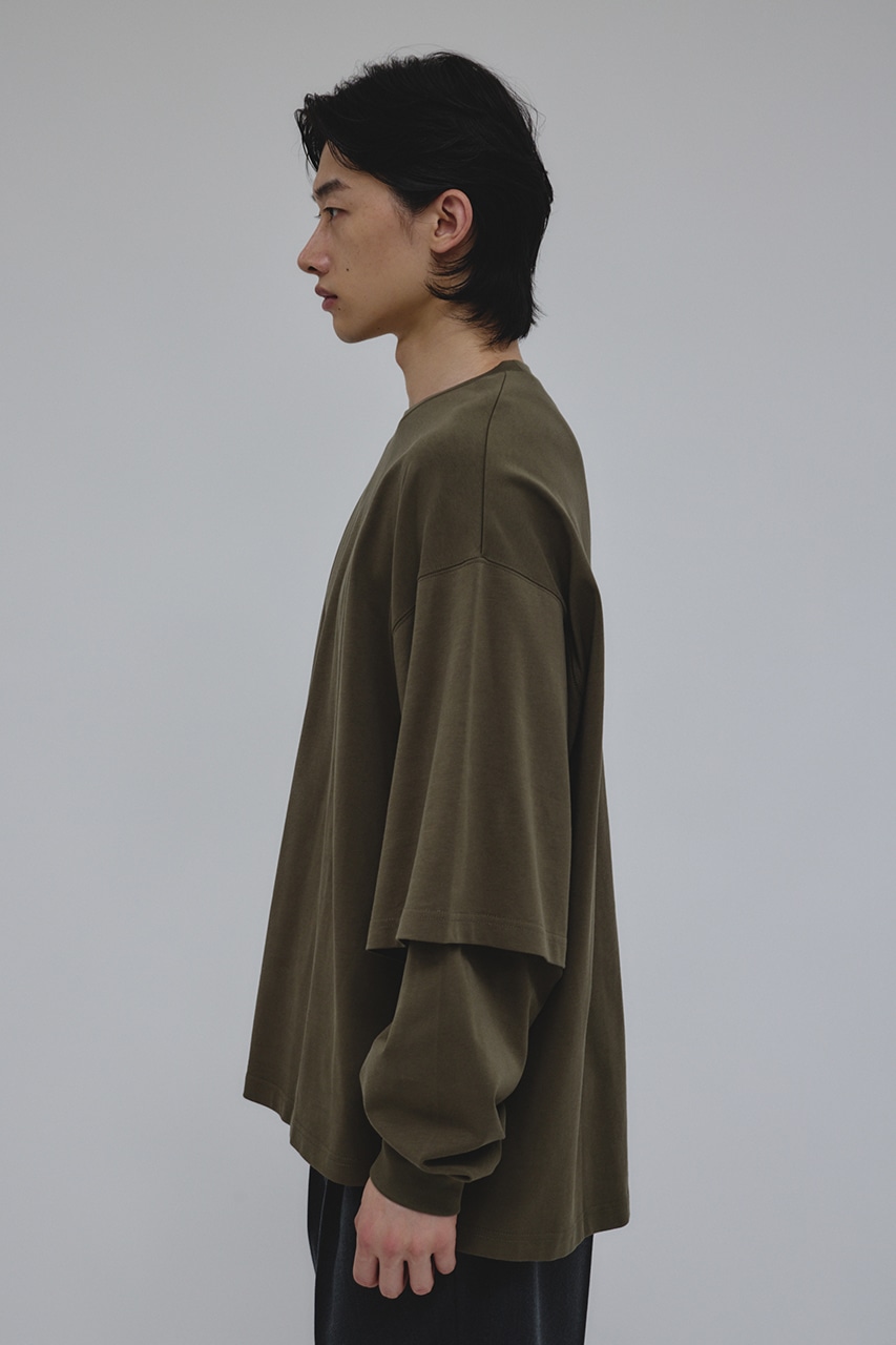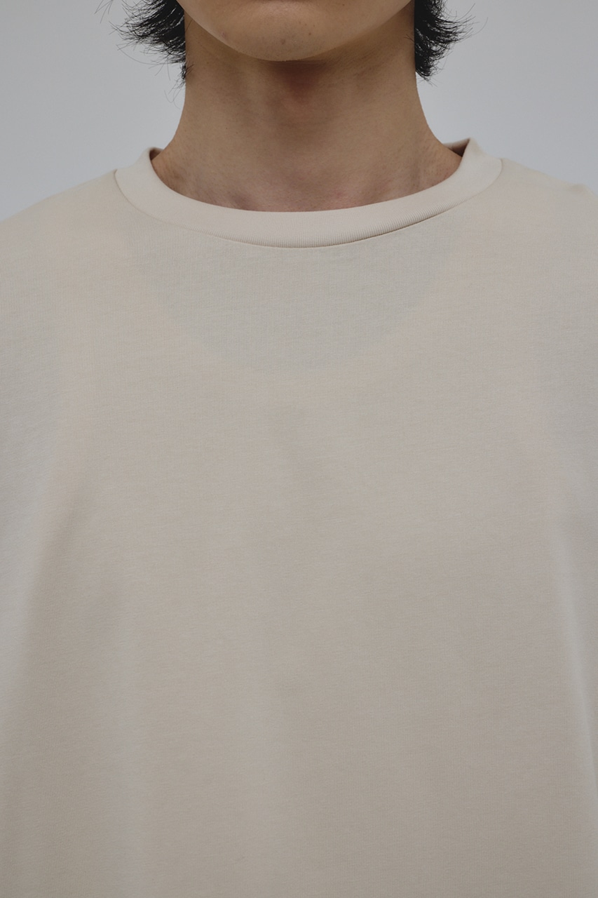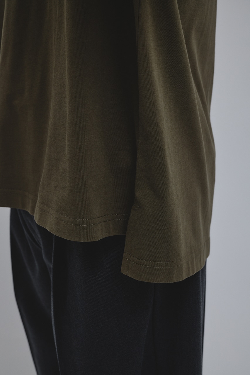 32番双糸天竺を使用したシンプルながら高級感のある目面が特徴のロンT。さらりとした独特な肌触りとシルクのような落ち感が叶うシリコンバイオ加工を採用。ストレスを感じさせない最高の着心地と、大人っぽい表情が魅力です。ゆとりのあるサイズ感一枚でレイヤードが完成します。ストレッチあり、透け感なし。