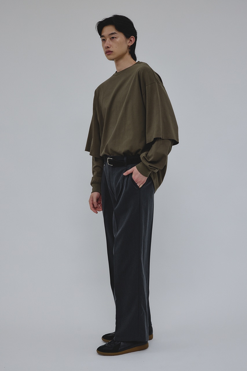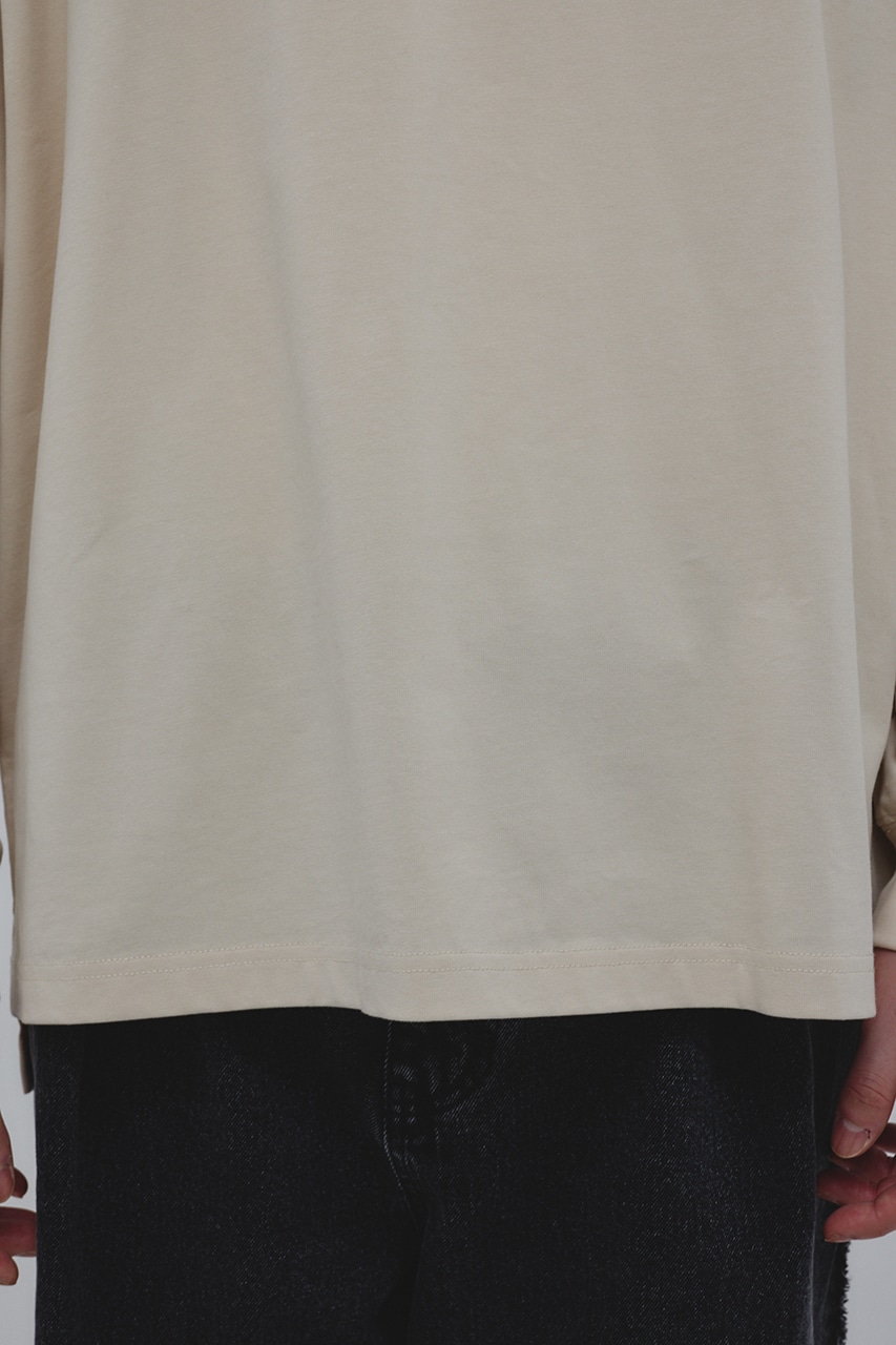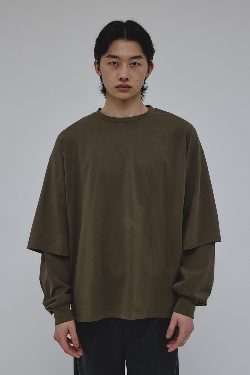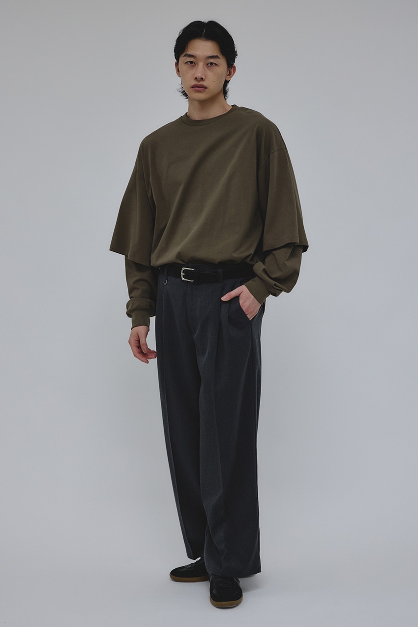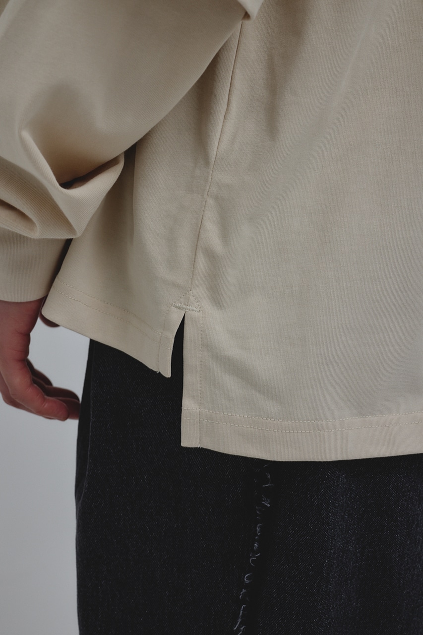 32番双糸天竺を使用したシンプルながら高級感のある目面が特徴のロンT。さらりとした独特な肌触りとシルクのような落ち感が叶うシリコンバイオ加工を採用。ストレスを感じさせない最高の着心地と、大人っぽい表情が魅力です。ゆとりのあるサイズ感一枚でレイヤードが完成します。ストレッチあり、透け感なし。