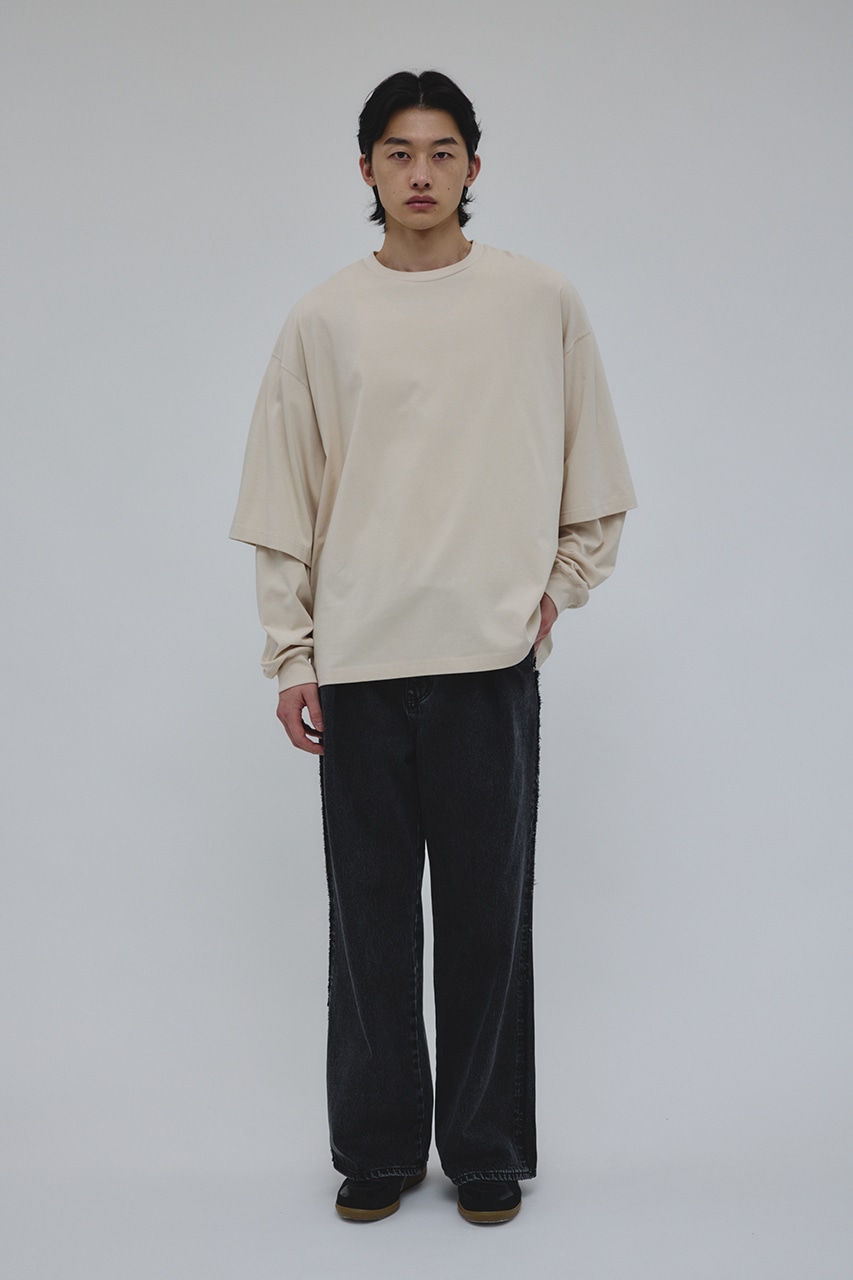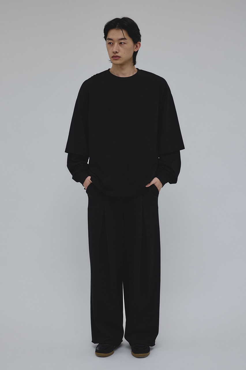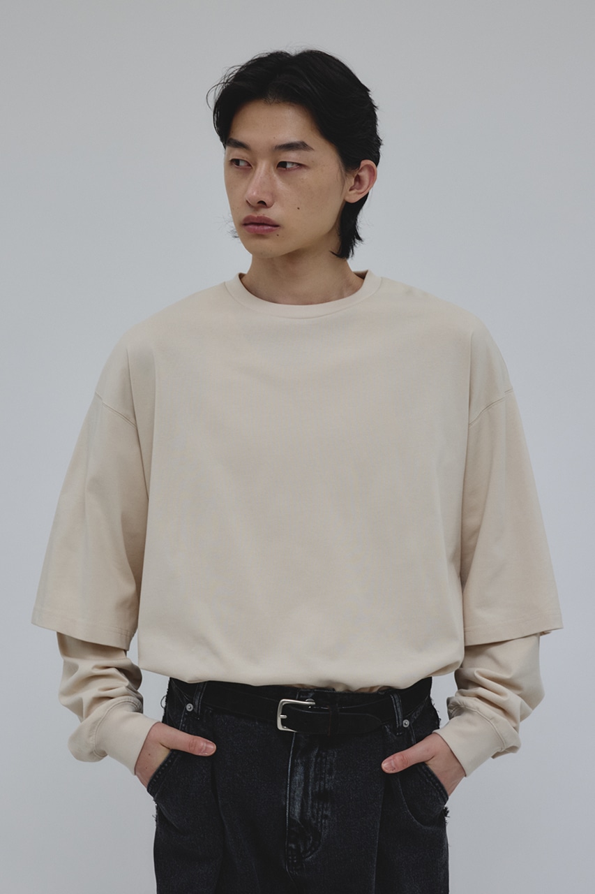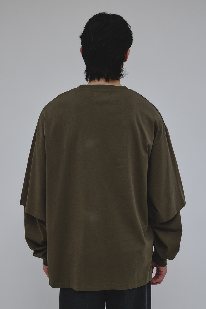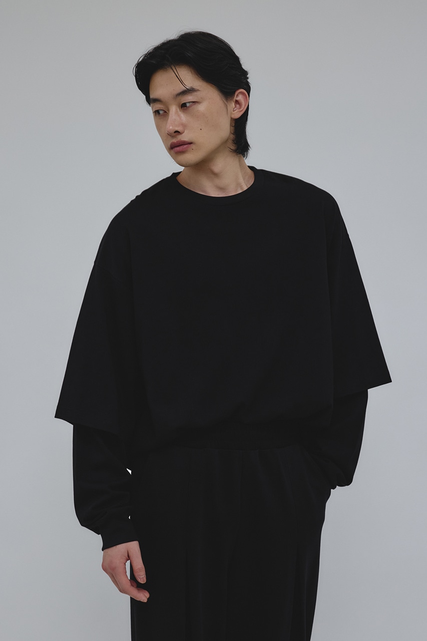 32番双糸天竺を使用したシンプルながら高級感のある目面が特徴のロンT。さらりとした独特な肌触りとシルクのような落ち感が叶うシリコンバイオ加工を採用。ストレスを感じさせない最高の着心地と、大人っぽい表情が魅力です。ゆとりのあるサイズ感一枚でレイヤードが完成します。ストレッチあり、透け感なし。