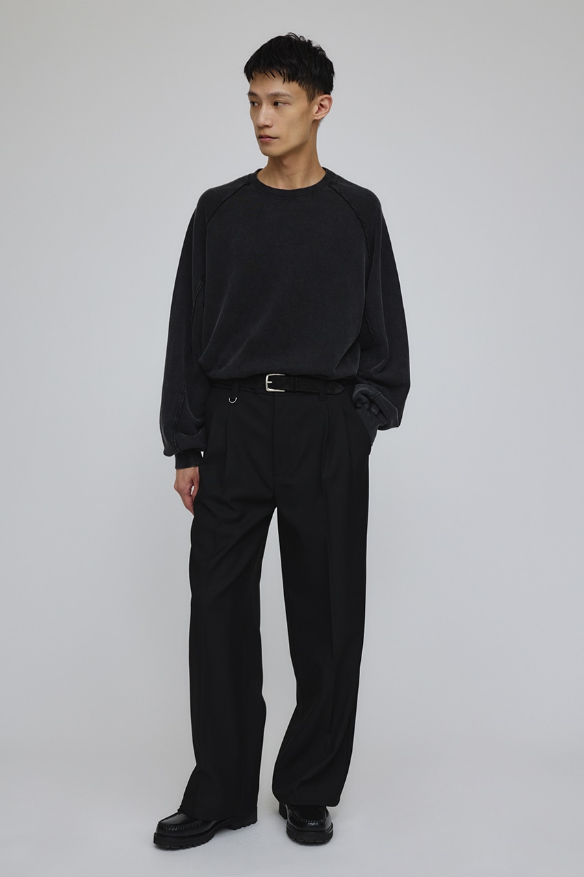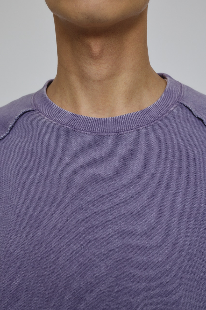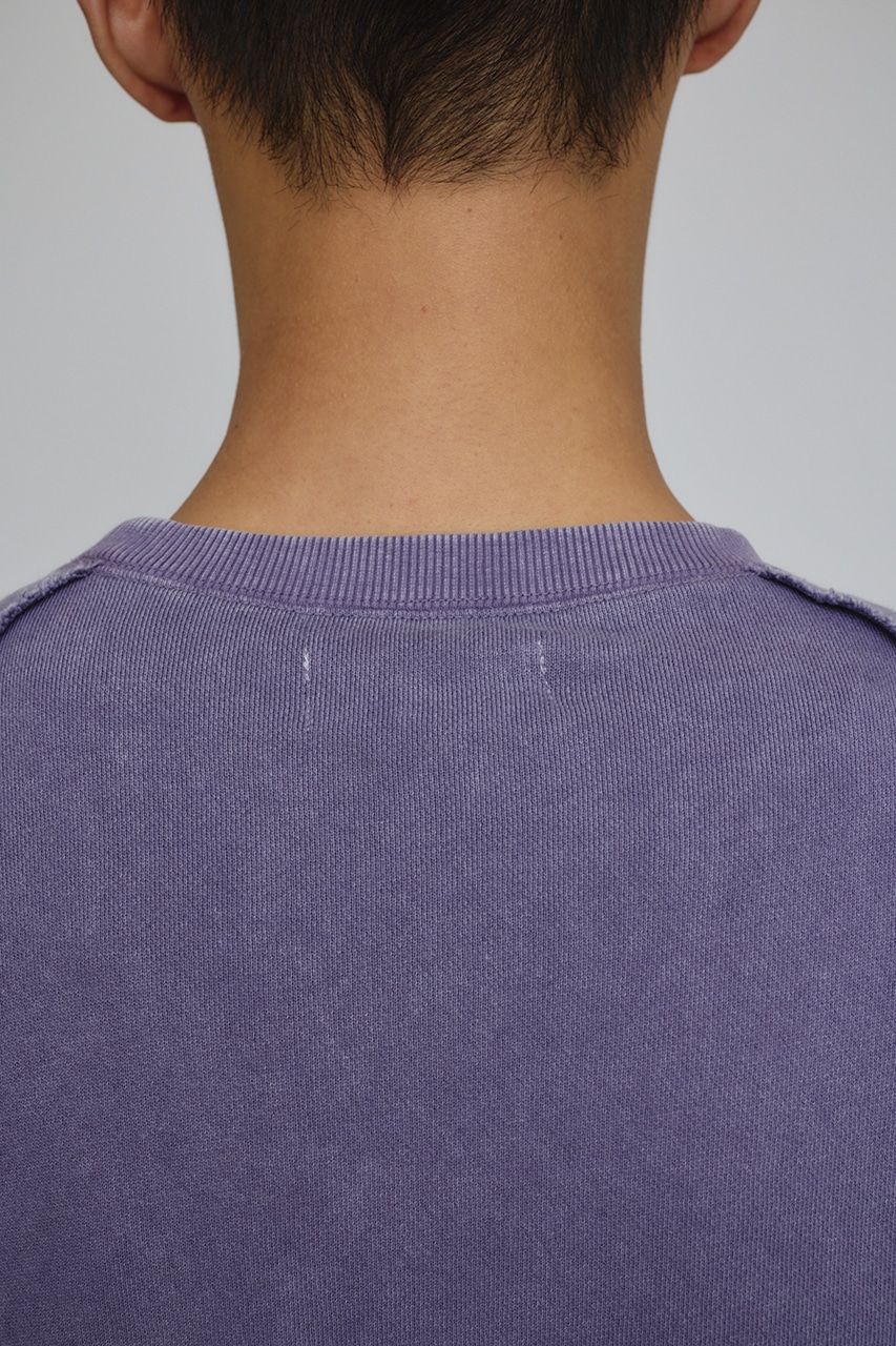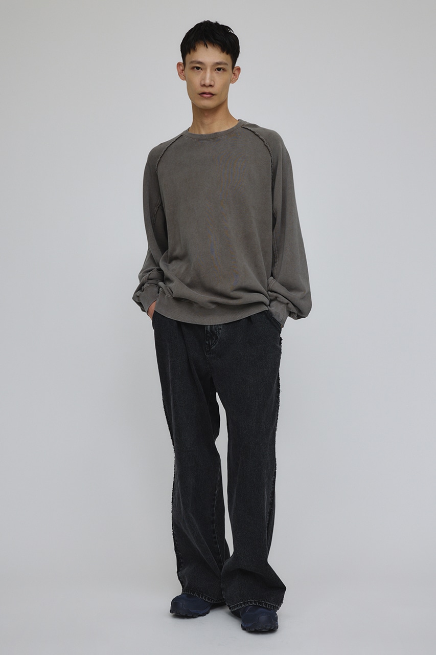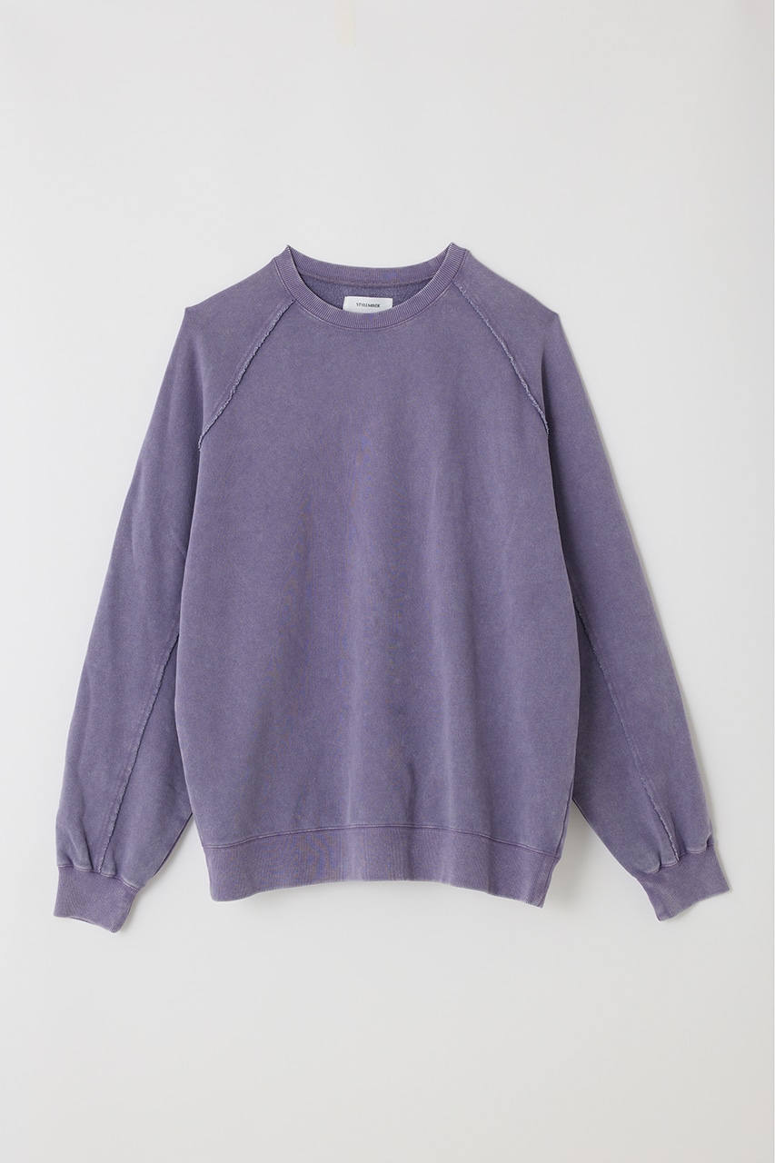 しっかりと厚みのある裏毛のスウェットを硫化染めした後、パウダーブリーチを施したフェード感のあるクルーネックスウェット。